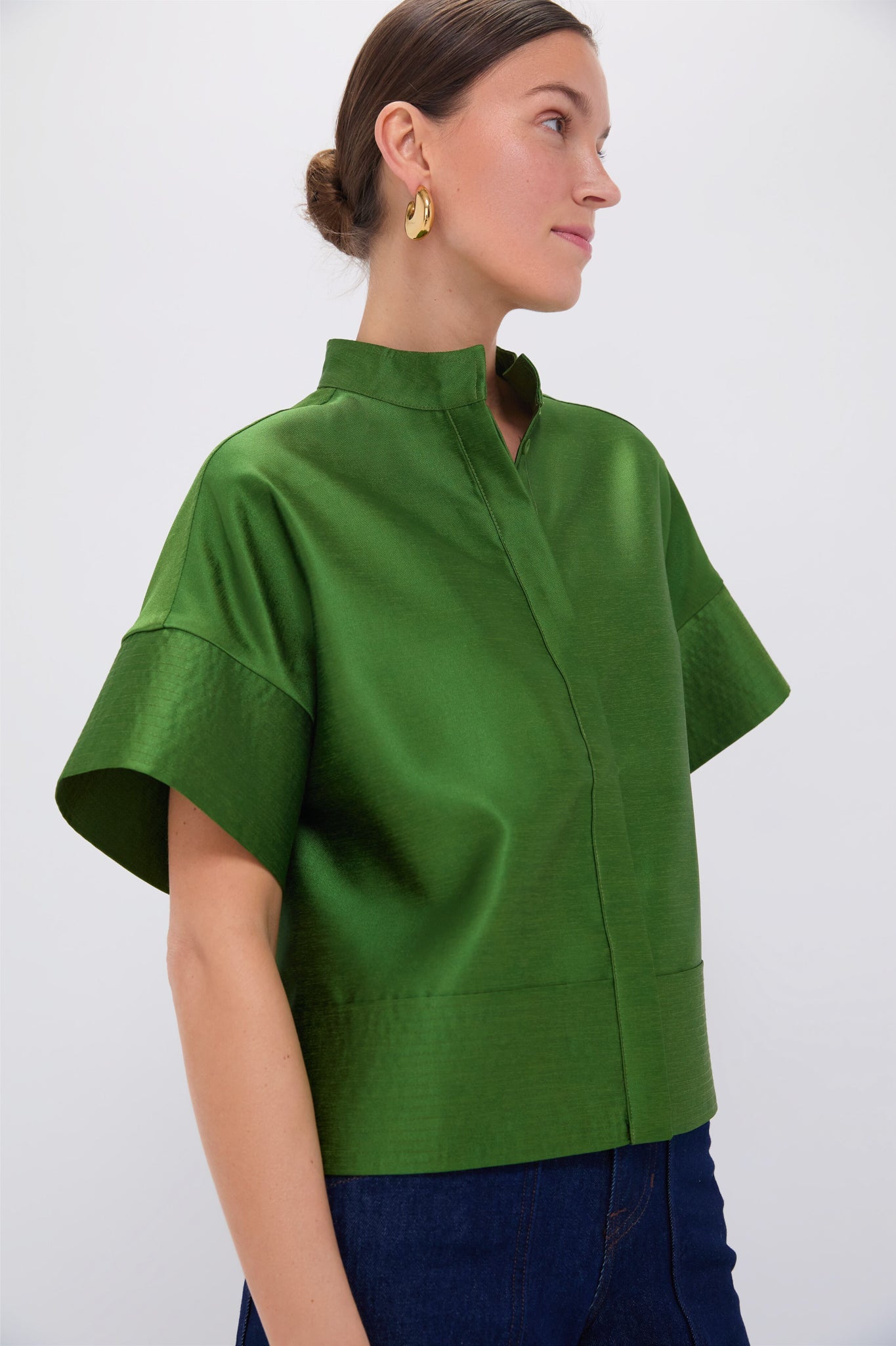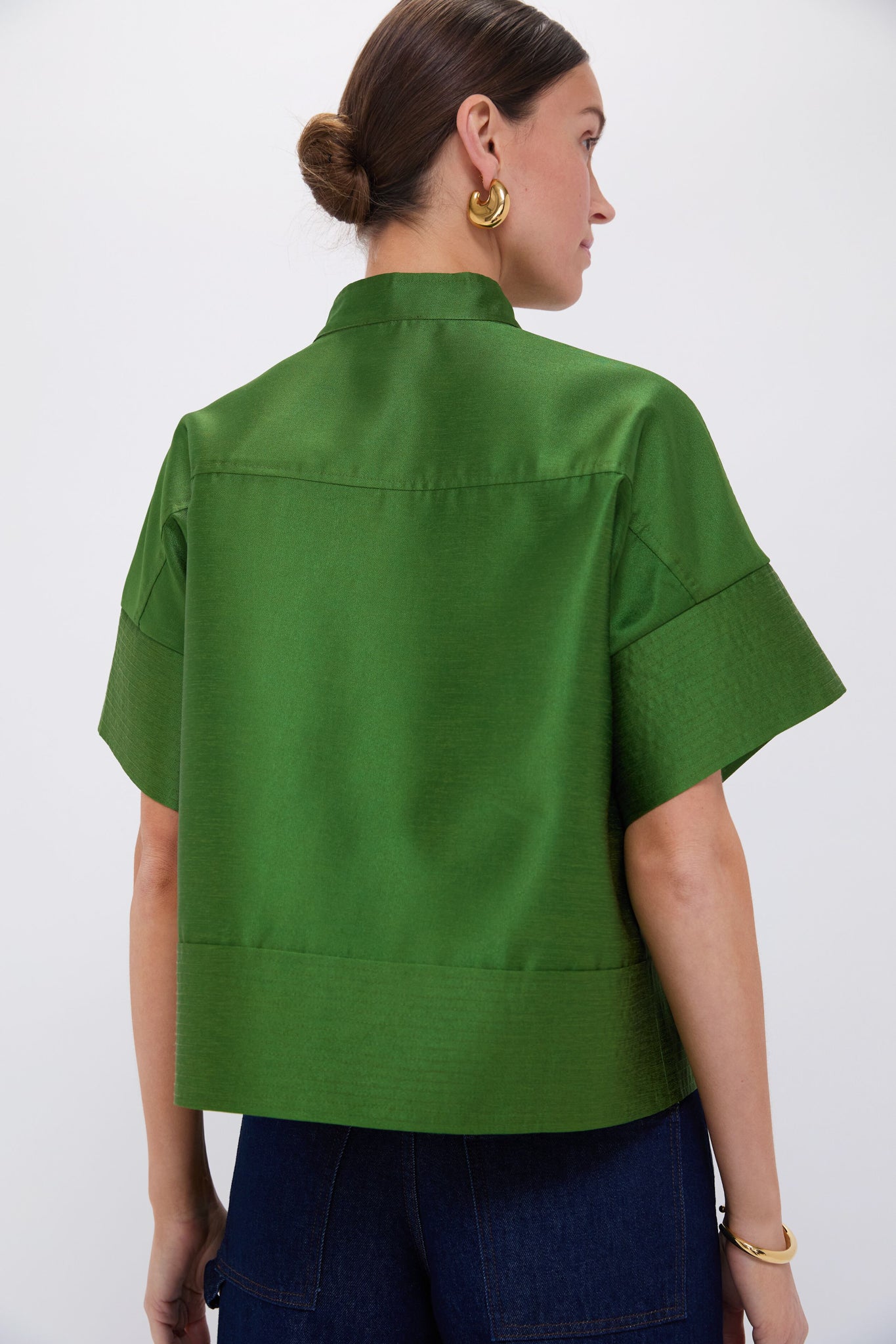 Green Dupioni Trapunto Stitch Sofia Shirt