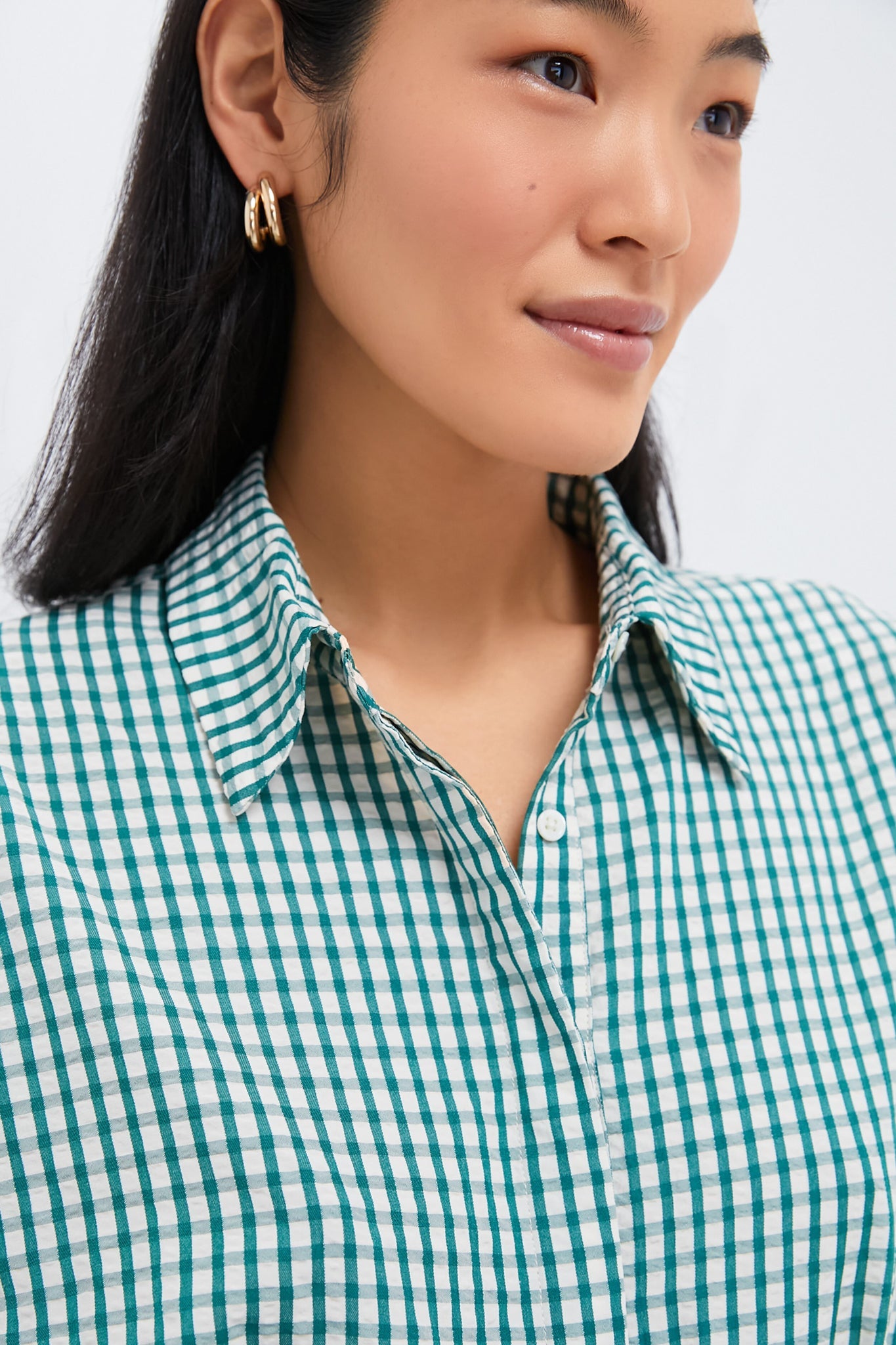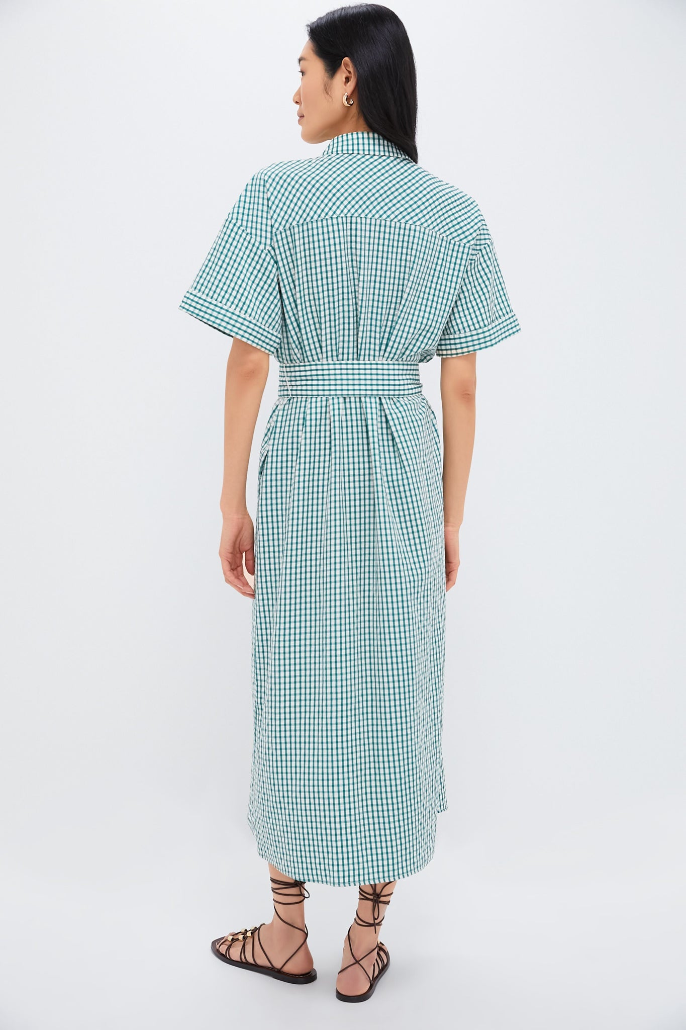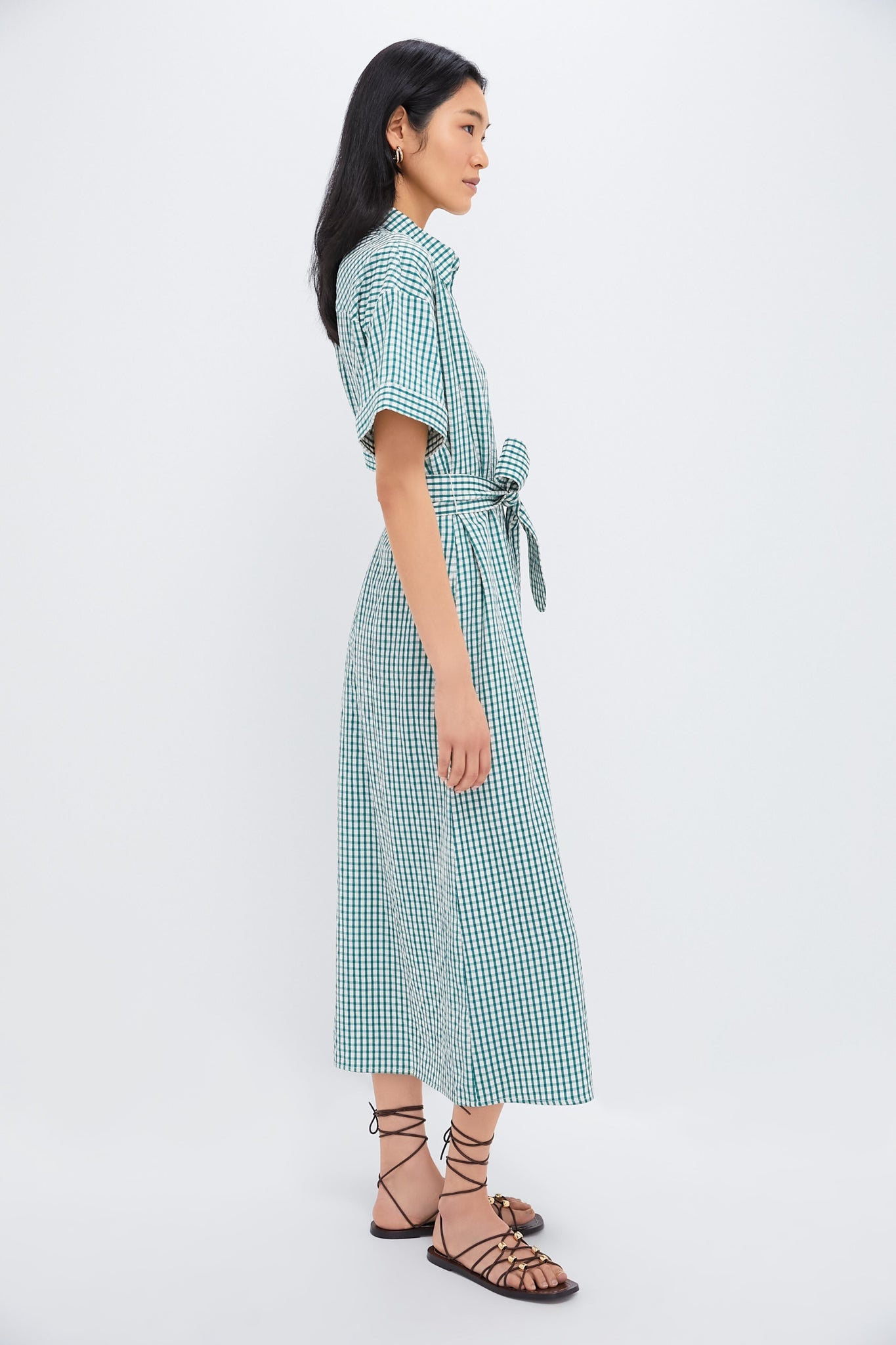 Embrace the summer months in the Green Gingham Seersucker Zacara Dress. This maxi is made in a green and white gingham fabric, with flattering details such as a self-tie waist belt and drop shoulders. A style that instantly makes us think of pleasant afternoons spent outside, we are pairing this with sandals and a tote for all of our weekend activities.