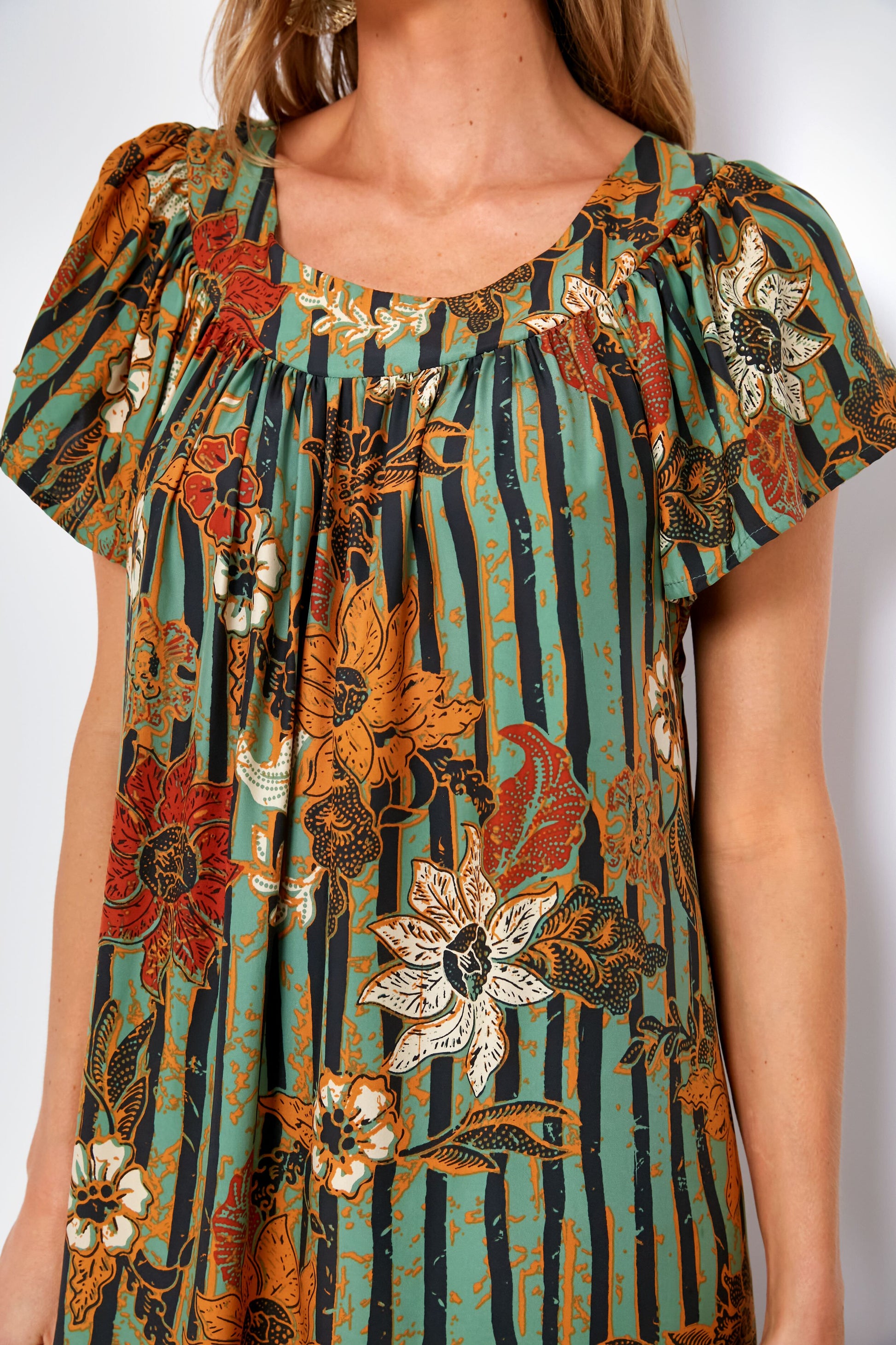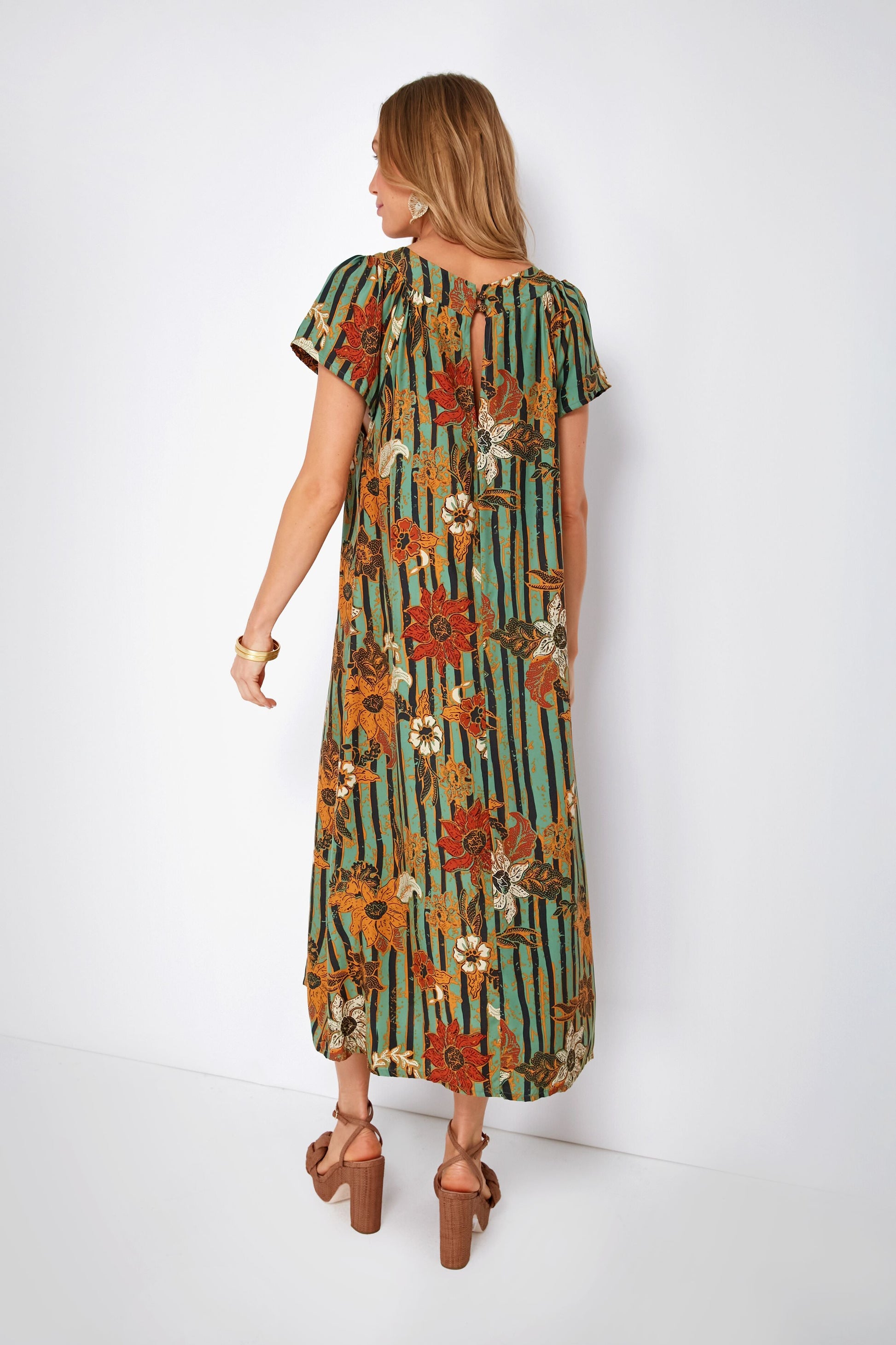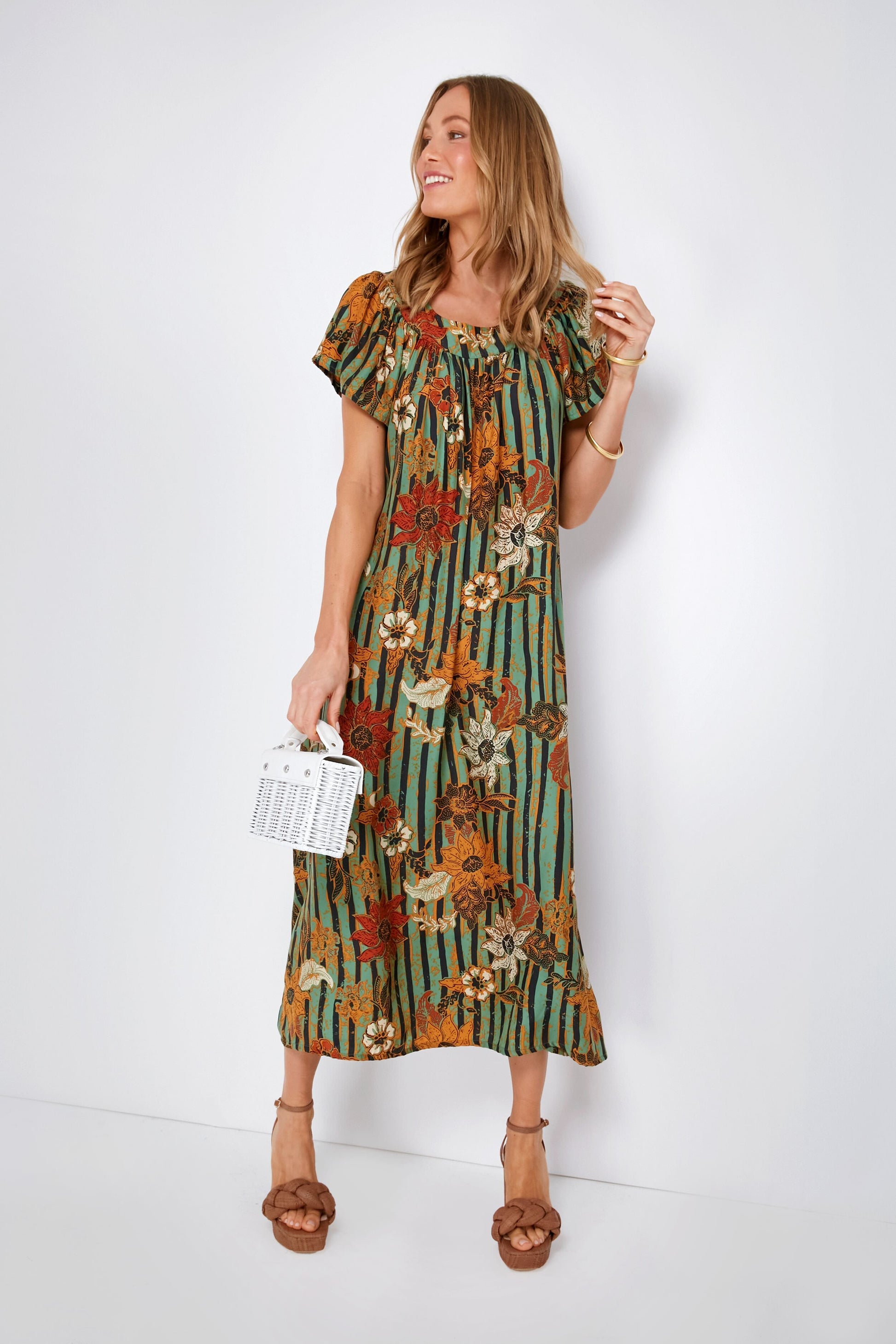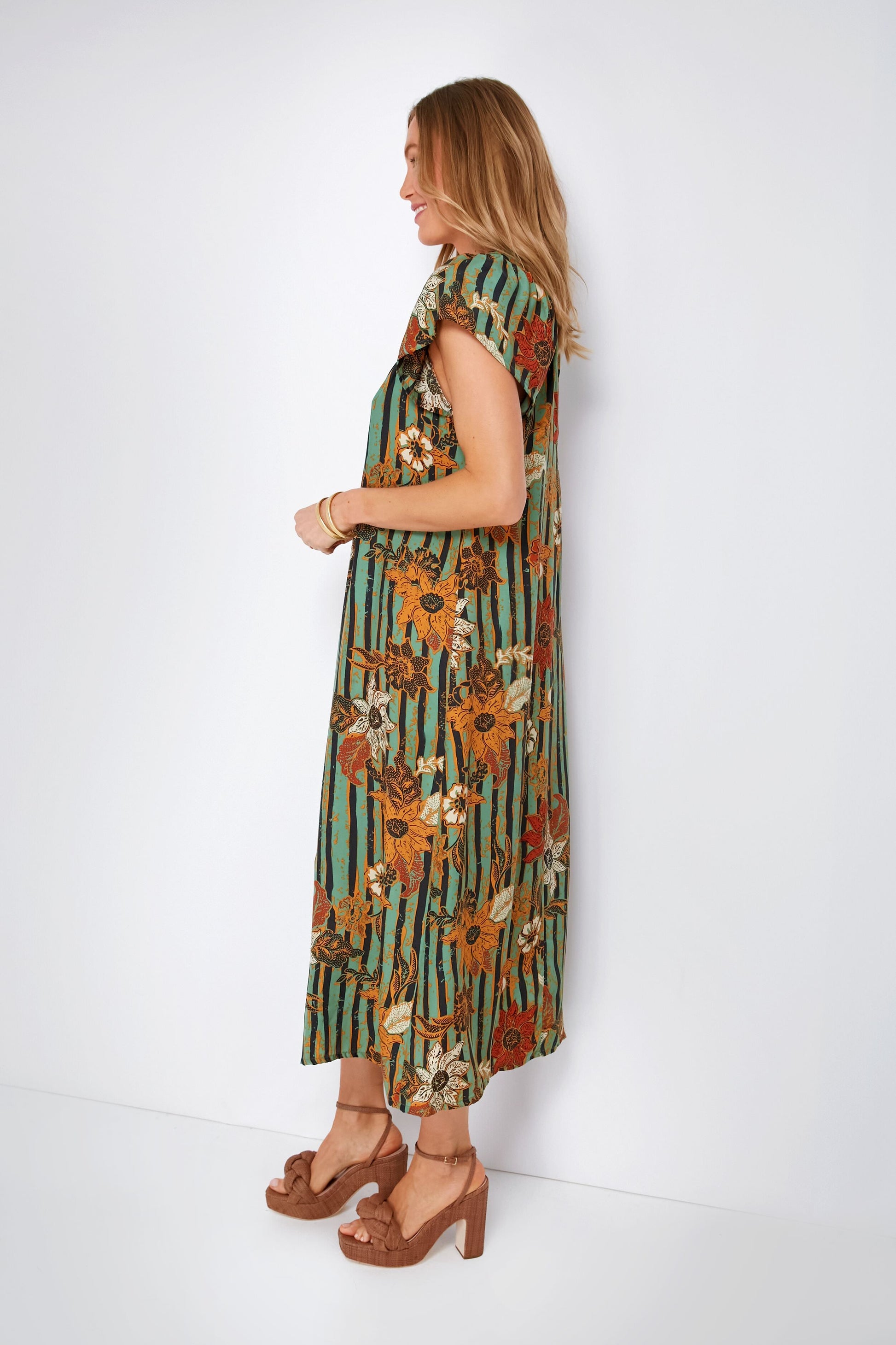 Green Sunflower Stripe Print Moss Sienna Midi Dress