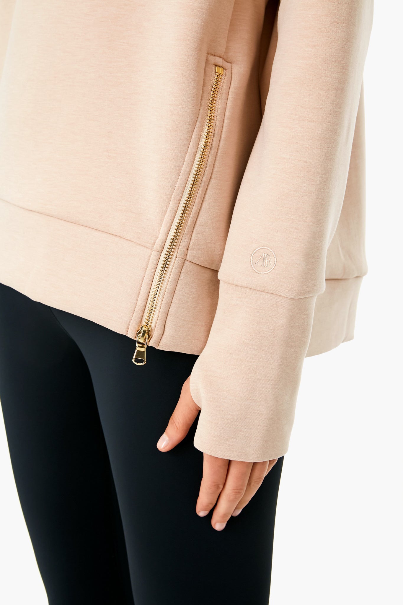 The Heather Camel Everyday Pullover is the easiest, throw-on-and-go silhouette to keep you comfortable no matter where the day takes you. With a high funnel neck, thumbholes at the cuffs, and side zipper details, this will quickly become your new favorite piece of athleisure wear. Pair with a tote and leggings for the perfect off-duty weekend look.