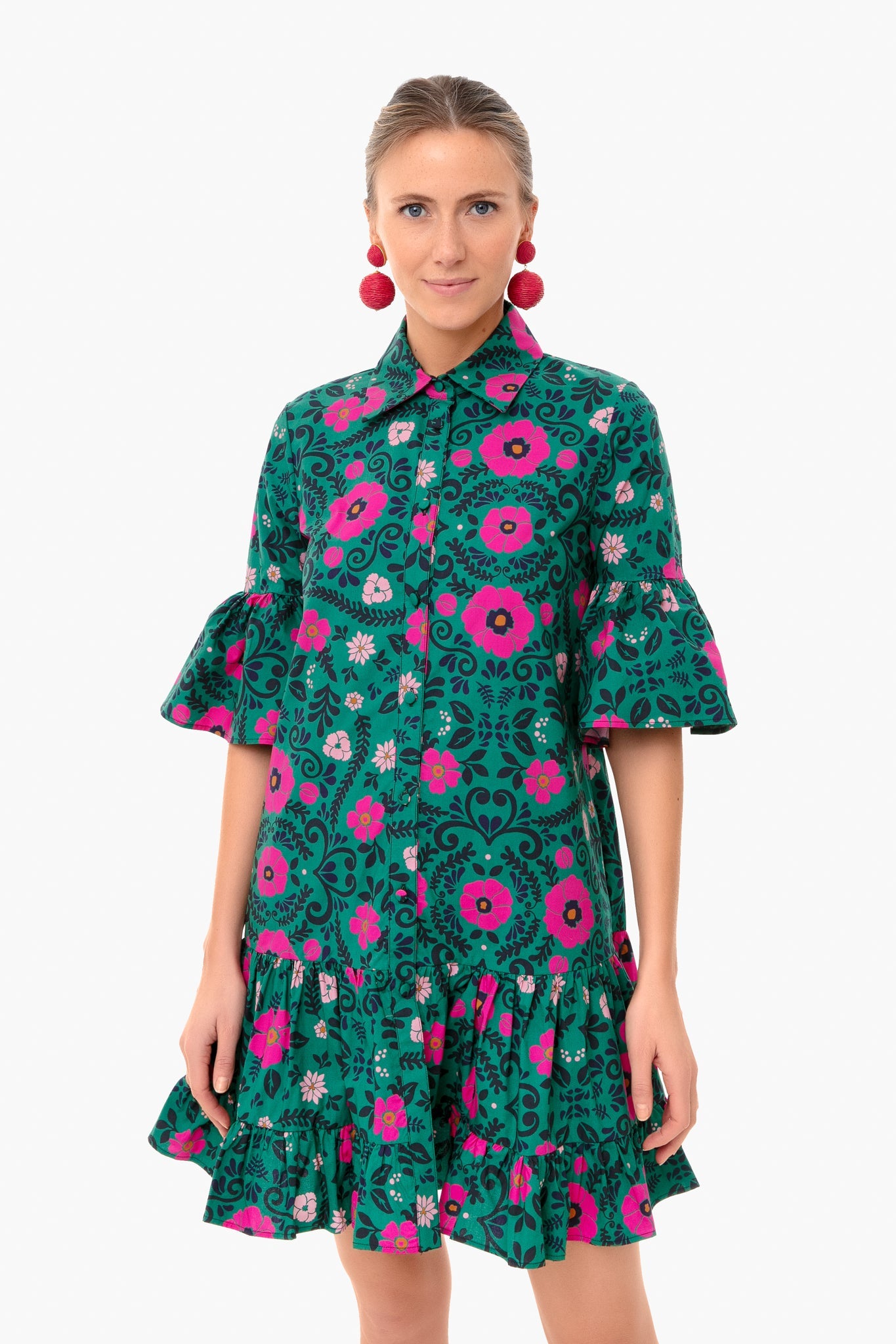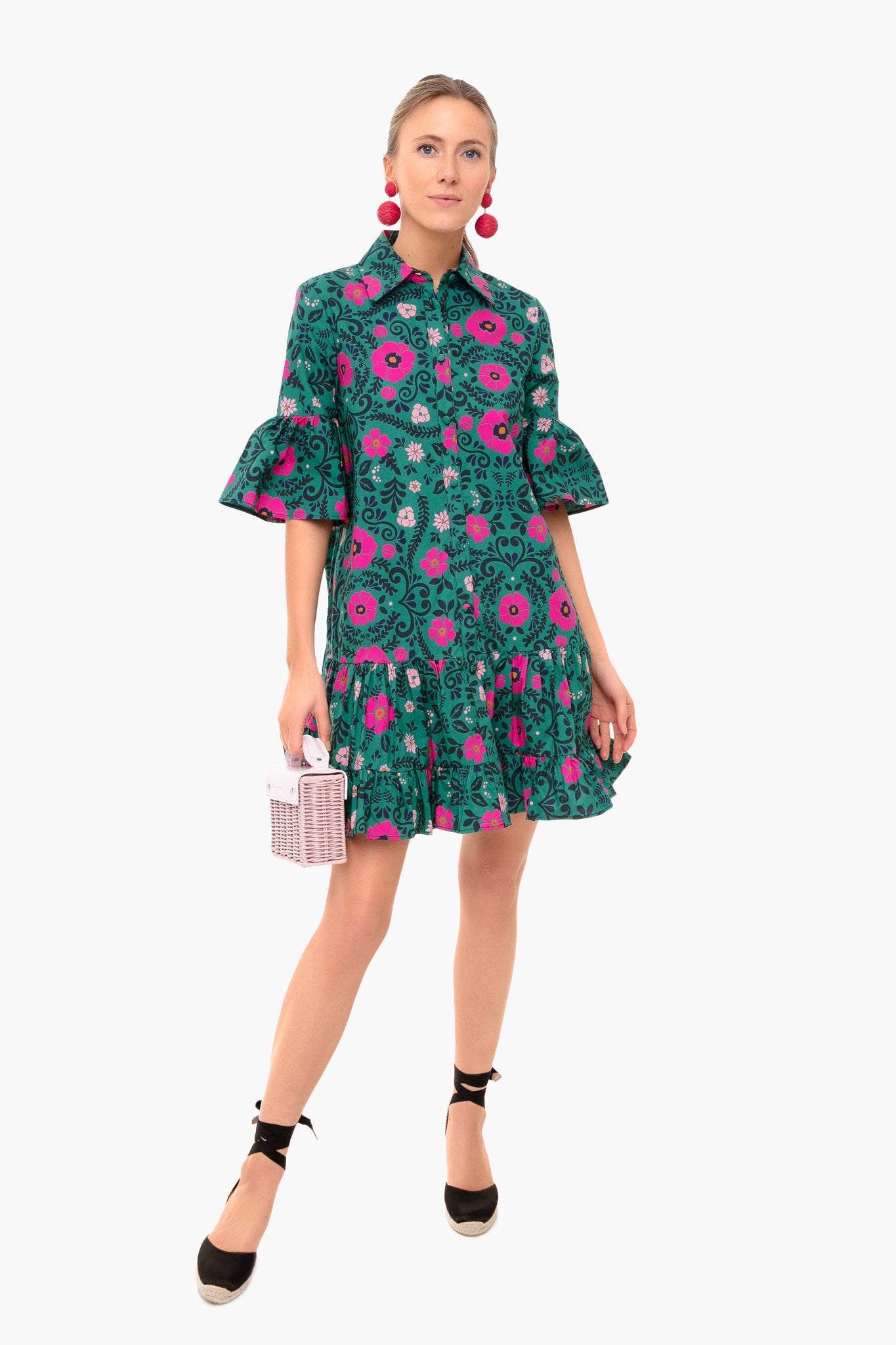 The Heckfield Verde Choux Dress is crafted from cotton poplin, making it lightweight and breathable. Featuring a bold print and flouncy A-line skirt, this mini is both pretty and comfortable. Pair with a wicker tote and raffia jewelry for a colorful, warm-weather date night!