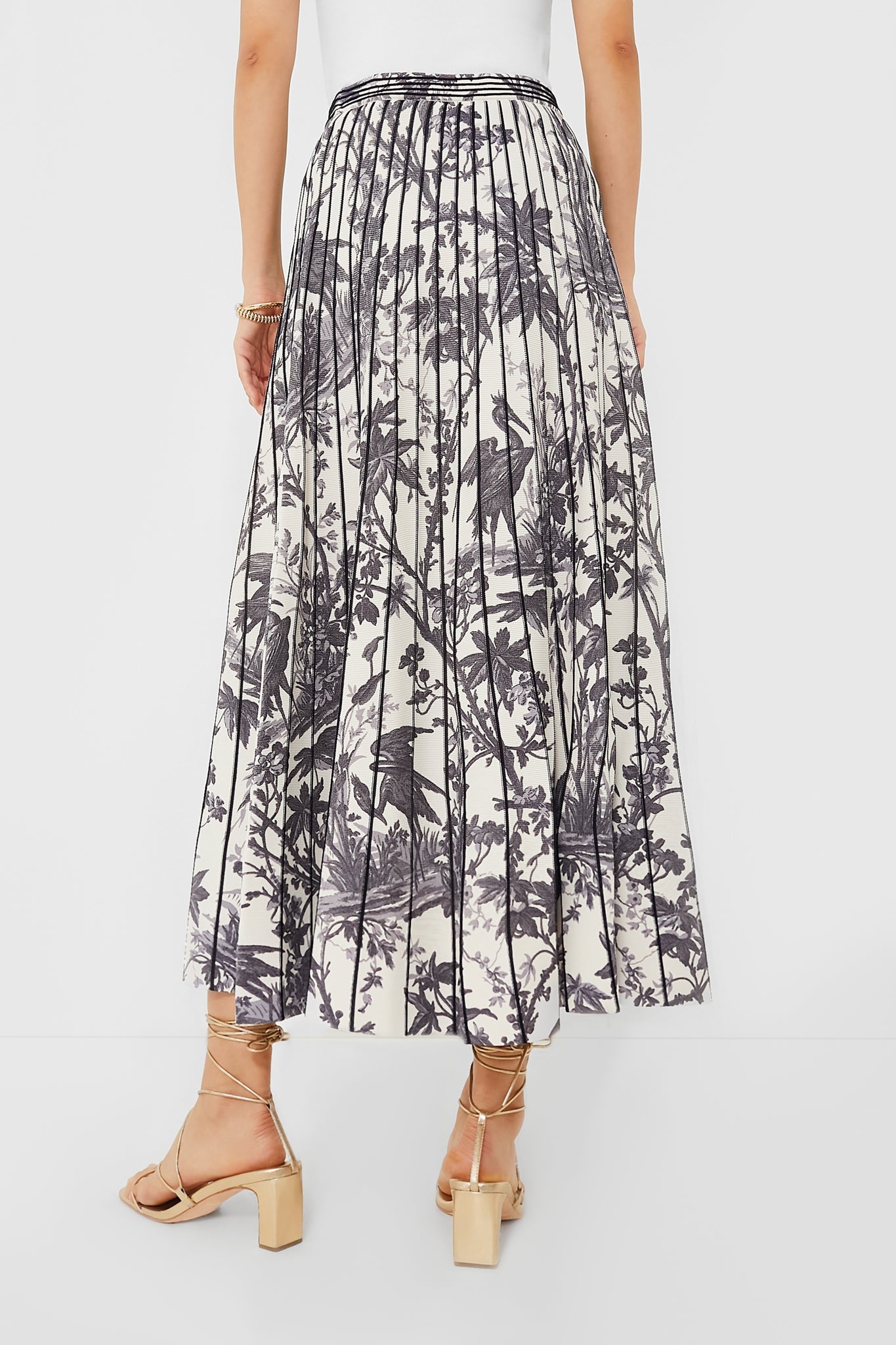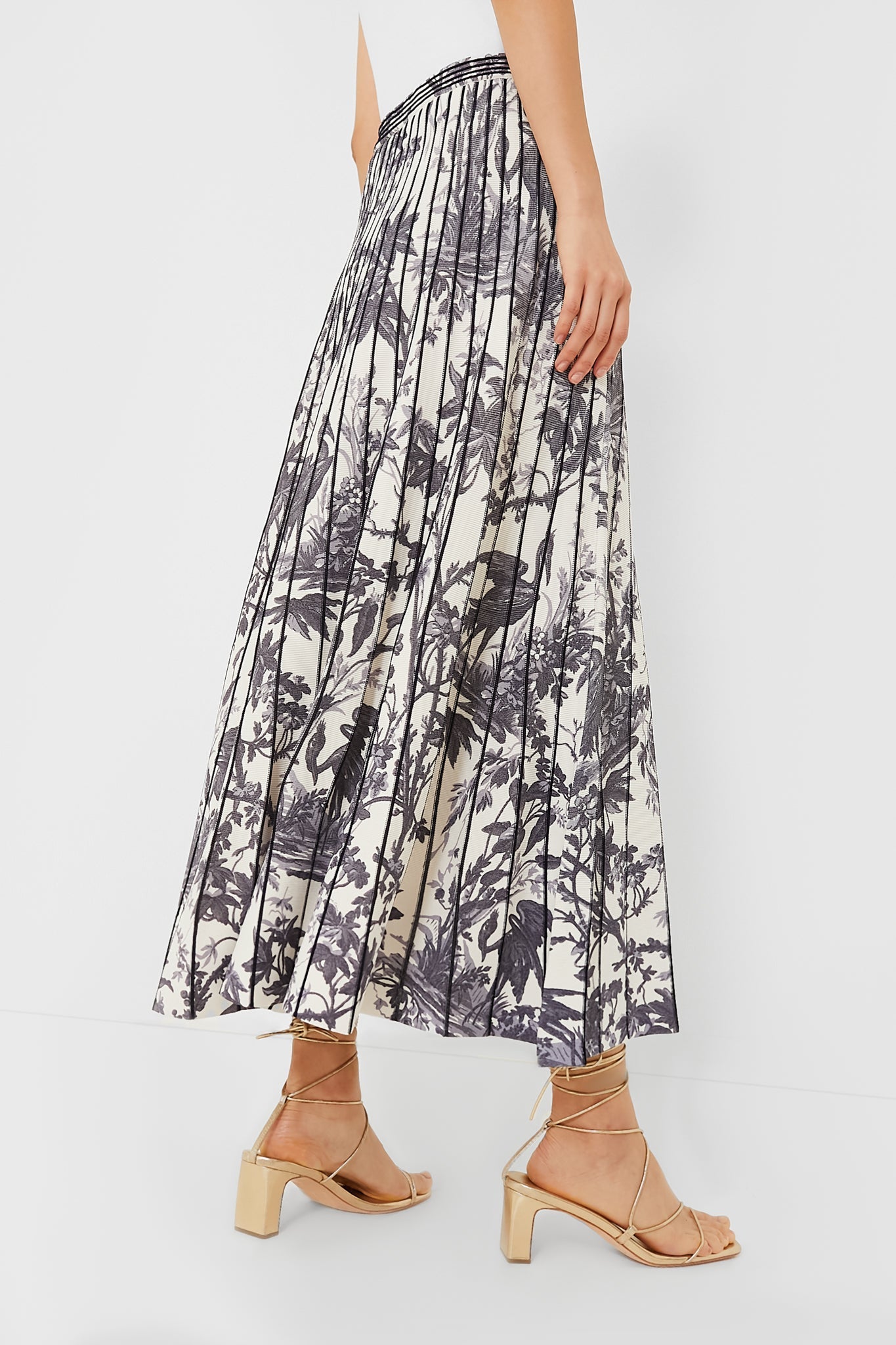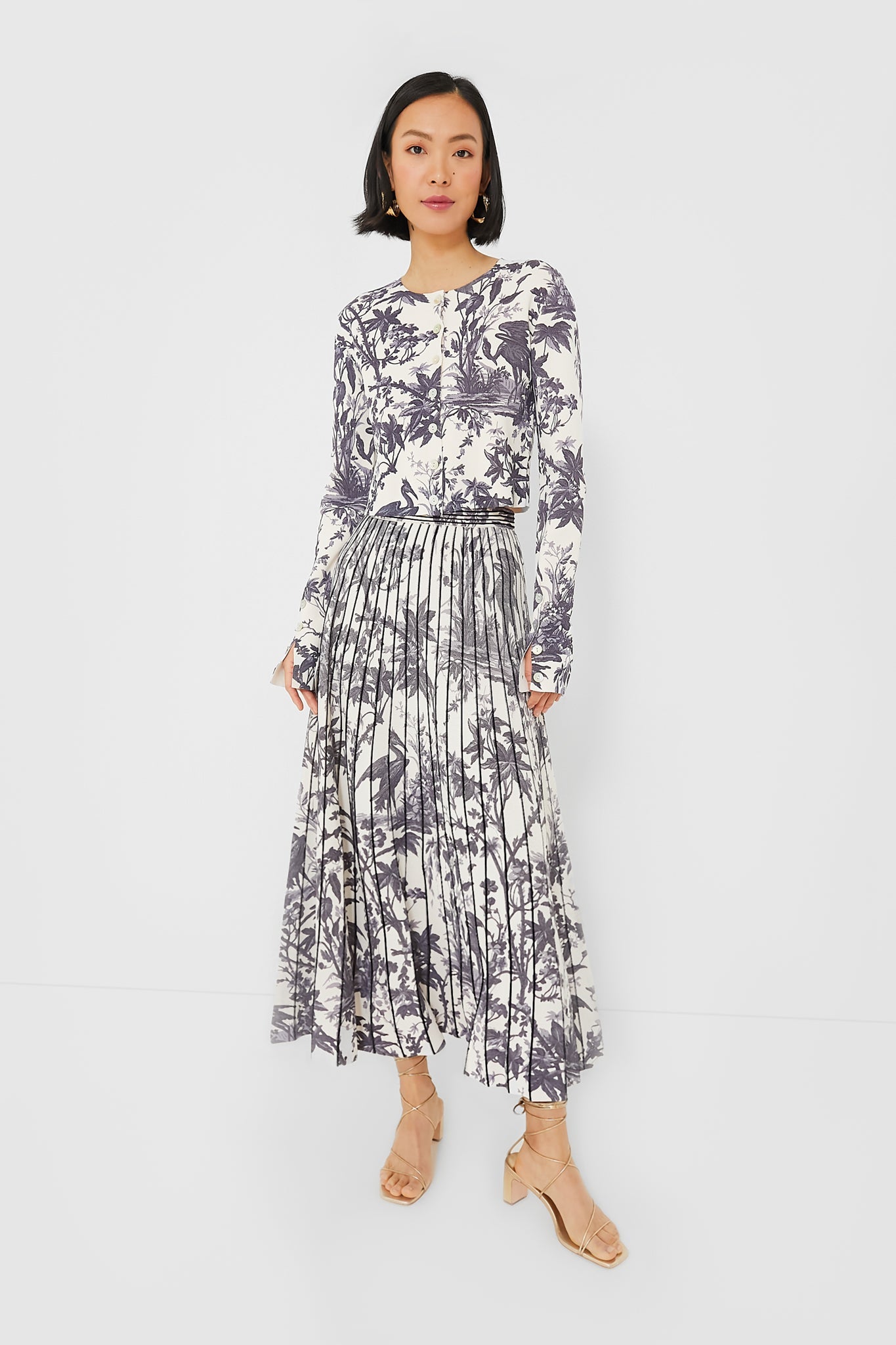 The Heron Evening Blue Tavira Skirt is like a breath of fresh air for your wardrobe! Boasting bold floral print and rendered in slick knit, this flattering midi silhouette features a contrast ottoman stitch throughout to give a pleated appearance, offering day to night versatility for every occasion. We are pairing with the matching Heron Evening Blue Amber Cardigan for a full-fledged set moment or with white bodysuit and sandals for the ultimate cool-girl look.