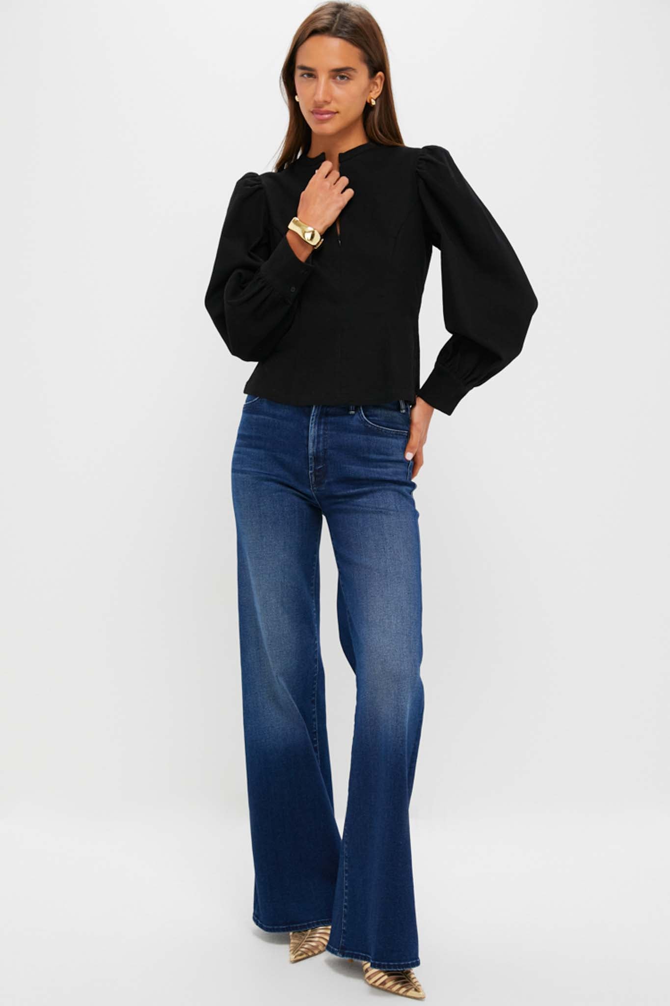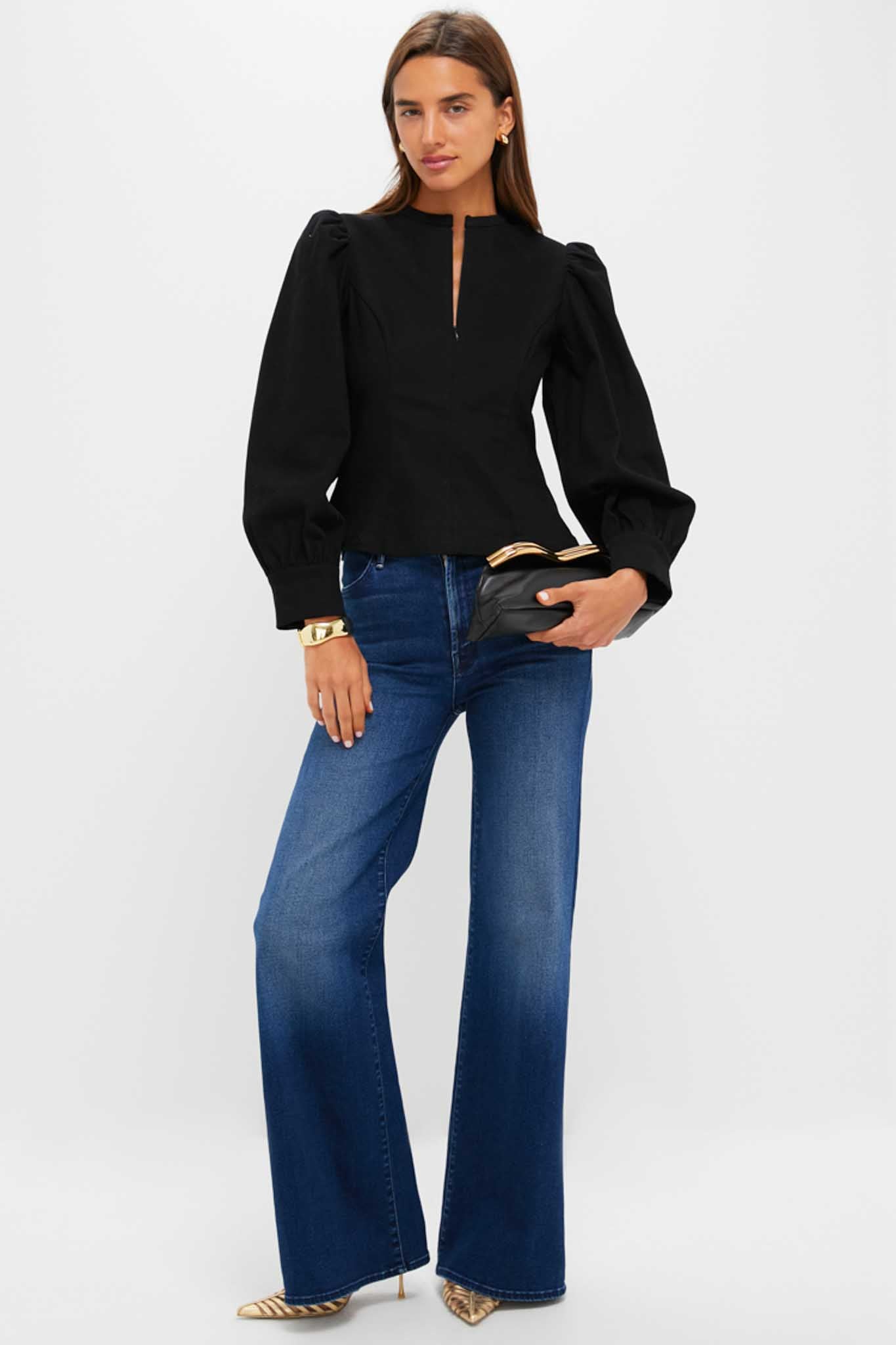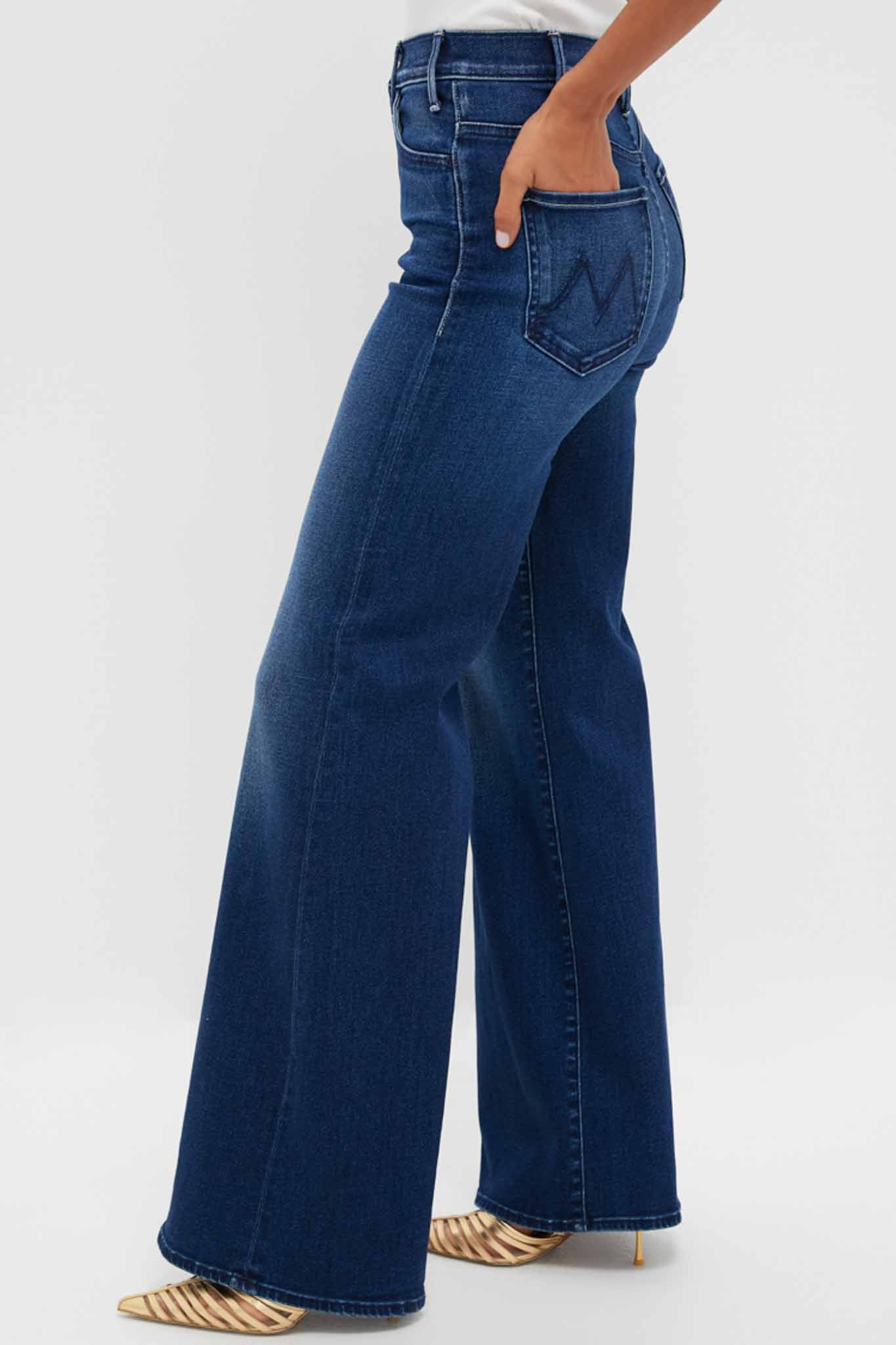 Inspired by 70s style, these wide leg jeans feature a high rise and a clean hem. Made from stretch denim, Homecoming High is a dark blue with subtle whiskering and fading at the knees. We styled it with a top, heels, and clutch for an easy date night outfit.