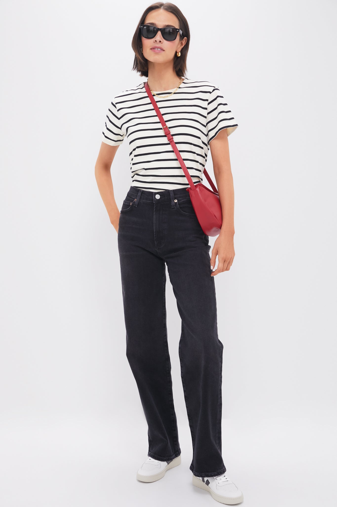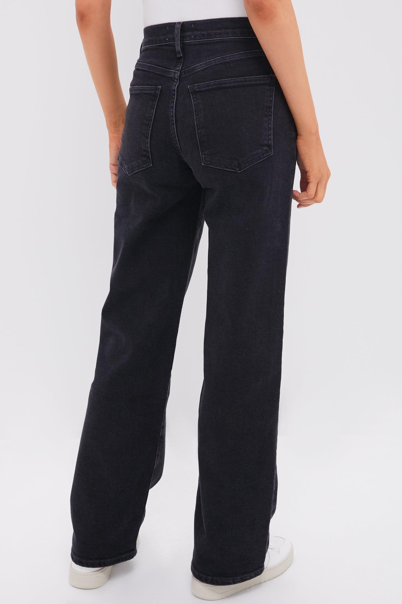 The Harper is crafted from regenerative cotton with added stretch for extra comfort. Featuring a relaxed mid-rise fit, it has a flattering square top block and a straight leg. Made in a black wash denim, it offers a sleek, versatile look with a smooth, clean finish. Perfect for pairing with everything from casual tees to elevated tops, this piece is a wardrobe staple for any occasion.