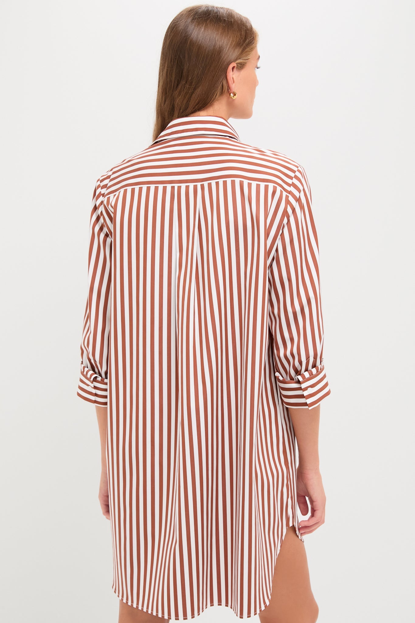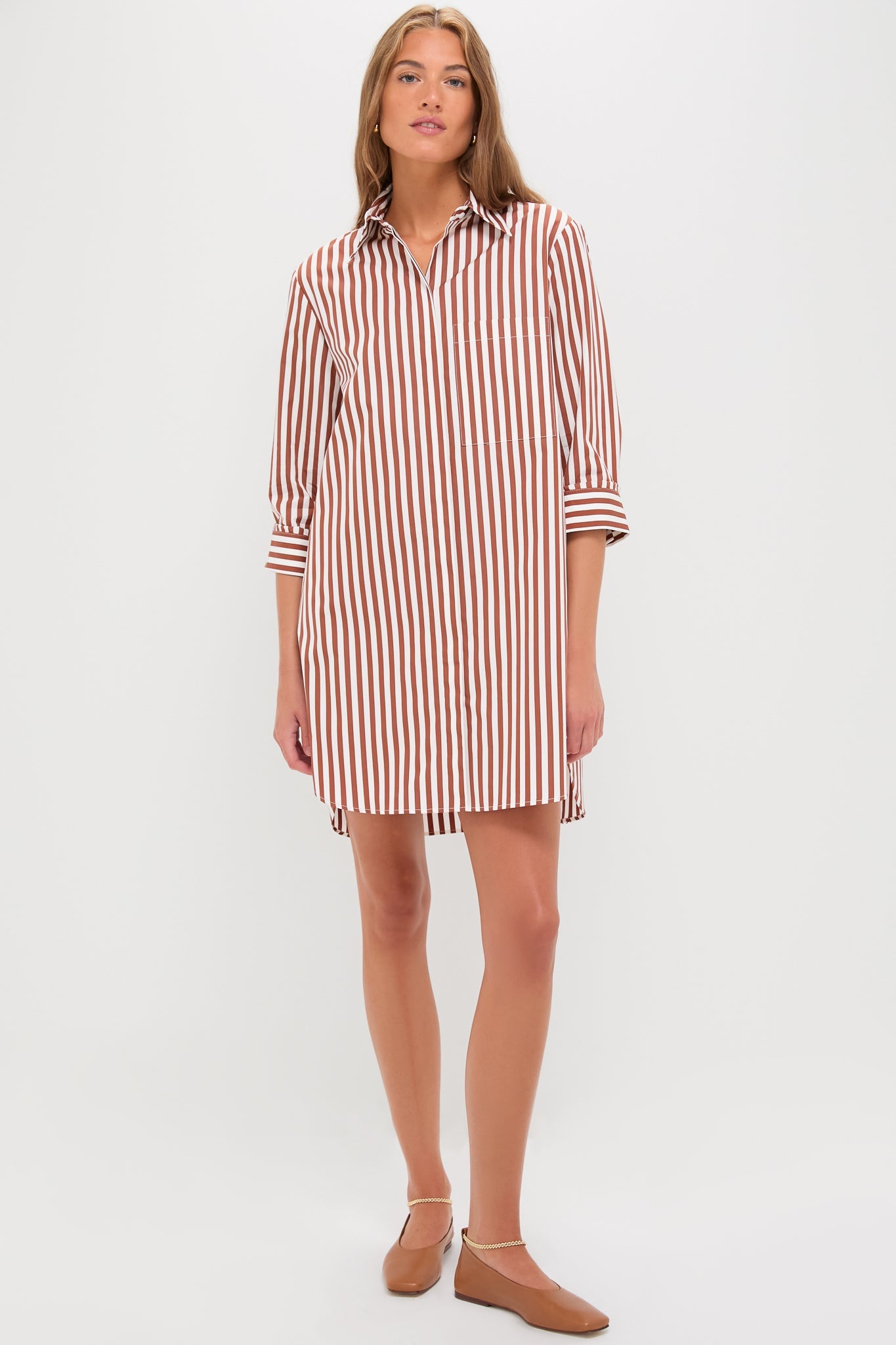 A mini shirt dress in bold striped Italian cotton shirting.
