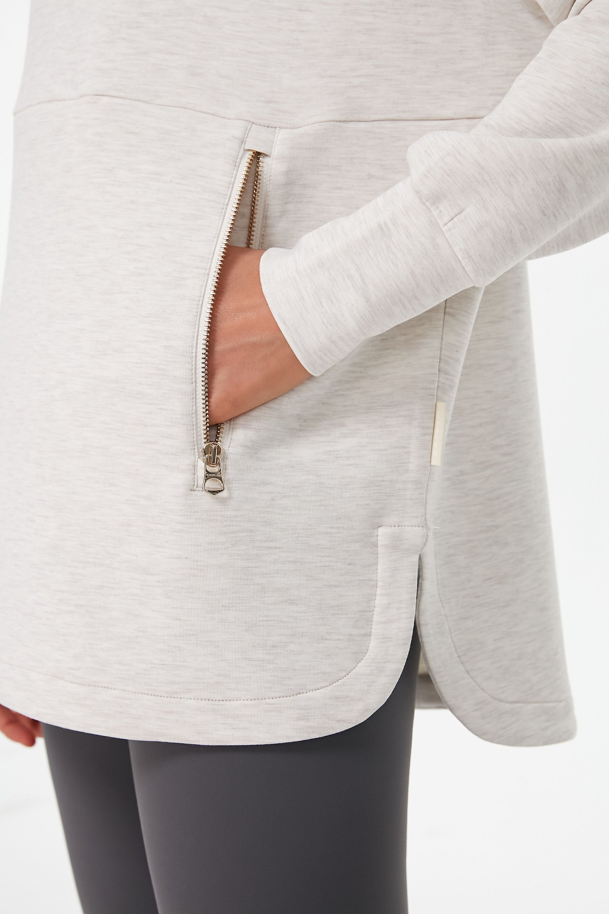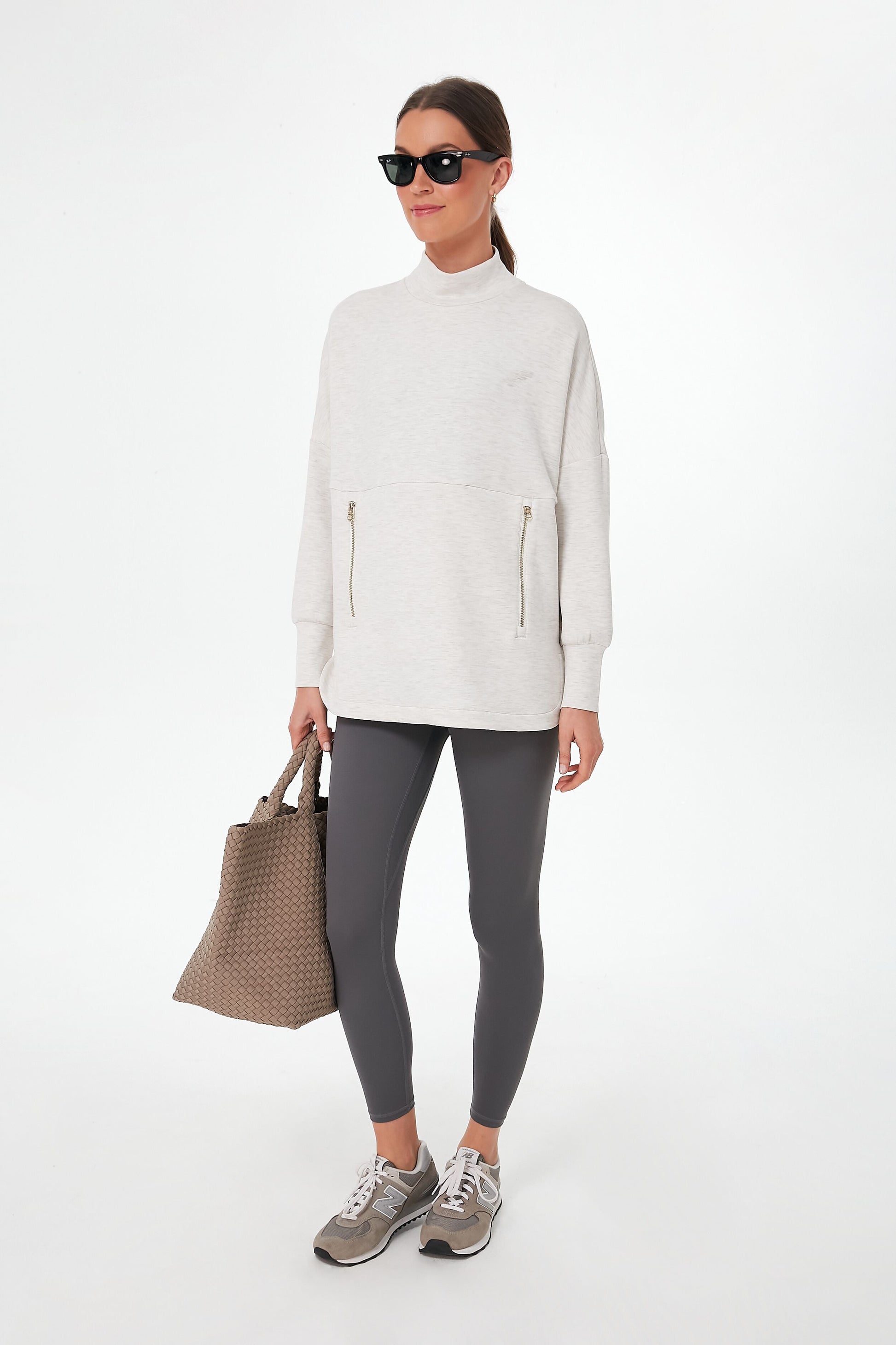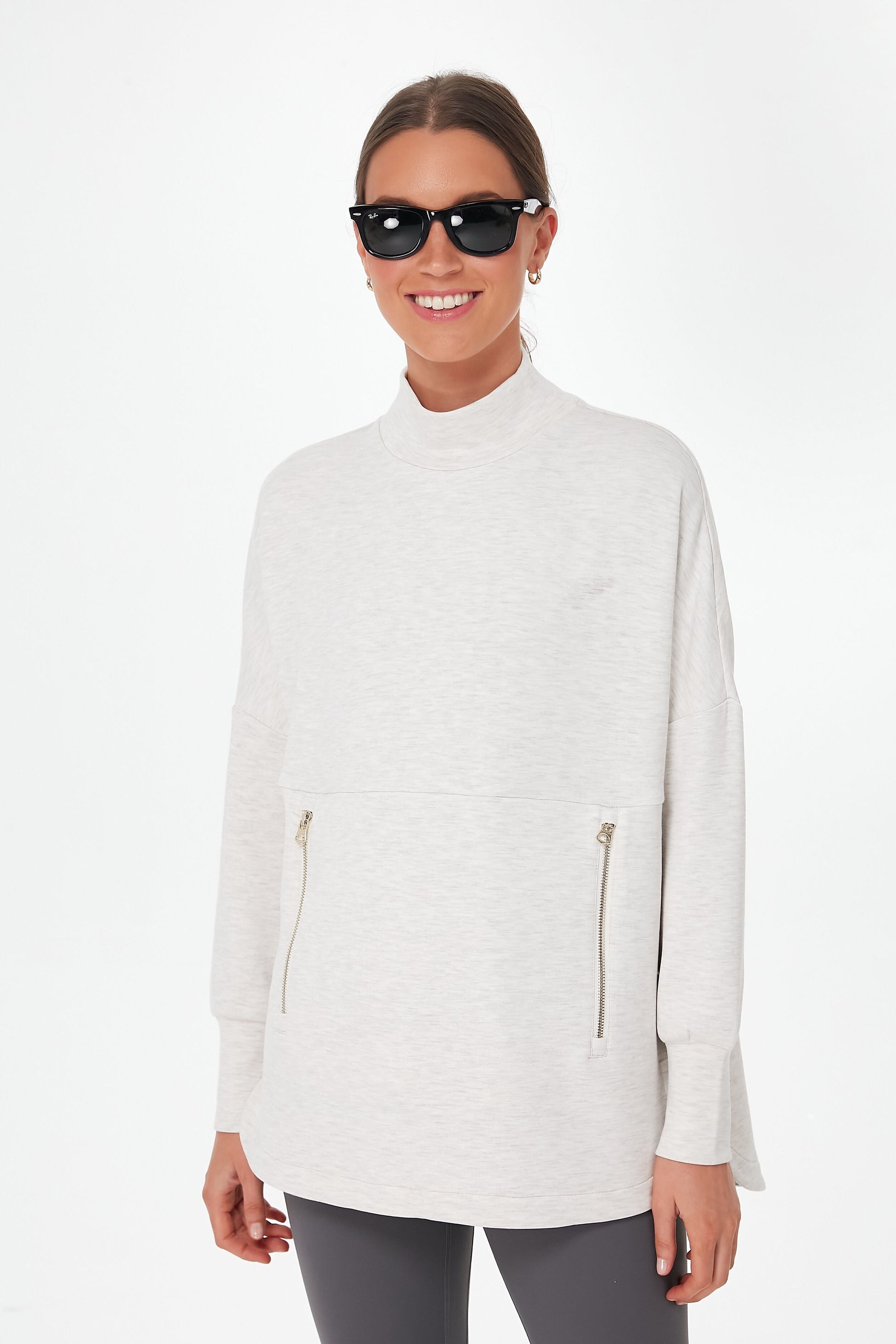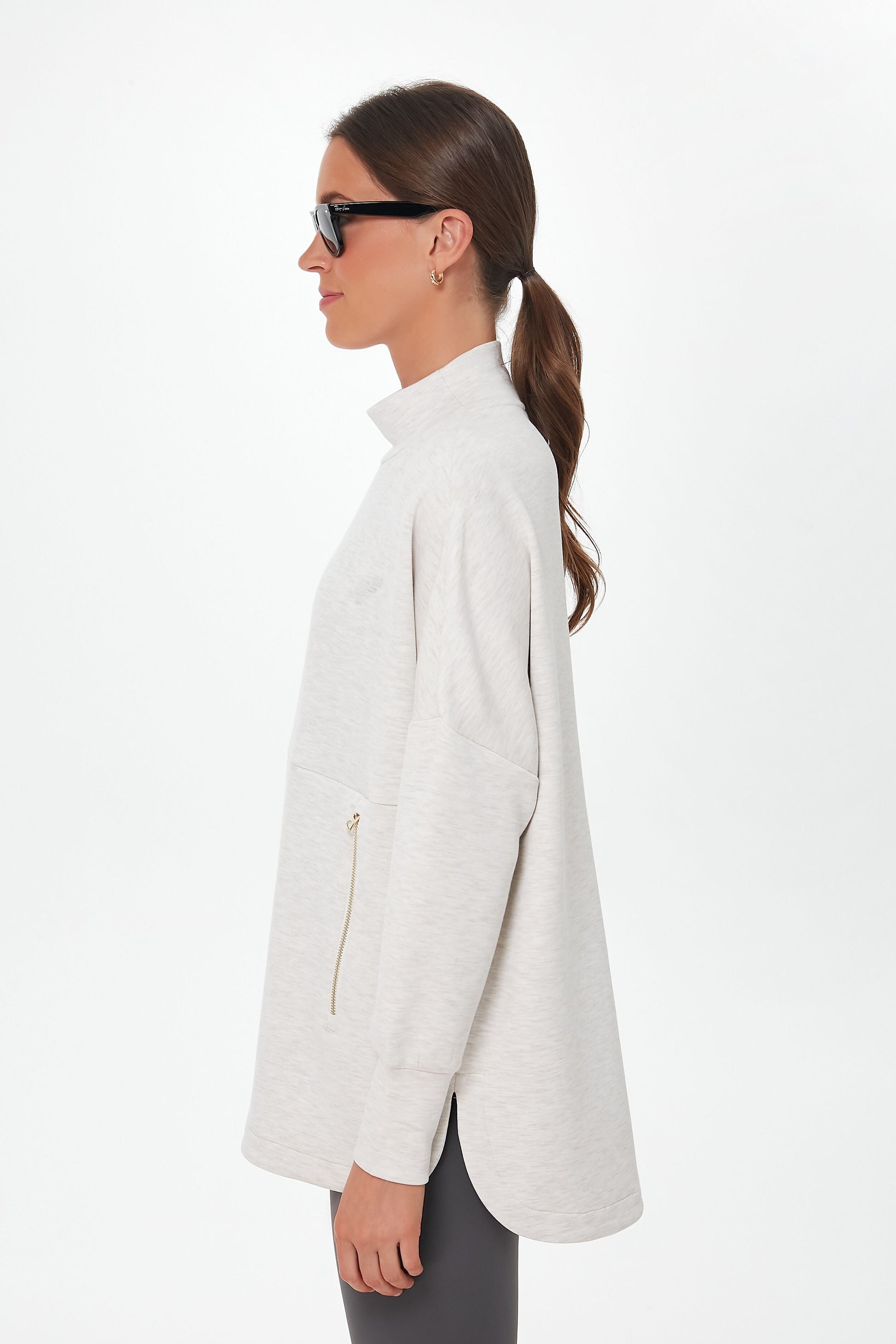 Whoever said activewear can't be chic clearly never saw the Ivory Marl Bay Sweat. The mock neck and exposed zippers make this layer shine, while dropped shoulders and a split hem bring the comfort in droves. Don't mind us, we are just going to be living in this cozy silhouette from now on... and pairing it with everything from leggings to joggers.