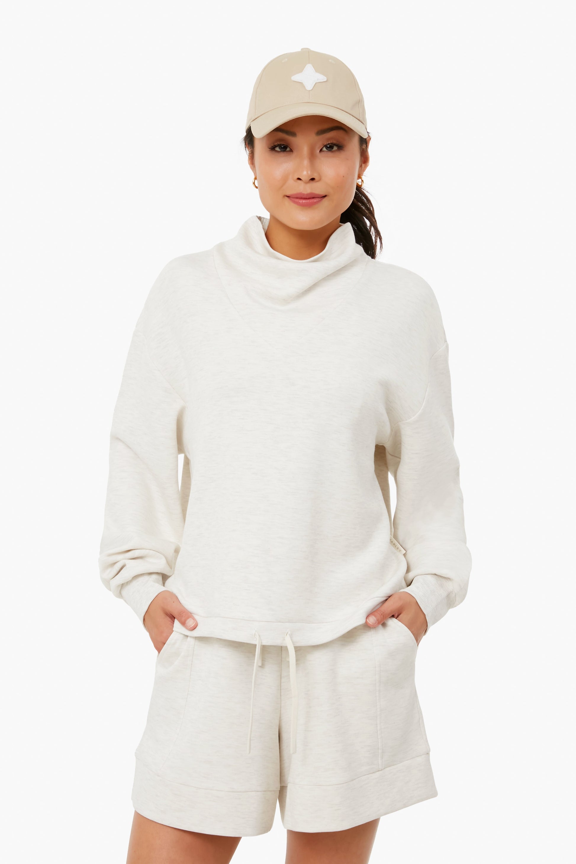 With an elegant cowl neck, and contemporary panel detailing, the oversized Betsy Sweat is made from soft and cozy lightweight fabric. Designed to take you from studio to street with style and ease, this timeless wardrobe staple boasts a drawcord hem for versatile styling. Add the matching shorts and slides for a utilitarian-inspired, cool-girl weekend look.