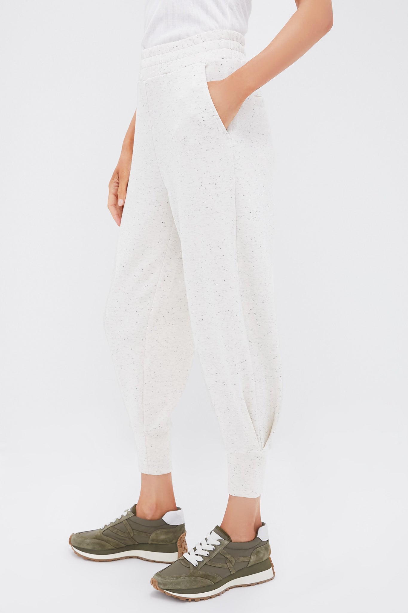 The relaxed fit of these chic sweats offers ample room for movement and the elastic waistband provides a secure fit while allowing for easy on-and-off. Whether you’re lounging at home, running errands, or meeting friends for coffee, these pants are your go-to choice. Pair them with the matching Ivory Marl Fleck Betsy Sweat for a polished set, or throw on your favorite tee for a laid-back style.