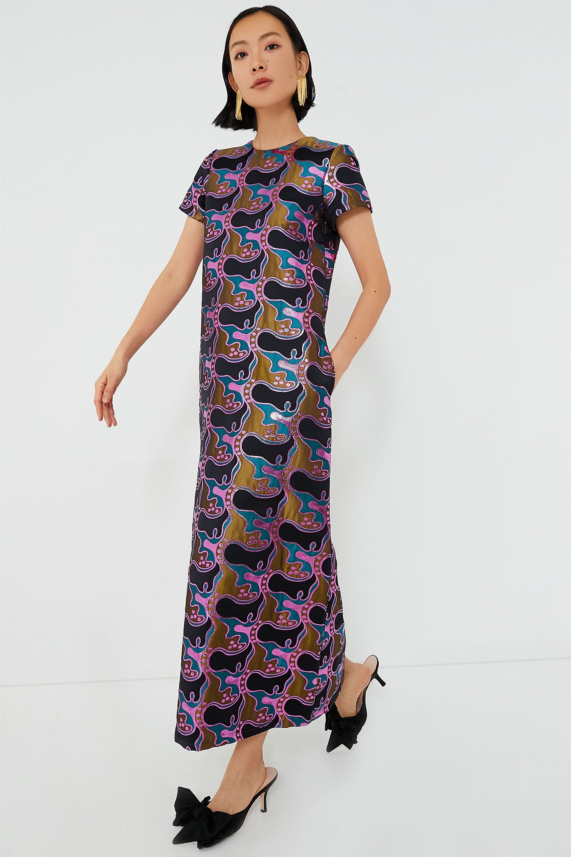 If you're committed to going all out at your next event, the Jacquard Spritz Swing Dress has you covered. As comfortable as it is flattering and fabulous, this mindblowing maxi is made from a gorgeously textured metallic fabric and finished with a bold print you're sure to love. Pair this one of a kind silhouette with heels and a clutch for a glamorous ensemble that's sure to earn you some compliments.