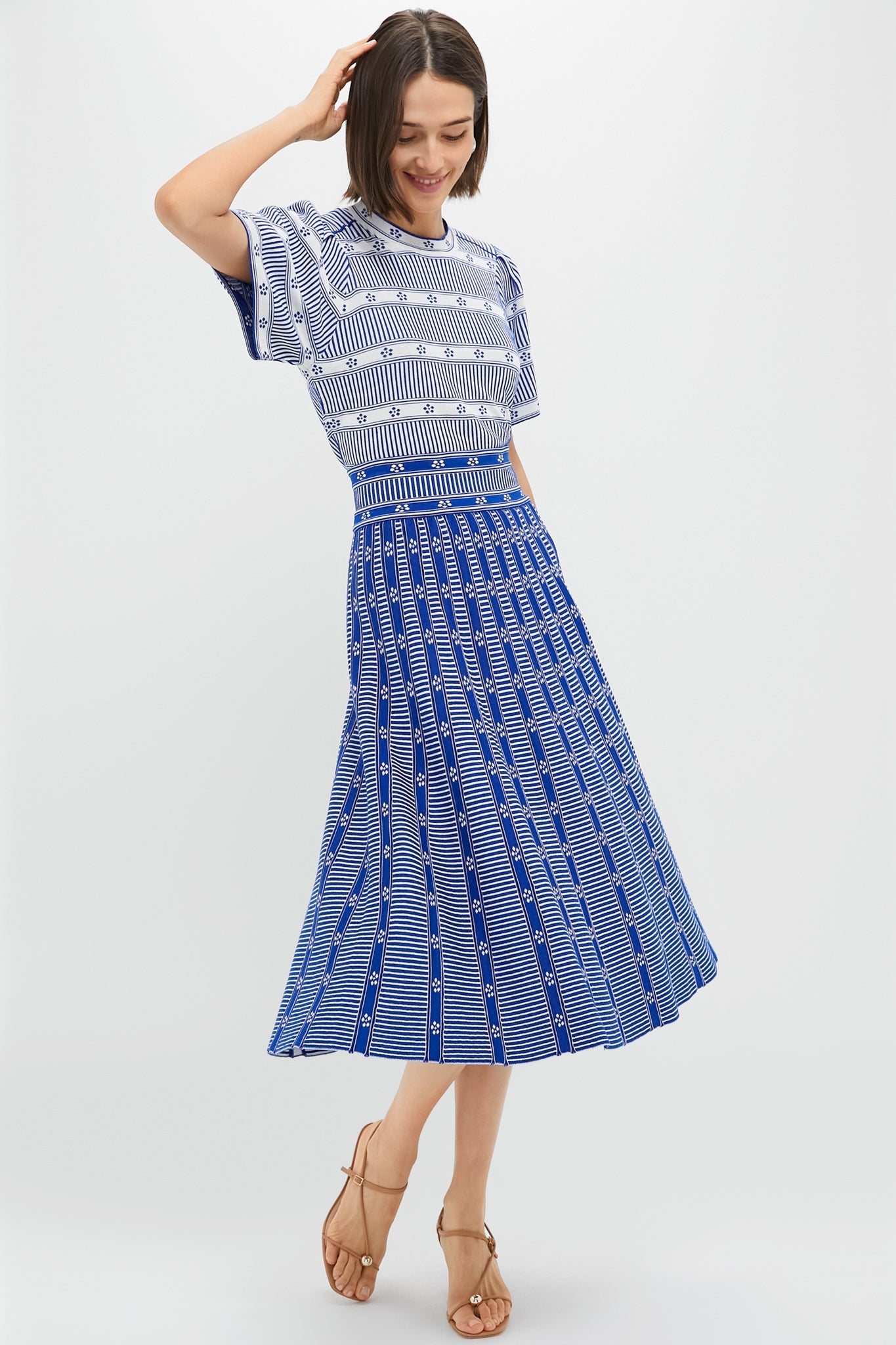 The Majorelle Capucine Skirt stands out thanks to its jacquard pattern that combines small flowers and stripes. Made from a cotton blend, it has a slight sheen that captures the light. Its fluid cut gives it a natural elegance, while the jacquard waistband emphasizes the silhouette with harmony and femininity. Pair it with the matching Majorelle Camelia Top, heels, and clutch for an elevated and sophisticated look!