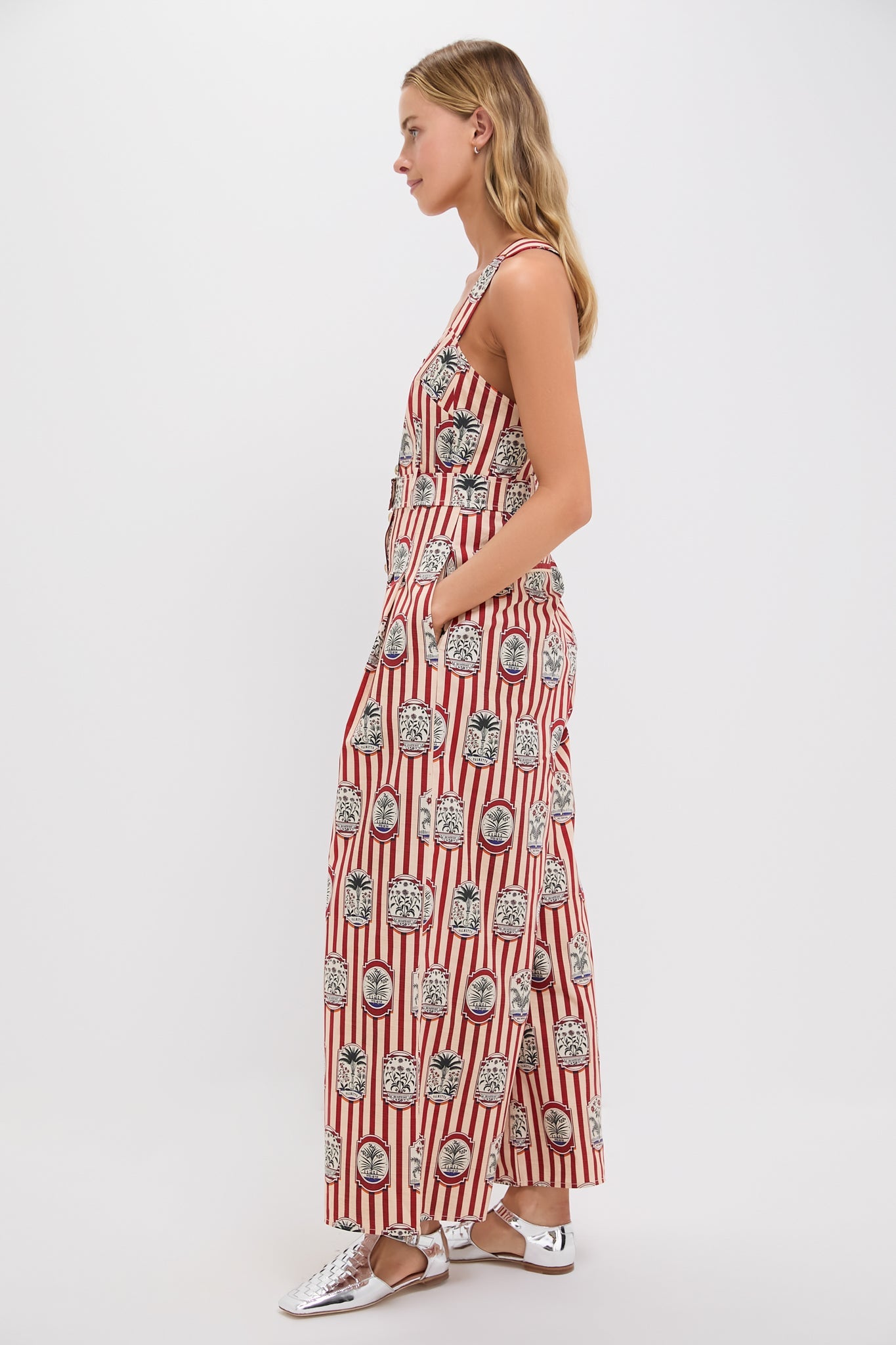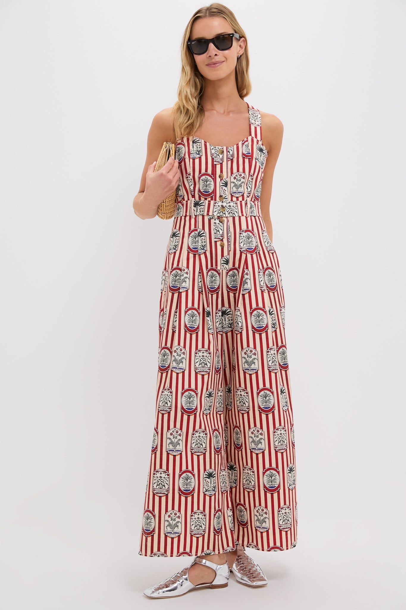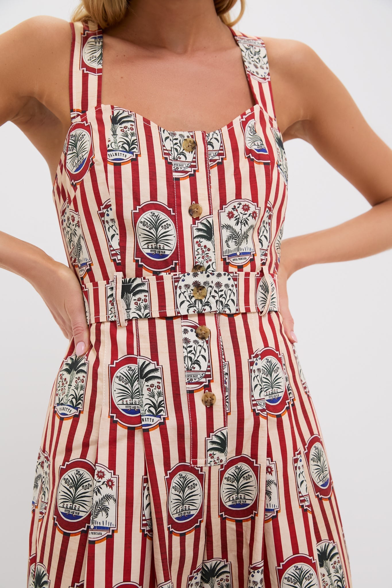 With a sweetheart neckline, cross-back adjustable straps, and a pleated wide-leg pant, this jumpsuit is equal parts tailored and effortless. Finished with a functional fabric belt, horn buttons, and side seam pockets, Sandy is your new go-to for polished ease with a playful twist.