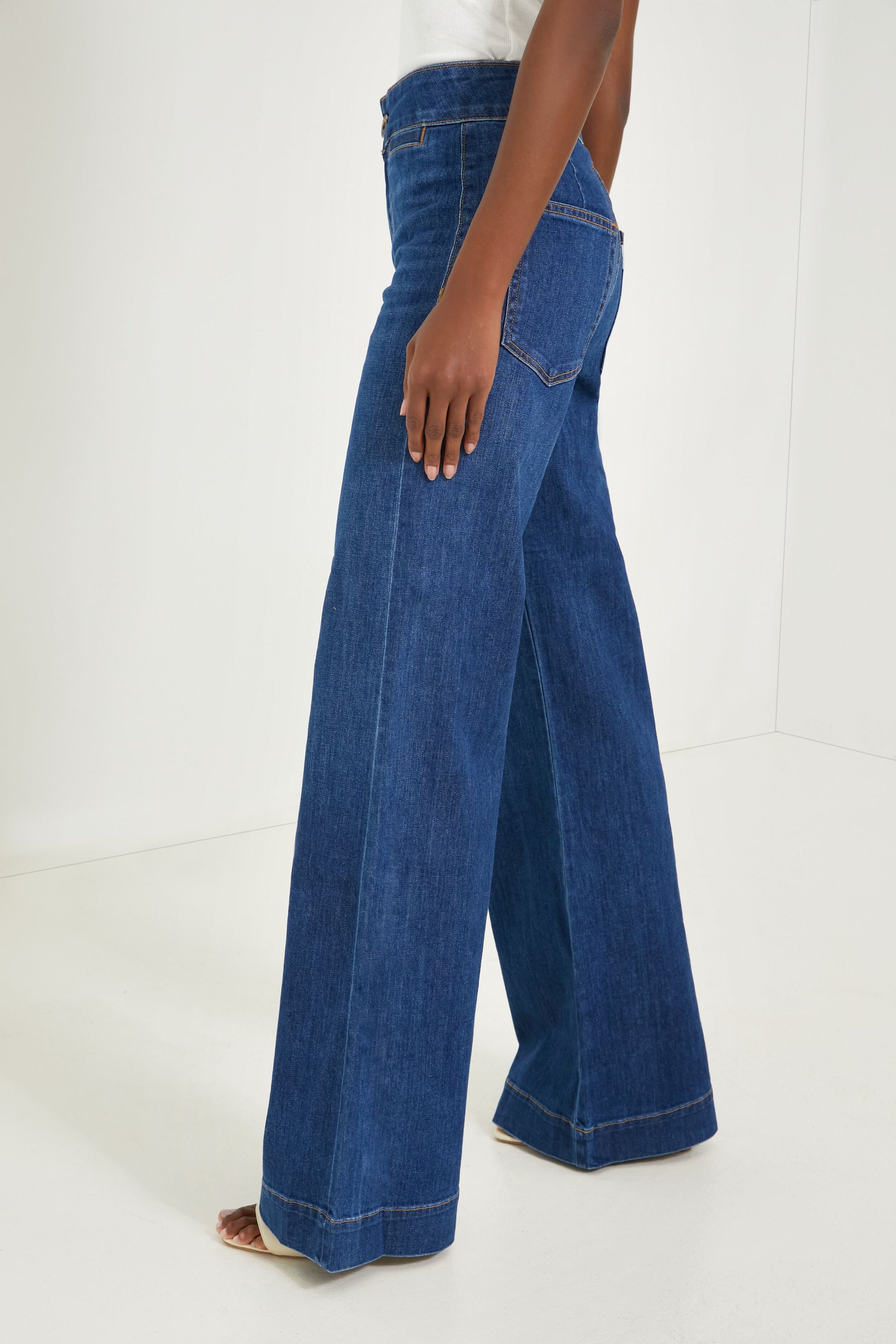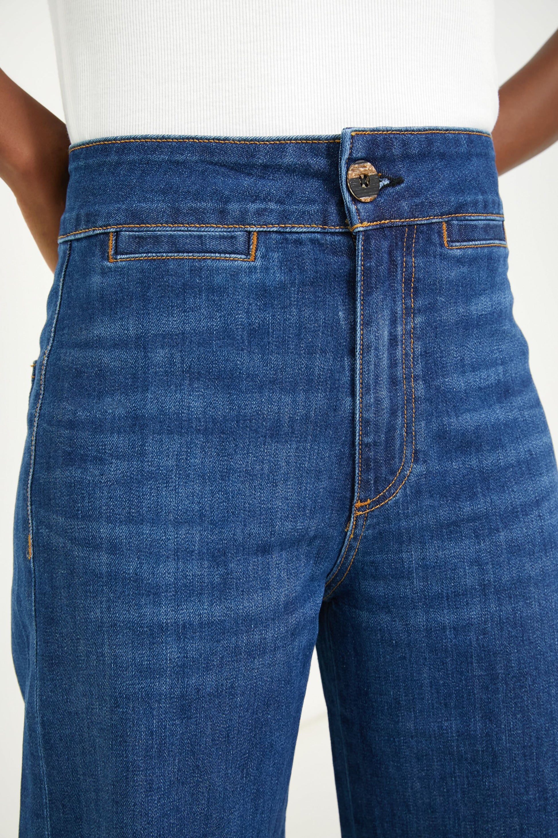 The retro-inspired Mercury Brighton Pant has us in a denim daze! Beautifully crafted from lightweight stretch denim, these high rise jeans are funky and fun. Featuring a flattering slim fit through the thighs and wide-leg cut, these bottoms pair perfectly with any top. Style with a graphic tee and boots for a festival, or dress it up with a blouse, gold jewelry, and pumps for a desk-to-drinks look.