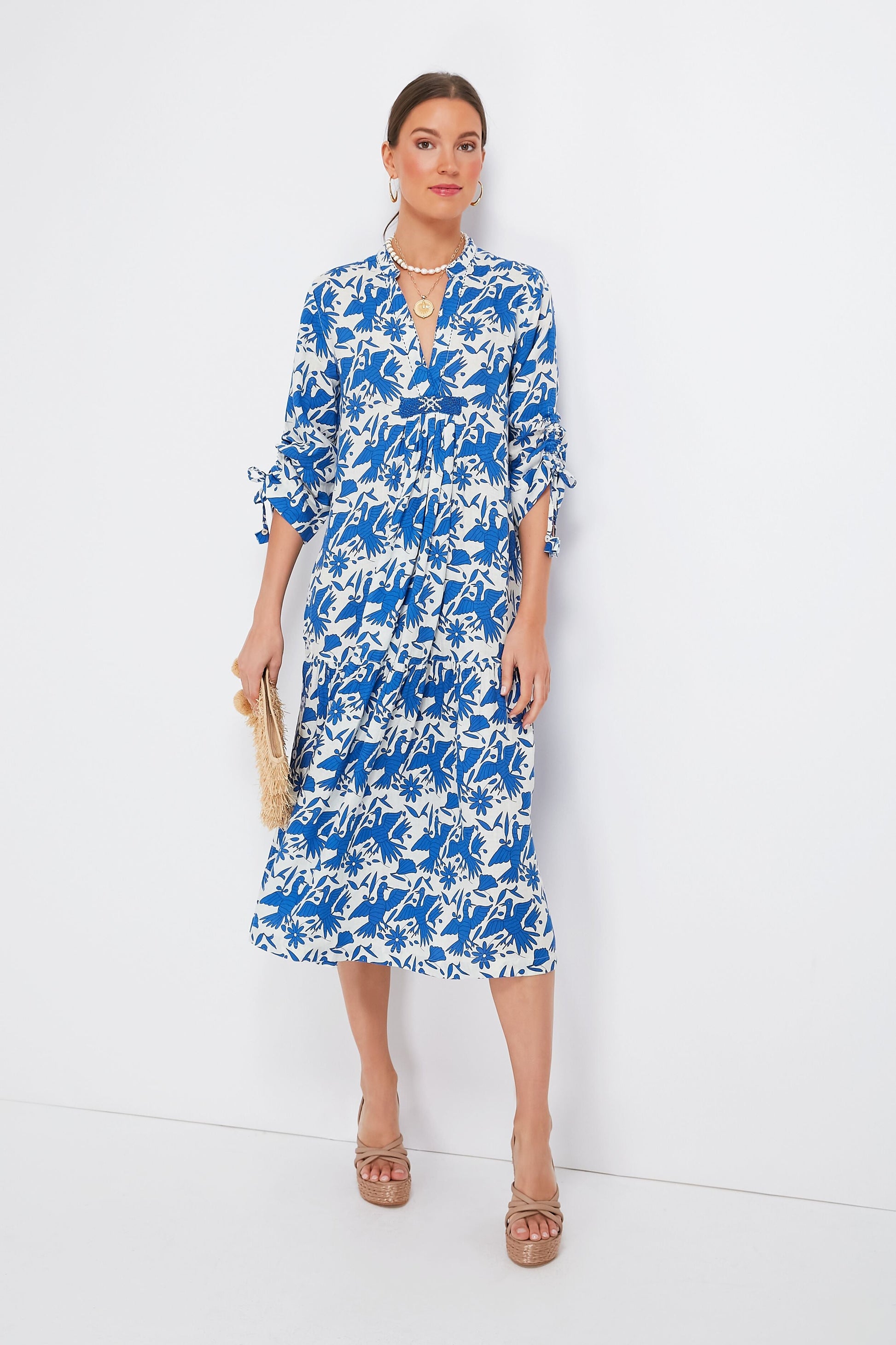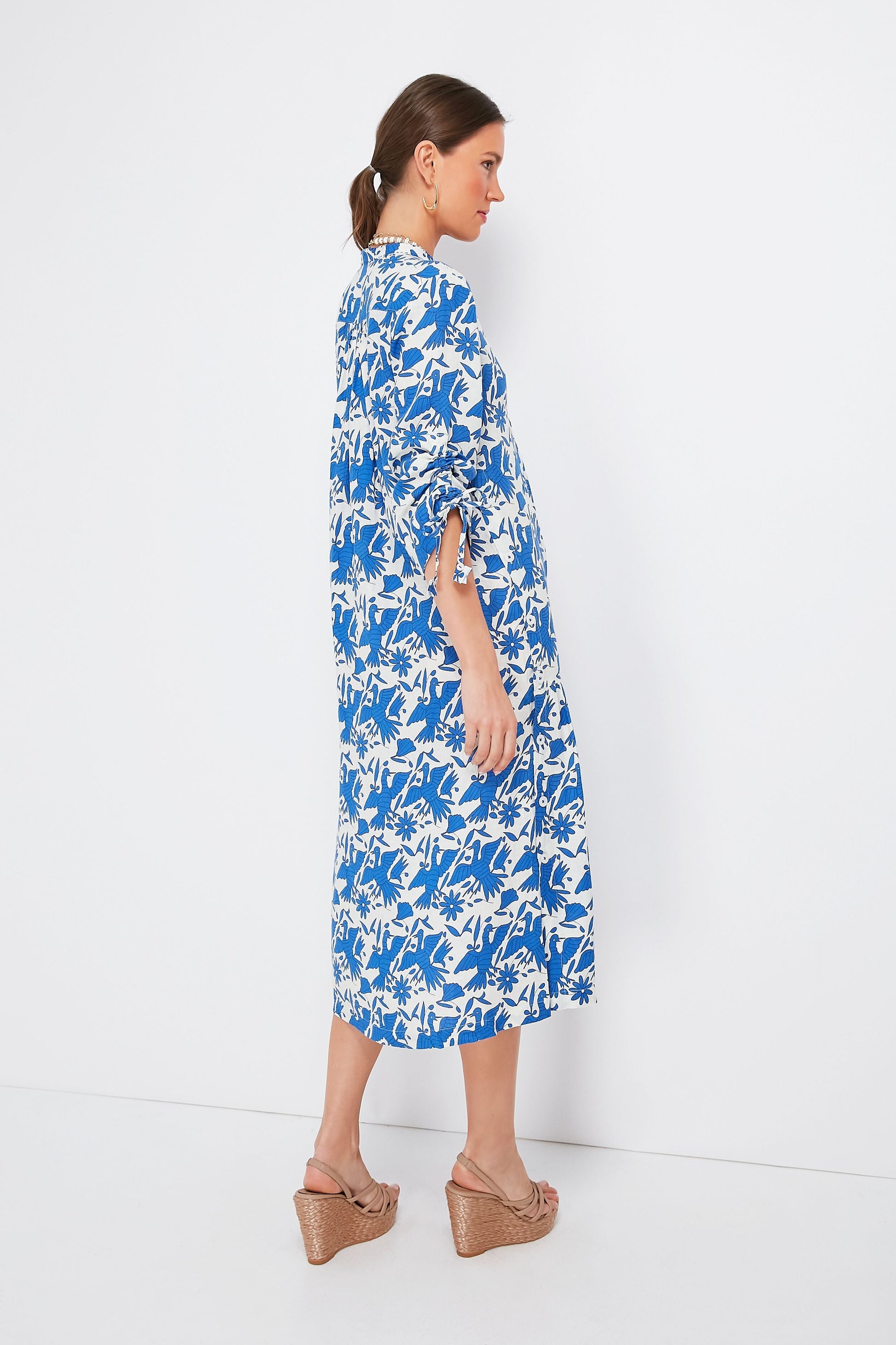 We think you can probably tell why the Mexican Blue Bird Catmint Dress is the brand's all-time bestseller. It is effortlessly glamorous with a beautiful drape, and full of fun thanks to that incredible print! Our favorite details include the self-tie drawstrings at the sleeves to create a perfect fit, and the stunning beadwork at the base of the neckline. Made from airy linen that will keep you feeling cool no matter what you have planned, this midi pairs well with wedges and gold jewelry from casual hangouts to dinners al fresco!