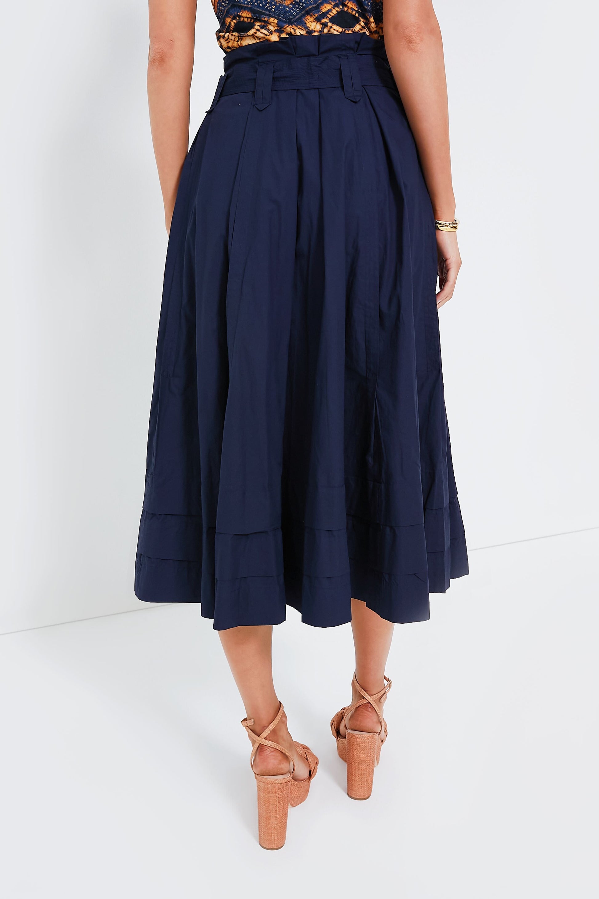 The Midnight Dylan Skirt will soon be an essential in your closet. An adjustable paper bag waistline and flowy fit add delight to this otherwise simple midi. Crafted from Ulla Johnson’s signature water washed cotton poplin, this silhouette is lightweight and perfect for sunny days. Add a little drama to your outfit by styling this beauty with a printed tank and lace-up sandals for a boho-chic look.