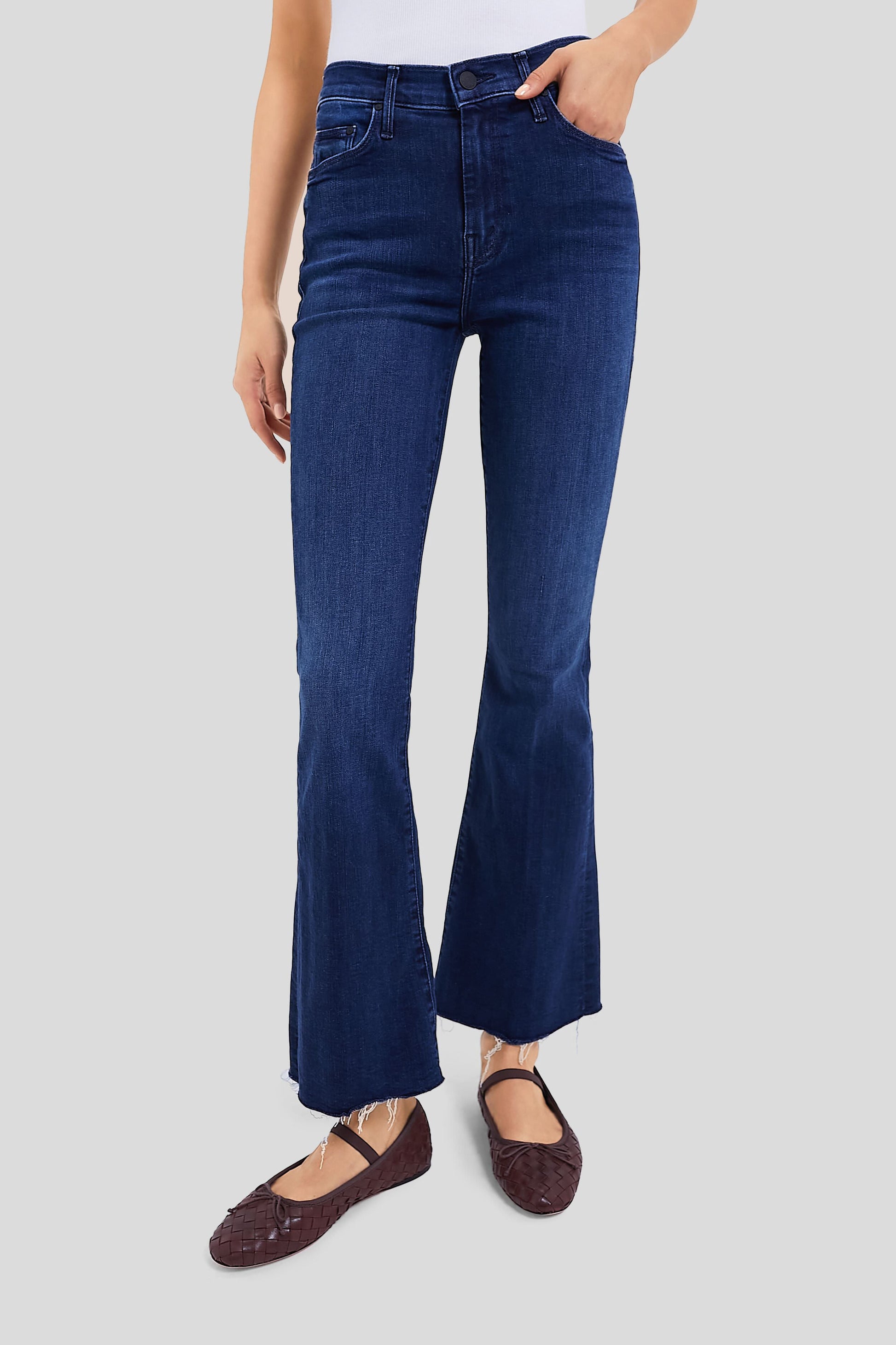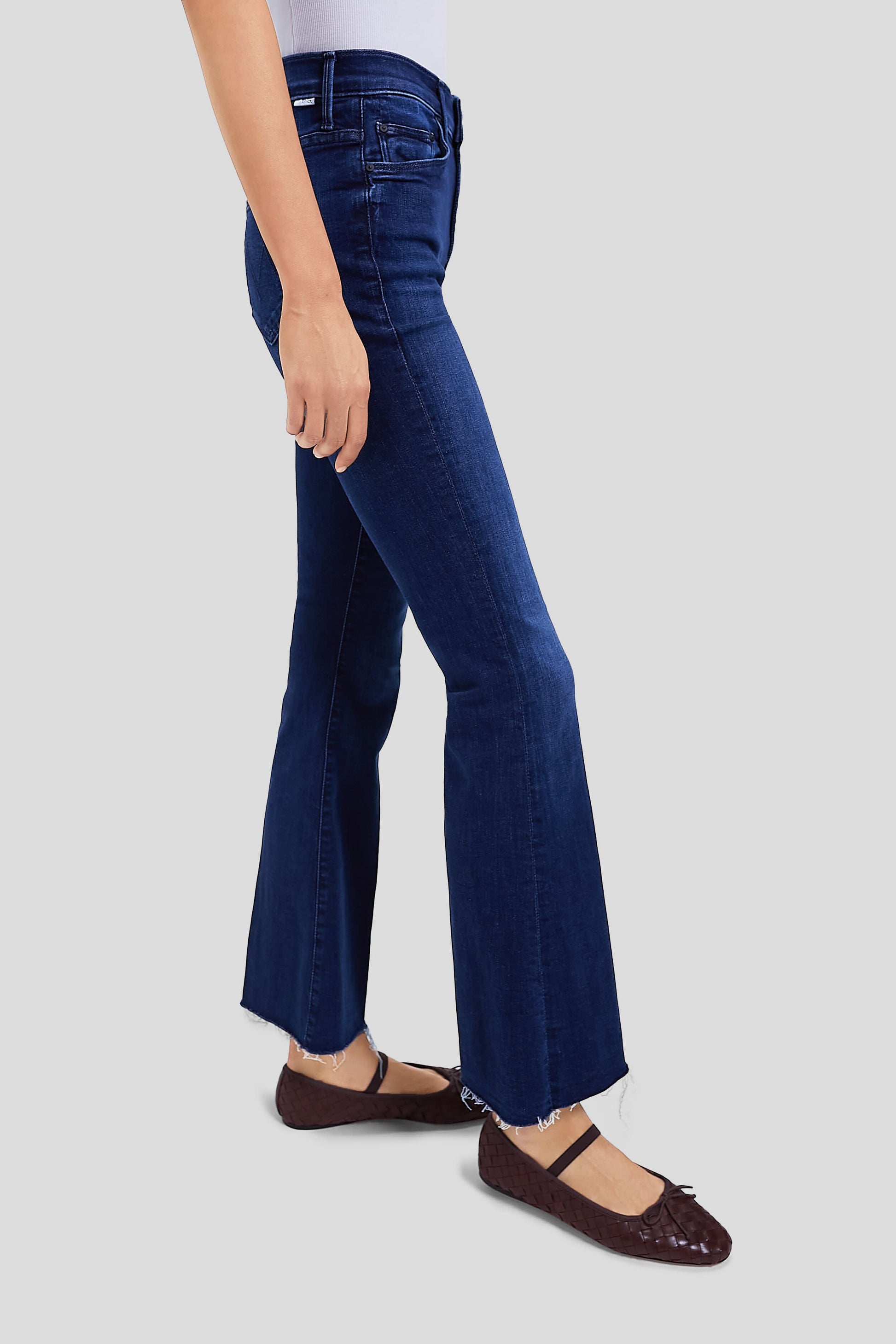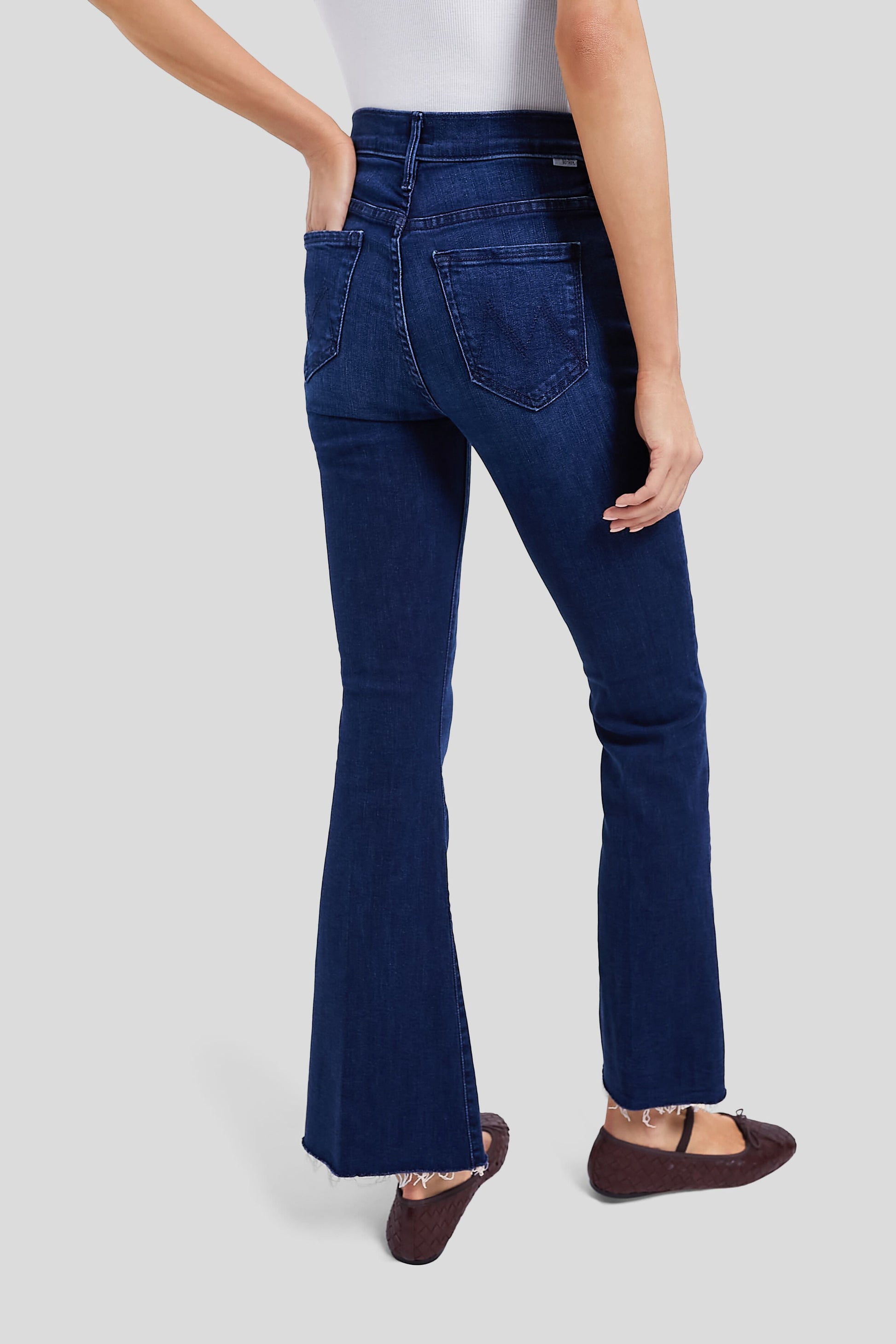 A MOTHER cult-favorite, the Mint Condition The Weekender Fray are mid-rise flares featuring a retro-inspired shape and a full length inseam perfect for pairing with boots. Crafted from soft stretch denim in a midnight blue wash, this classic silhouette will instantly become your go-to pair of jeans. Pair with a chunky knit for a day of adventures and swap for a silky blouse when you want an elevated look with a bit of cool-factor.