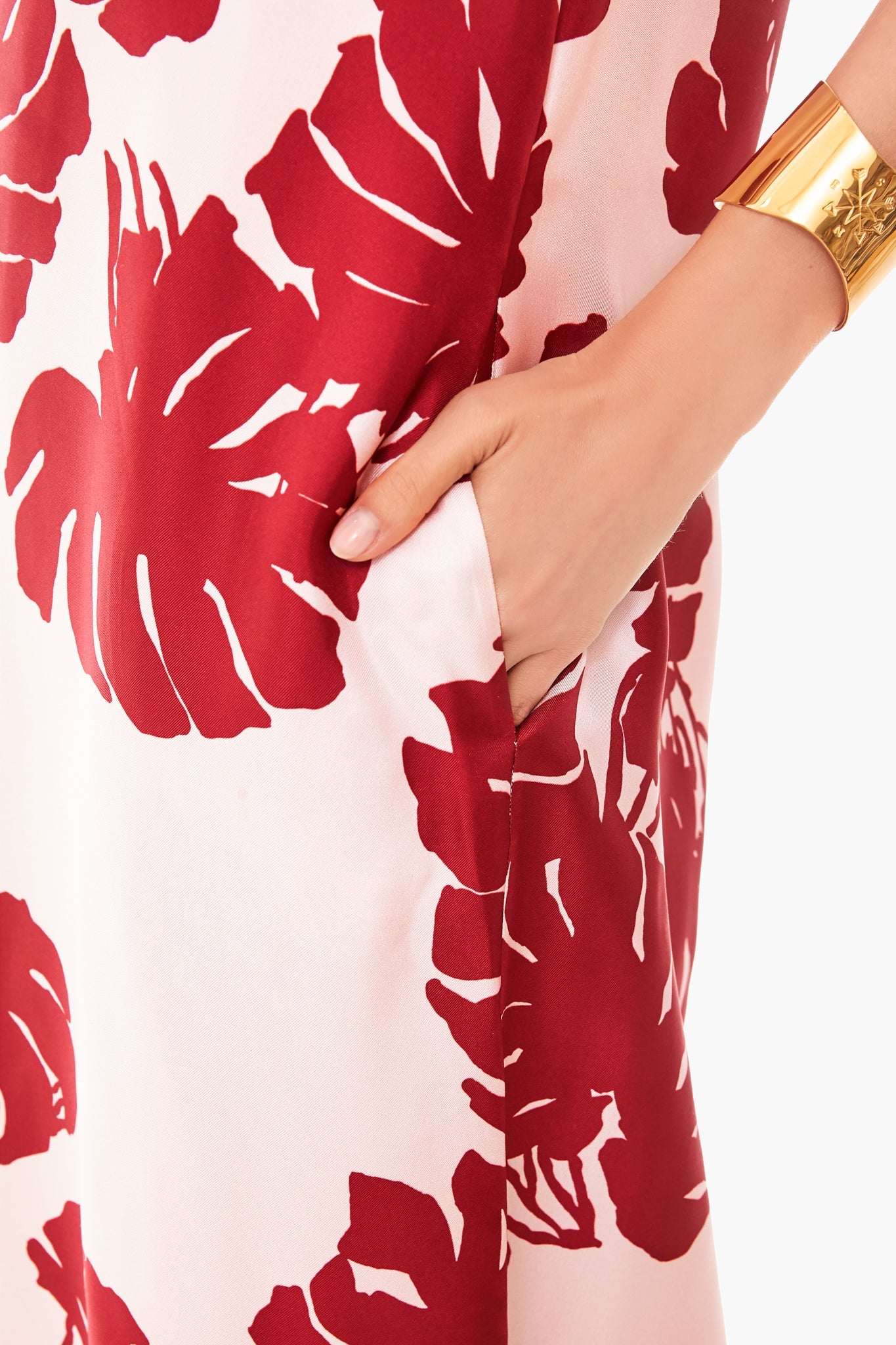 The Monstera Rosa Swing Dress is made from silk twill from Lake Como. Easy for everyday wear, this midi is fitted in the shoulders, yet generous in the hips. Bold and beautiful, this style can be worn from desk to drinks to special occasions with a change of accessories.