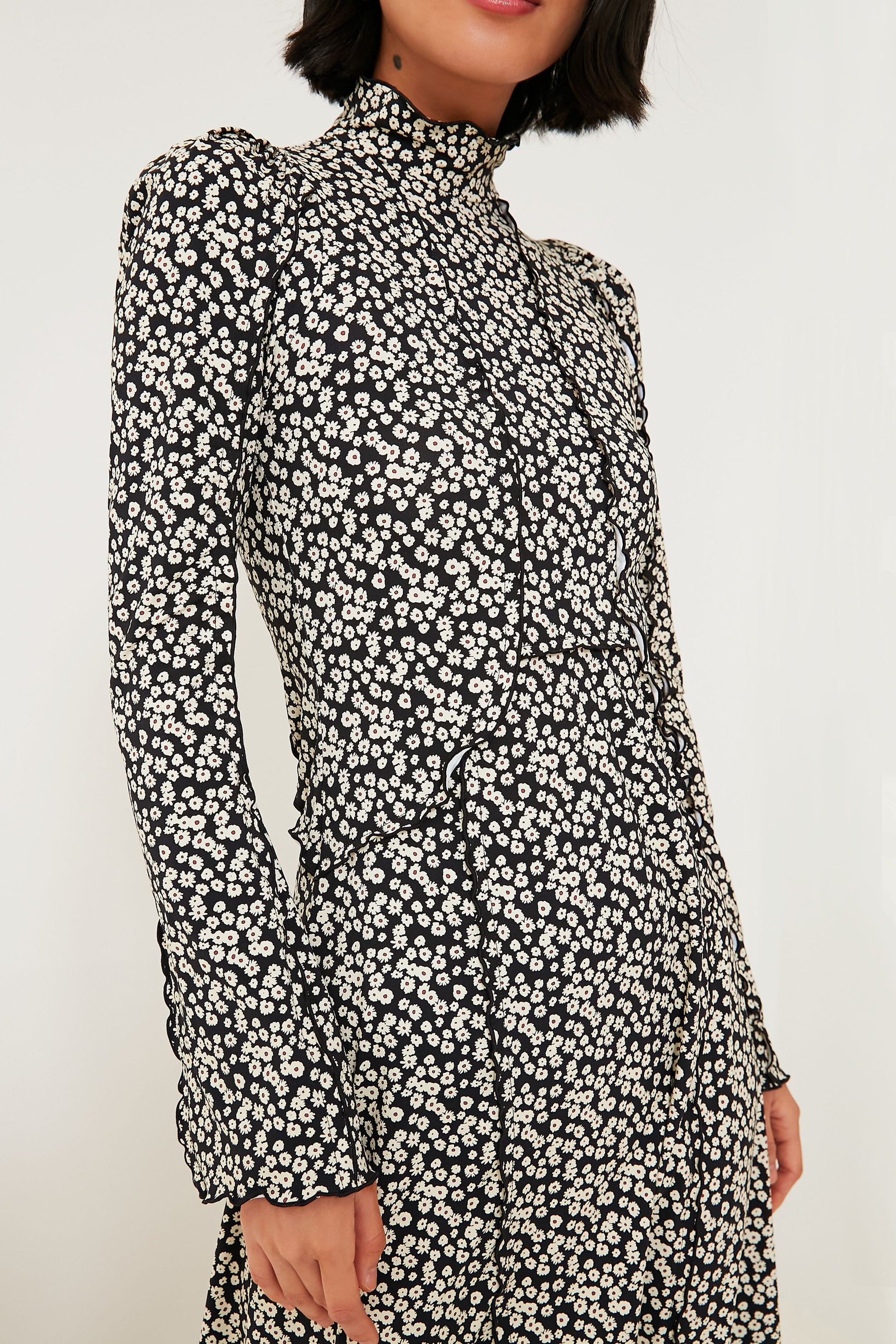 Beautifully detailed, the Multi Della Print Long Sleeve Dress is nothing short of striking. Delicate ruffle details decorate this midi along with a high neckline and body grazing silhouette that is designed to flatter any figure. For cool nights and breezy afternoons, we are wearing this to winery visits and date nights alike for a standout look.