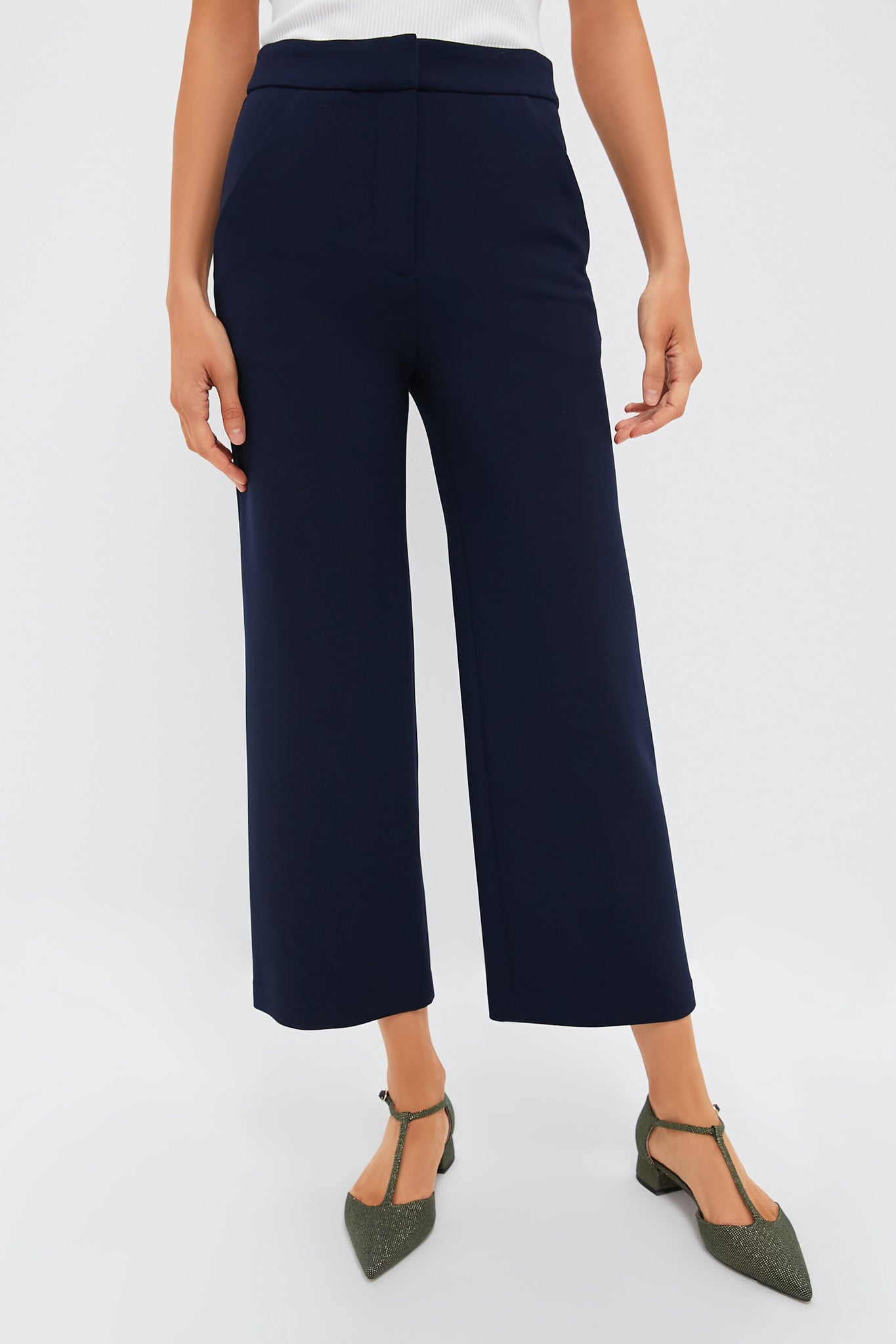 Say hello to your new go-to. The Navy Brixton Pant is a timeless addition to your wardrobe, thanks to its high-rise, wide-leg silhouette that is always flattering. The slightly cropped length highlights your footwear, too. Pair with a coordinating jacket for traditional suiting look, or edge it up with a sexy tank and stilettos for your next date night.