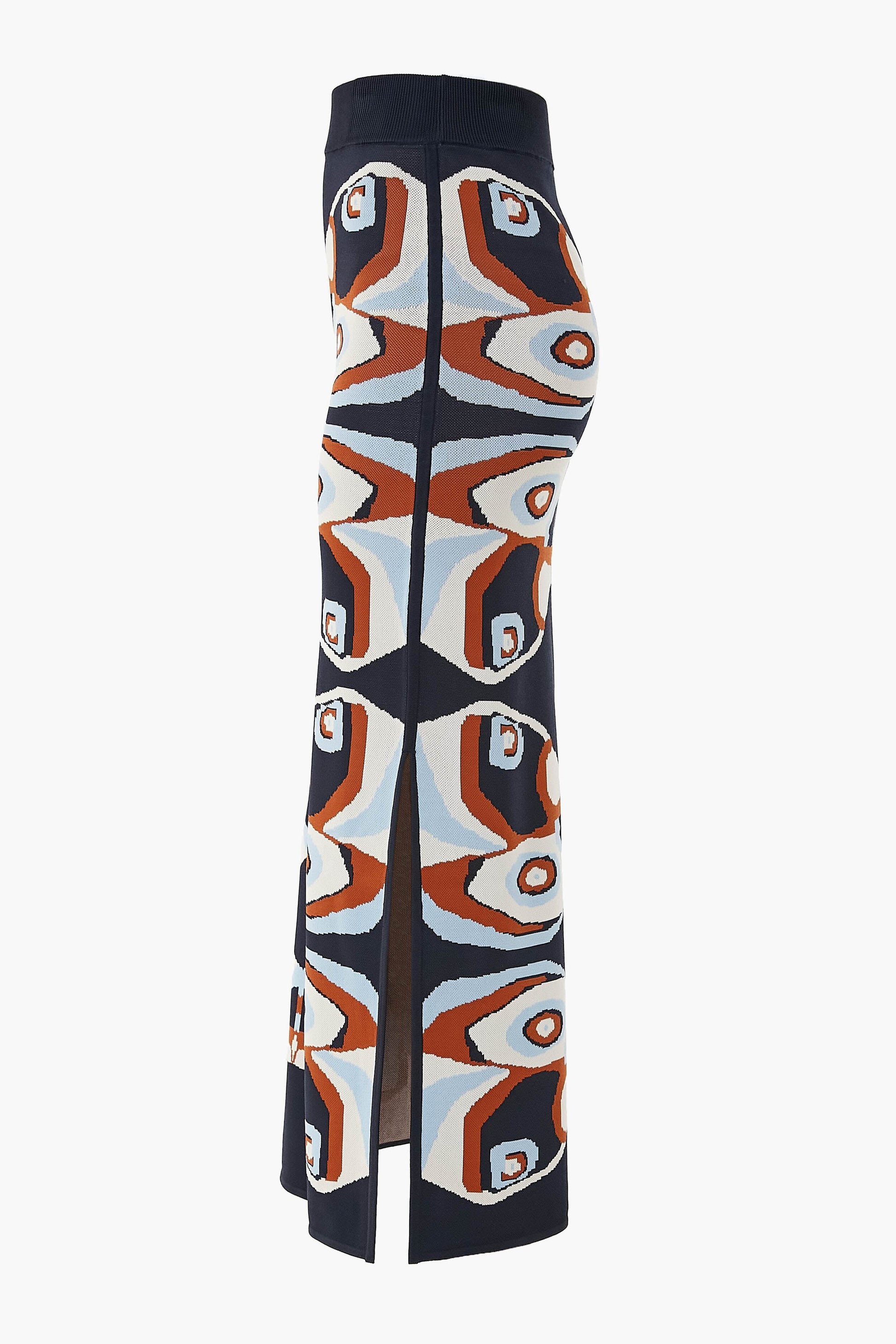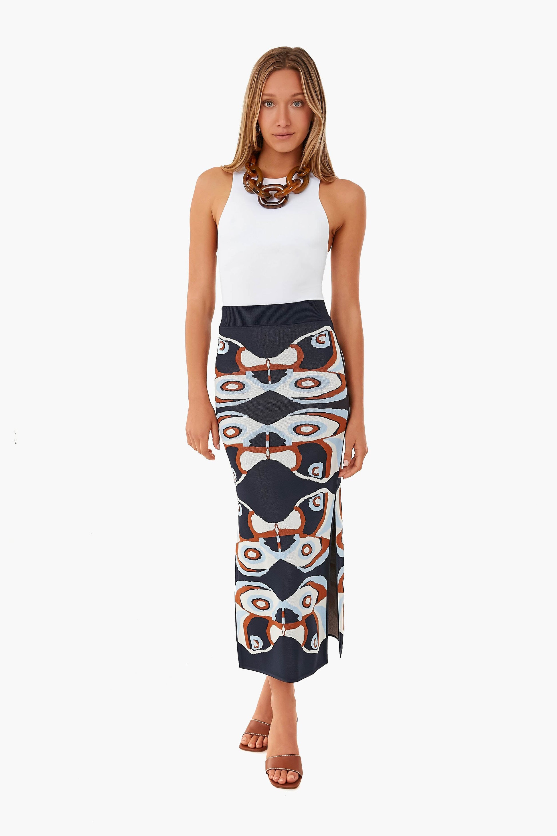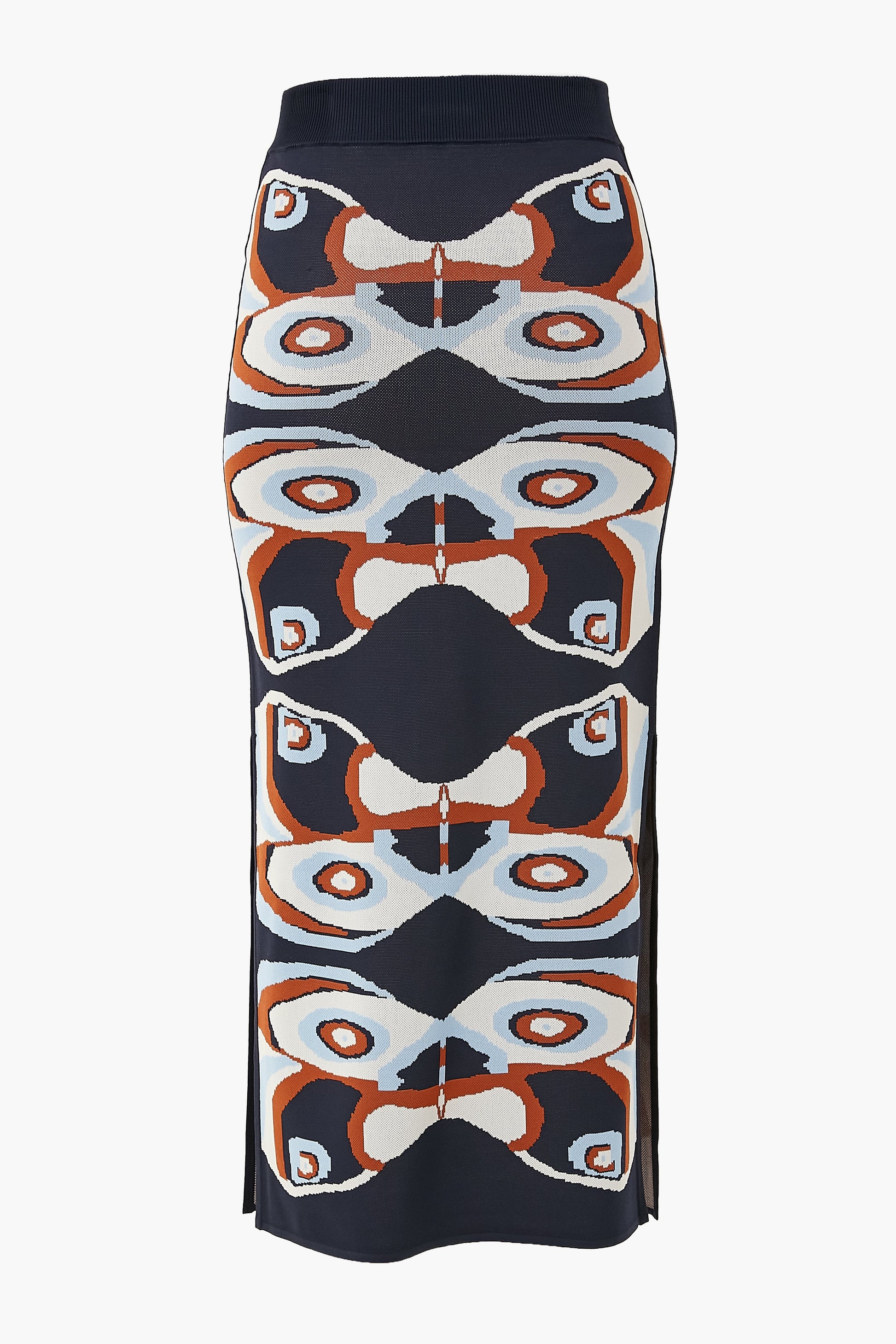 The Navy Nylah Skirt features a cascading butterfly print, side slits, and a high rise, pencil silhouette. This piece can be worn three seasons a year, and with a bold pattern, you'll be sure to receive compliments wherever you wear it. Pair with sandals for warm weather and swap out for boots and sweaters when it cools off for an eye catching look.