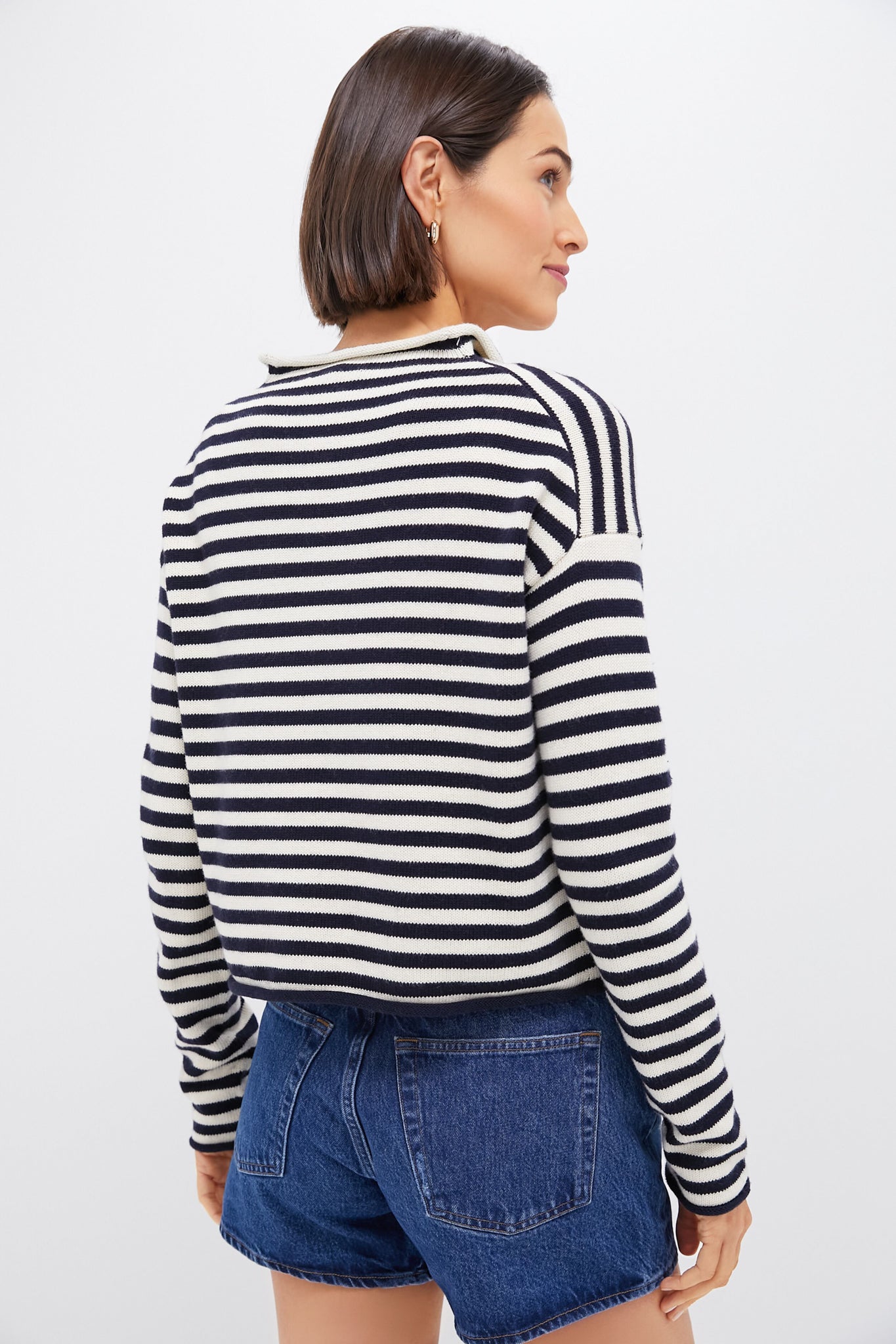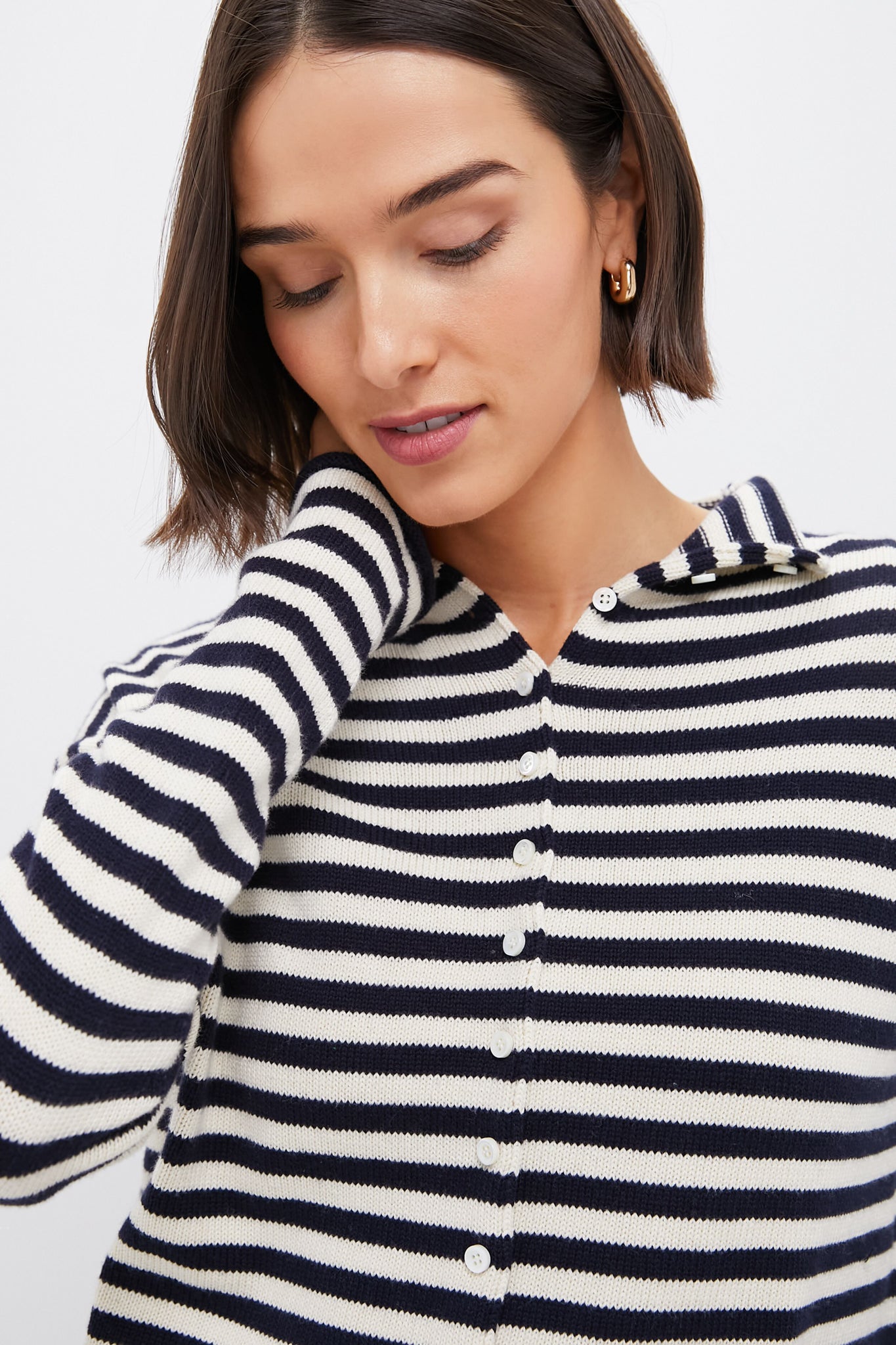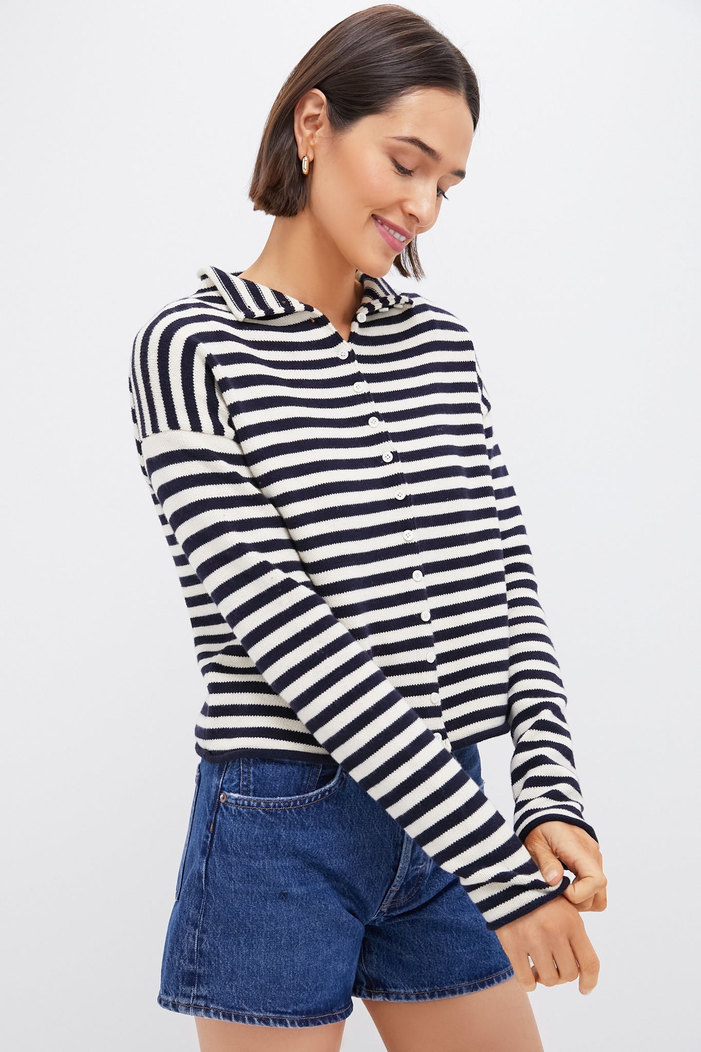 Classic and ultra-chic, the Navy Ivory Taylor Cardigan deserves a place in any wardrobe. With thin pinstripes for a touch of timeless style, as well as a spread collar and dropped shoulders for a cozy and casual feel, you'll be wearing this everywhere from school drop-offs to meetings in the office to cute lunch dates. Pro tip: Style it over a tee and tie it around your shoulders if it's a bit warm or button it up for a snuggly vibe on chilly days.