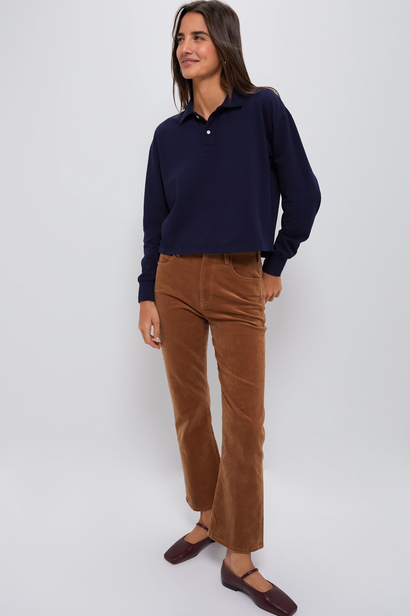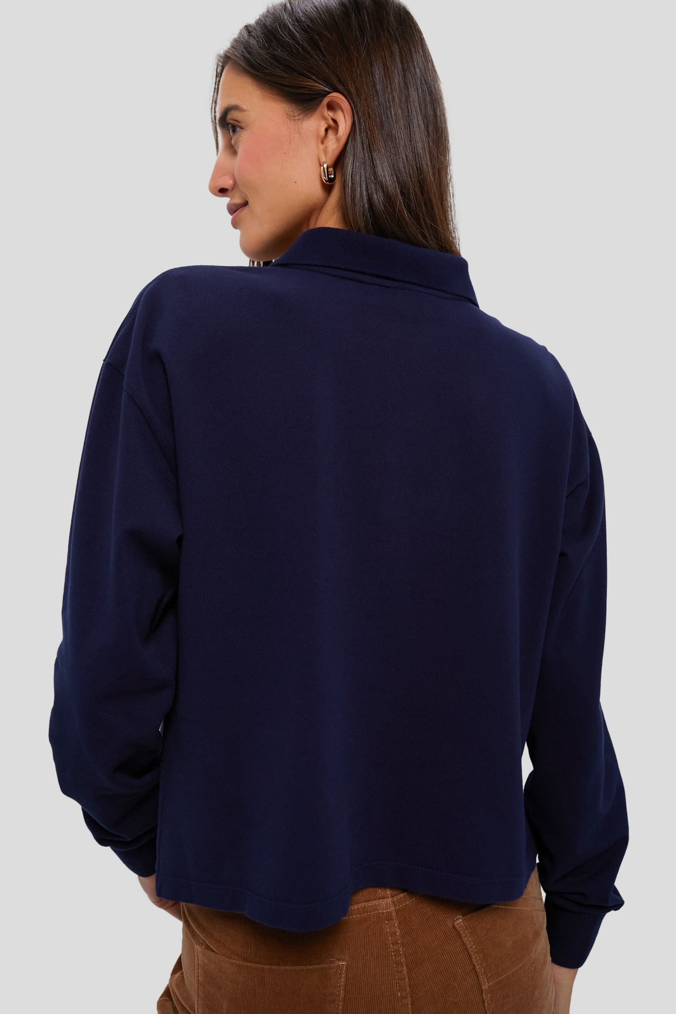 Navy Long Sleeve Pique Holmes Boyfriend Polo