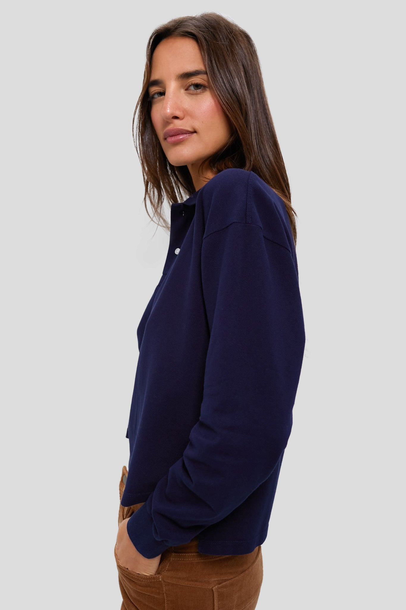 This boxy silhouette features a thick knit collar, a high-low hem that lands right at the pants line for easy tucking, and the ultra-soft pique fabric that we know and love. A fresh update to your classic polo, with the same versatility, we are pairing this with anything and everything in our closet.