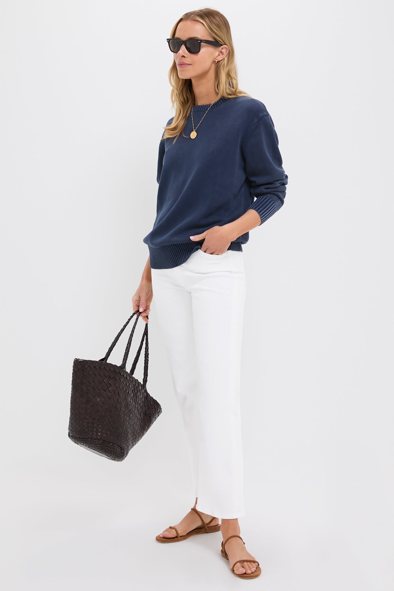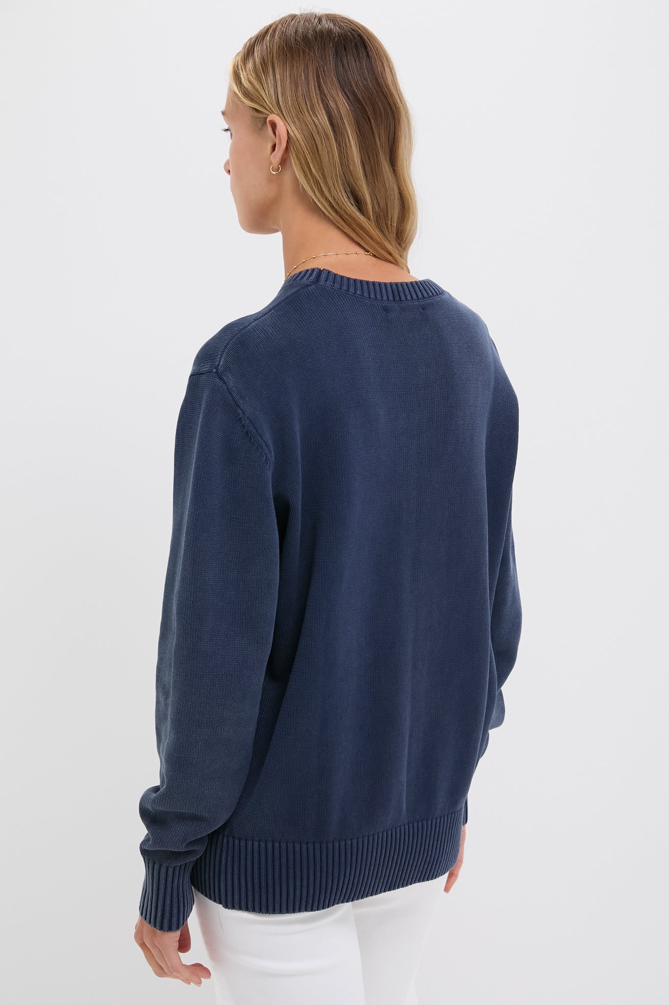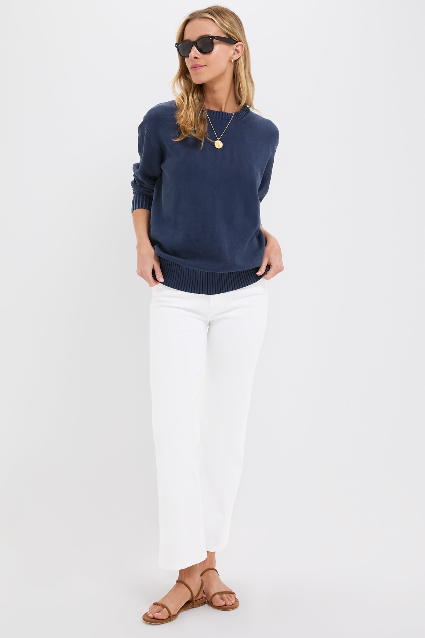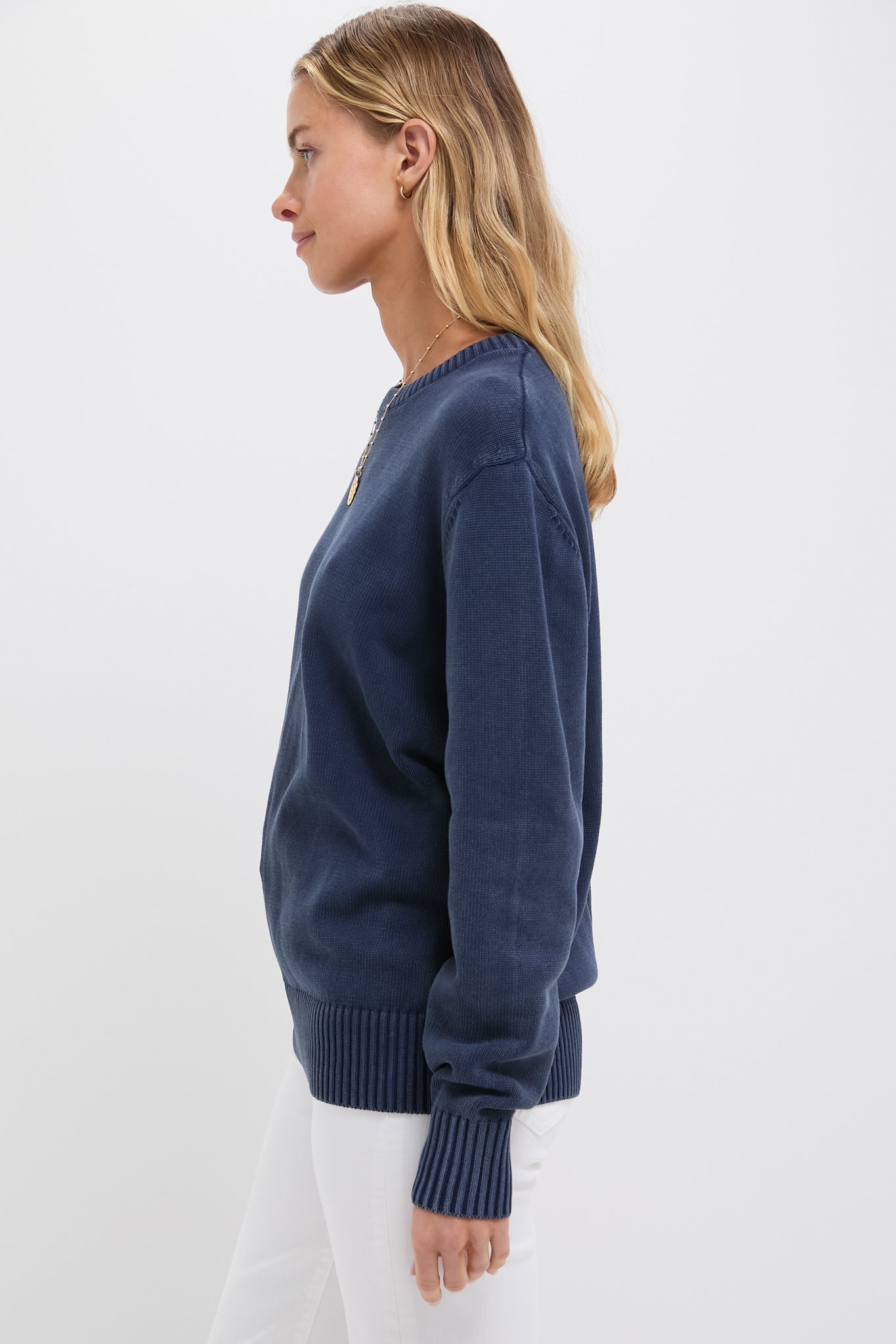Navy Stone Washed Cotton Anne Crewneck Sweater