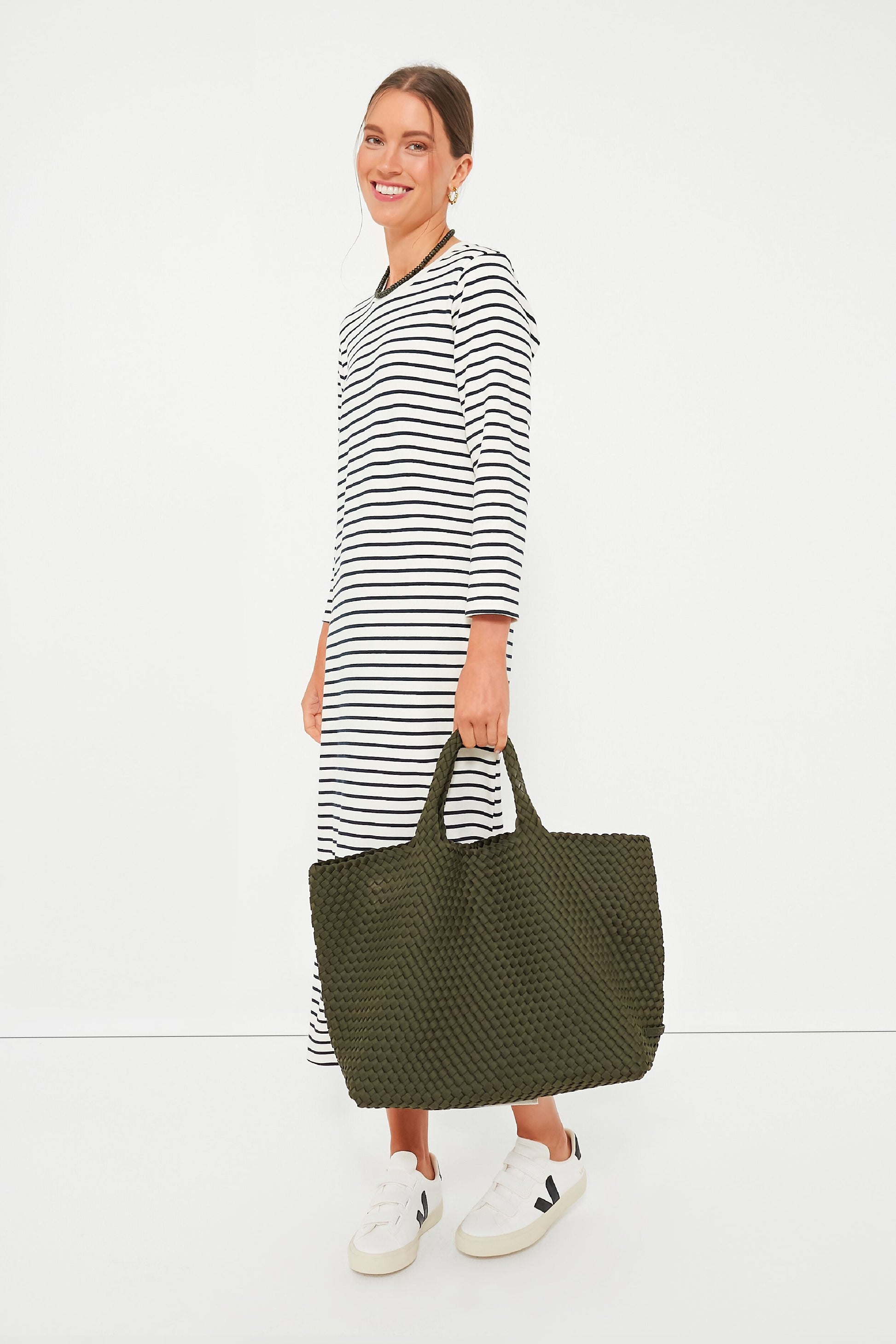 There should be no question why we love a t-shirt dress. Easy and comfortable yet put-together, the Navy Stripe Gio Dress features long sleeves and a crew neckline tied together with a maxi length and side slits for optimal movement and comfort. From day to night, this dress pairs seamlessly with everything from flats to sneakers.