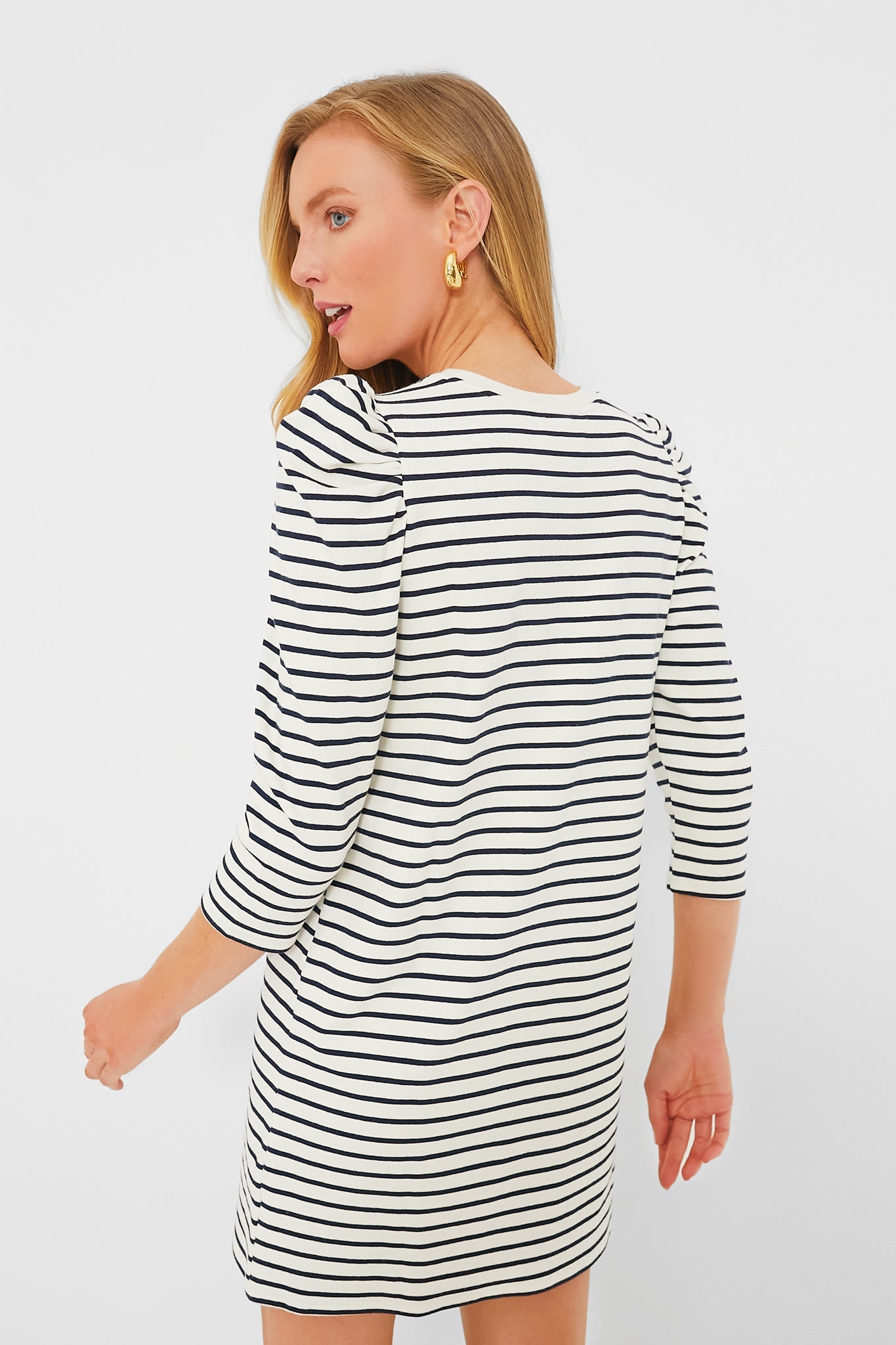 There should be no question why we love a t-shirt dress. Easy and comfortable yet put-together, the Navy Stripe Vesty Dress features quarter length puffed sleeves and a crew neckline tied together with a mini length. From day to night, this dress pairs seamlessly with everything from flats to sneakers.