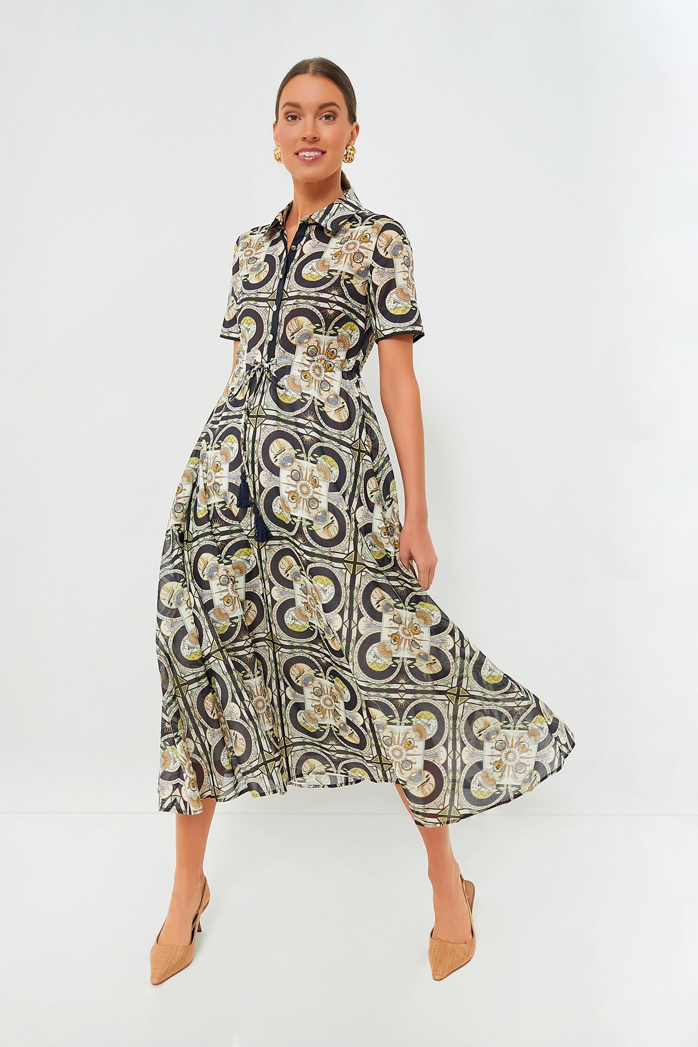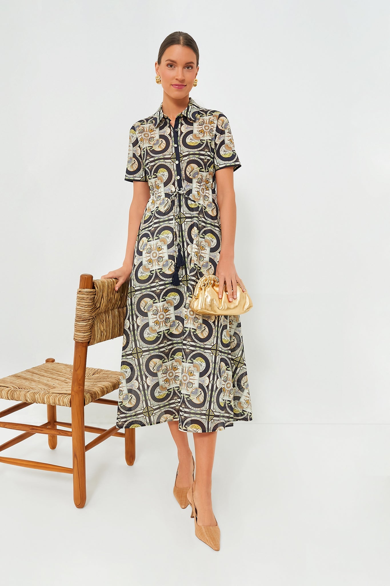Long, lightweight and versatile, the Navy Sundial Printed Shirtdress is checking all the boxes when it comes to elevated summer wear. Crafted in pure cotton, this midi features a drawstring waist that allows it to adjust the relaxed shape. Pair with raffia heels and a clutch for a casual outdoor wedding, or dress down with flat sandals and a crossbody for brunch with the girls. No matter how you style it, this chic number is guaranteed to gather compliments!