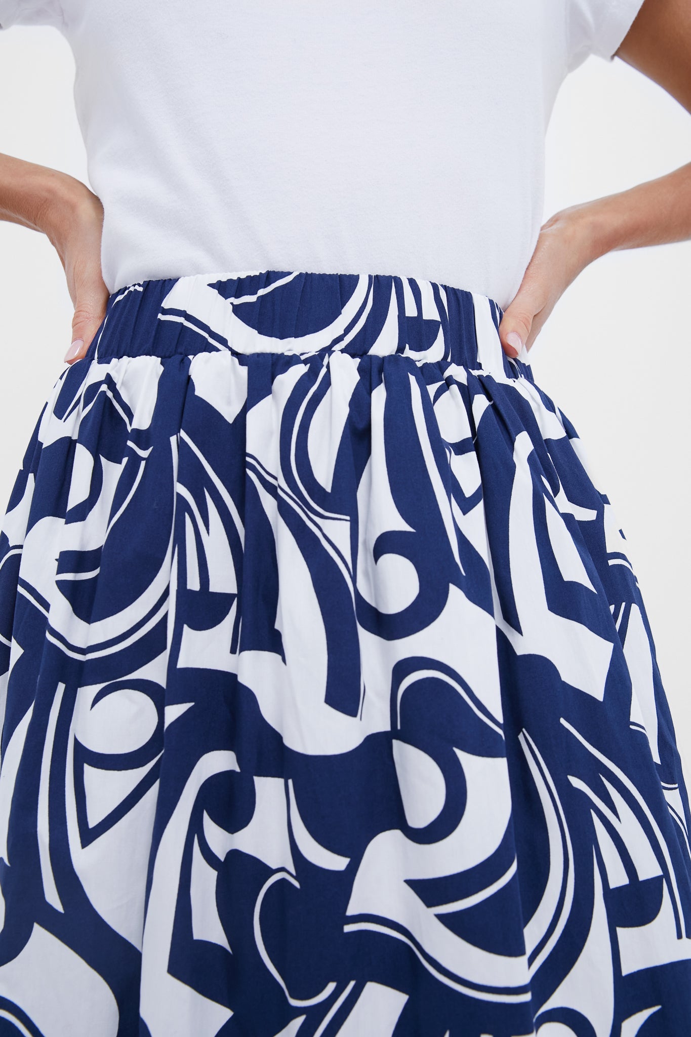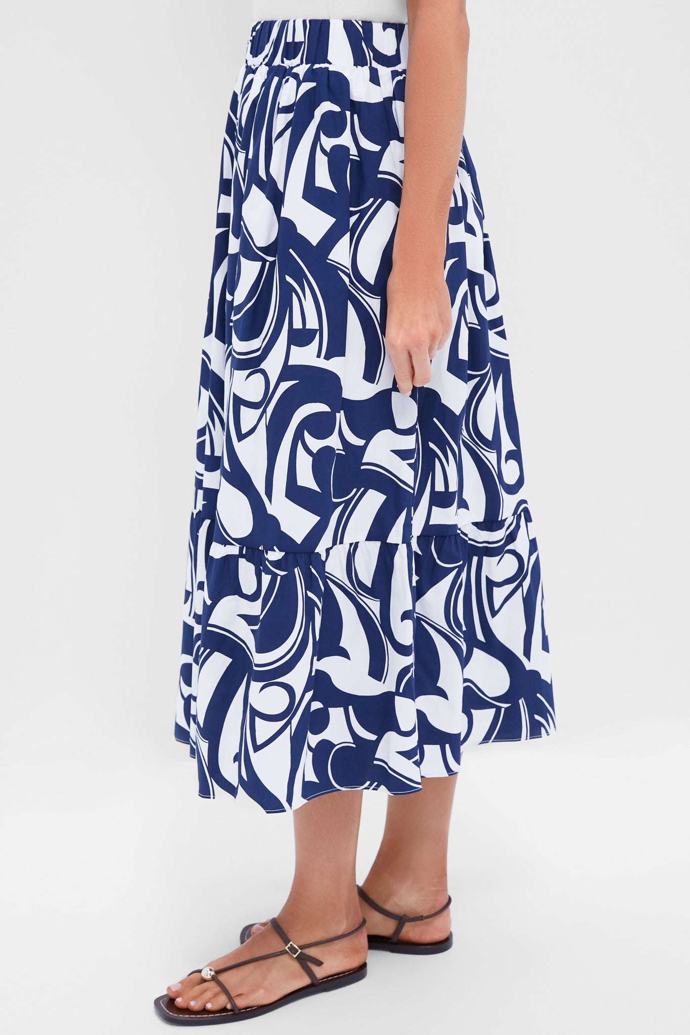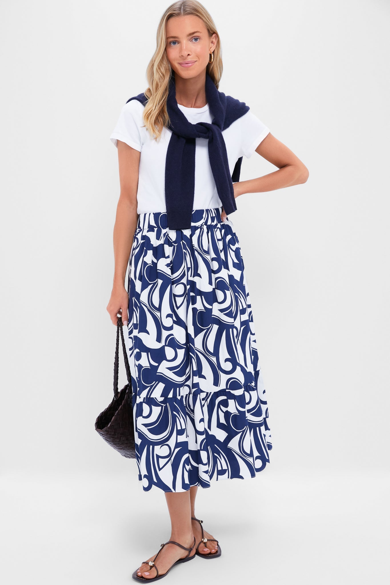 With an elastic waistband and tiered hem, the swirl print Willard skirt is an ideal option for warm days. Pair with a white tee or tank, sandals, and a tote, for effortless style.