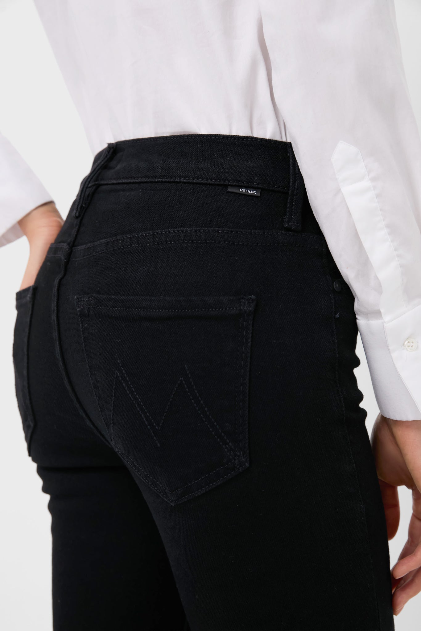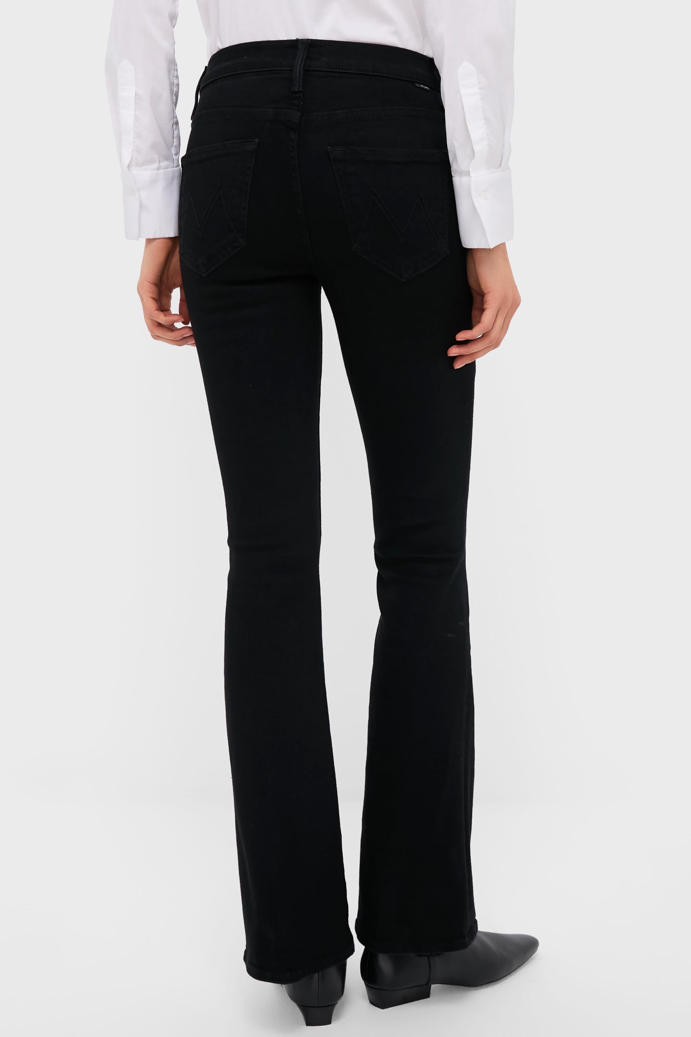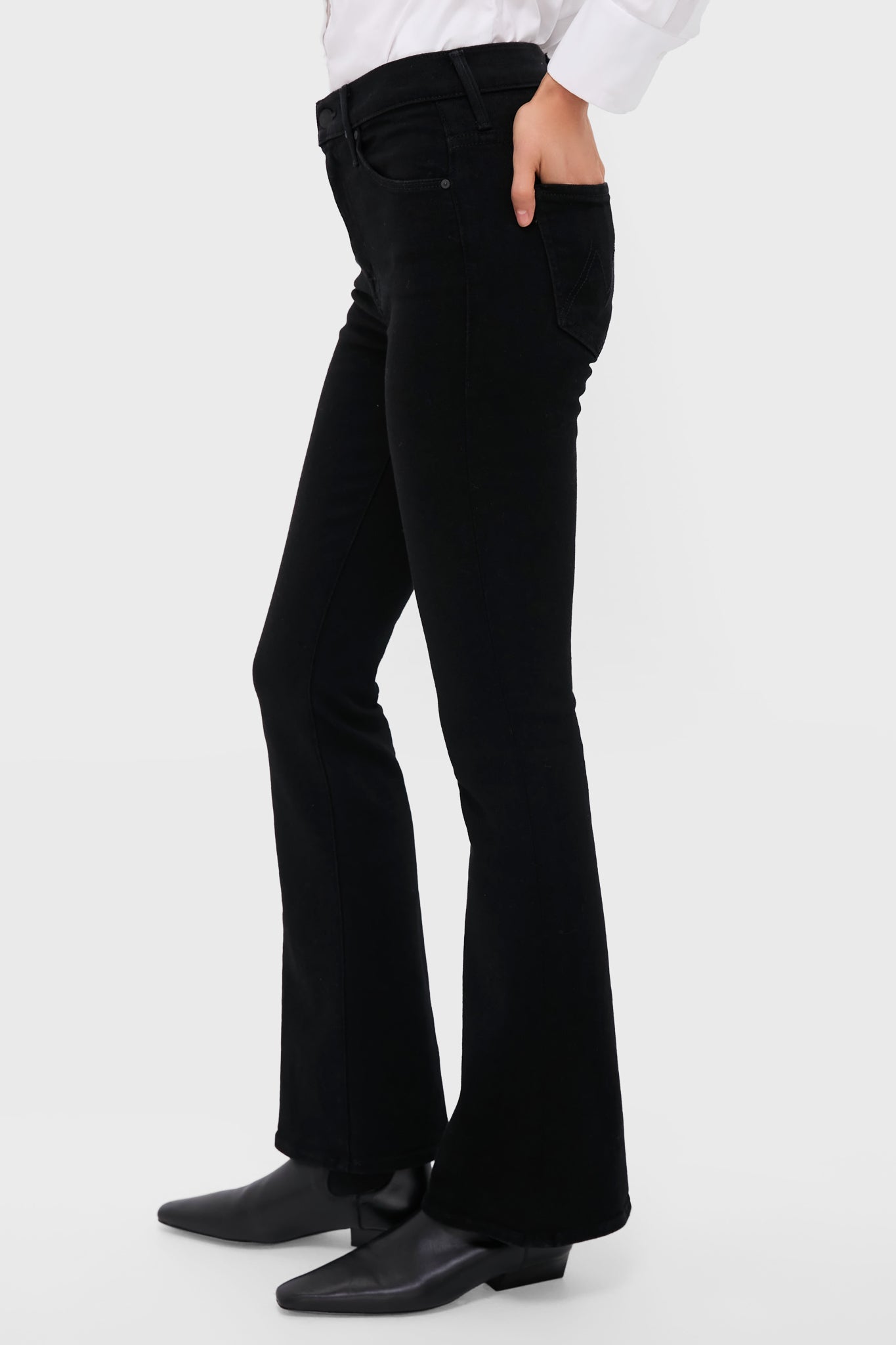 This cult-favorite flare jean has a mid rise, clean hem, and long inseam. Cut from denim with a touch of stretch, Nighty Night is a dark black with tonal hardware. Pair with a button down, blazer, and boots for elevated look.