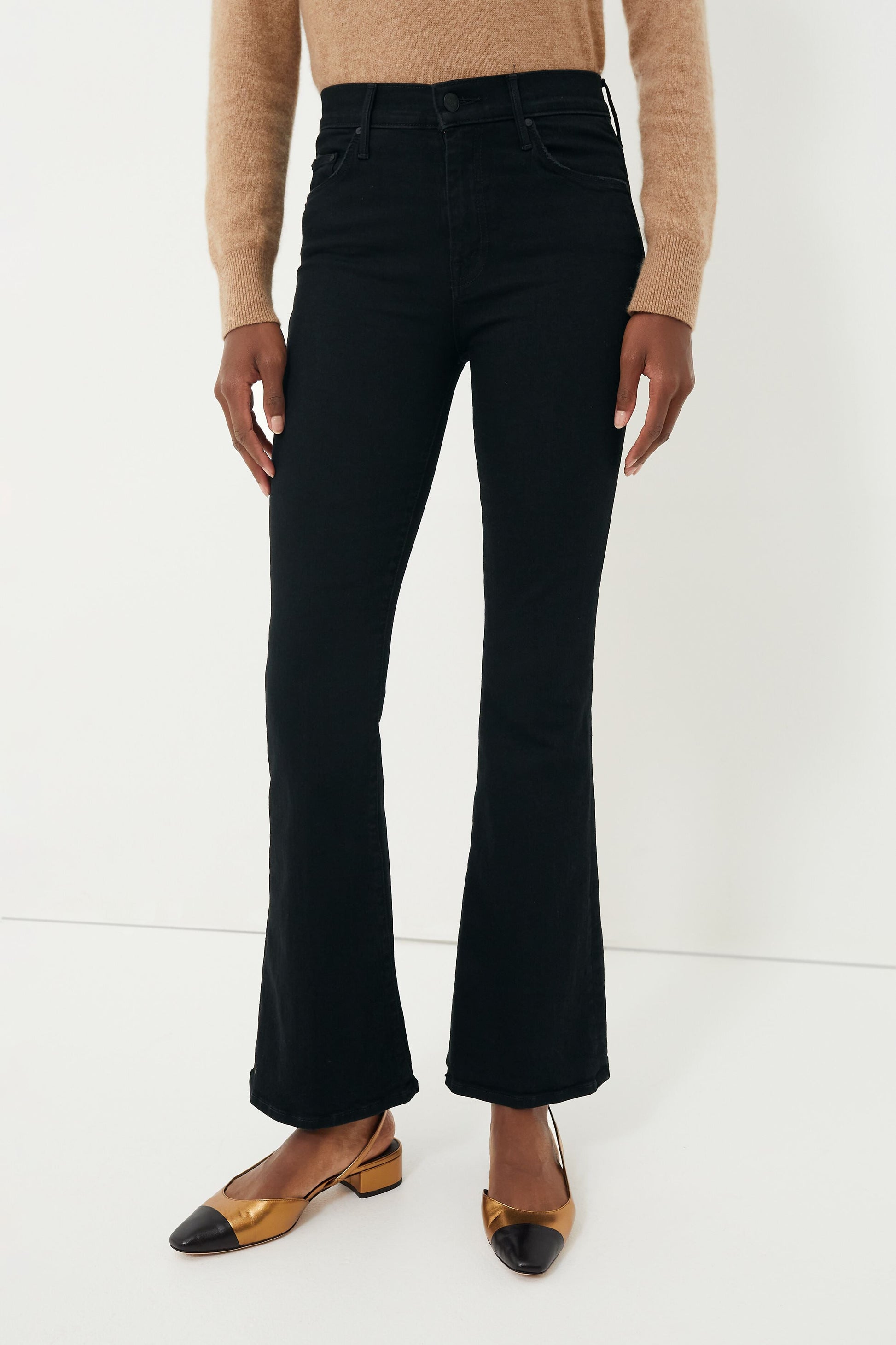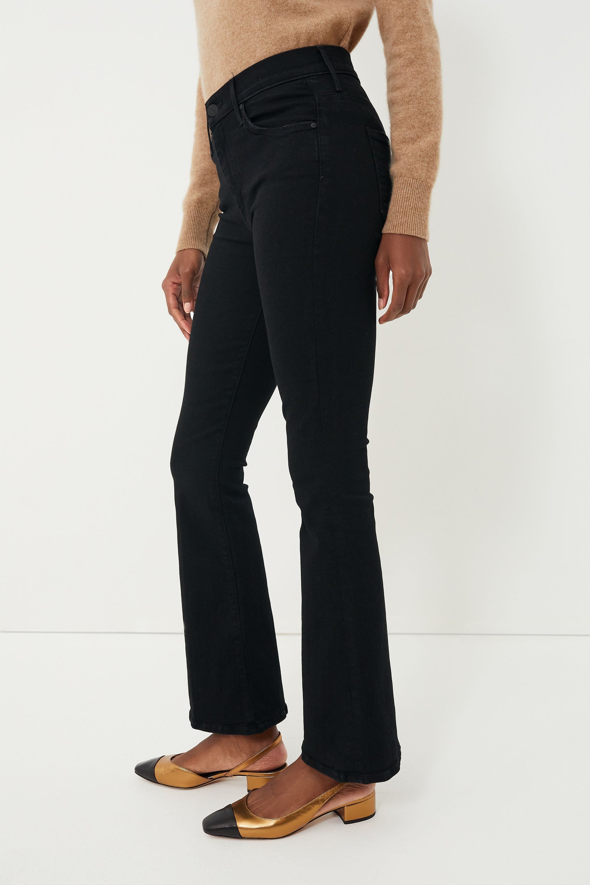 A MOTHER cult-favorite, the Not Guilty The Weekender is a mid rise pant featuring a 31-inch inseam and a bit of flare. Crafted from soft stretch denim in a dark black wash, this classic will instantly become your go-to jean. Pair it with sneakers for a day of adventures and swap for heels when you want an elevated look that's not too over the top.