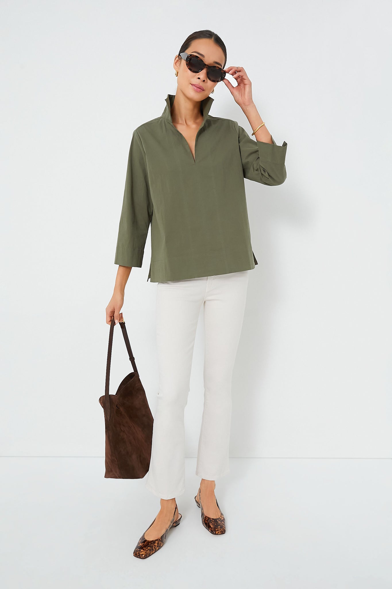 Olive Green Margot Stand Collar Blouse
