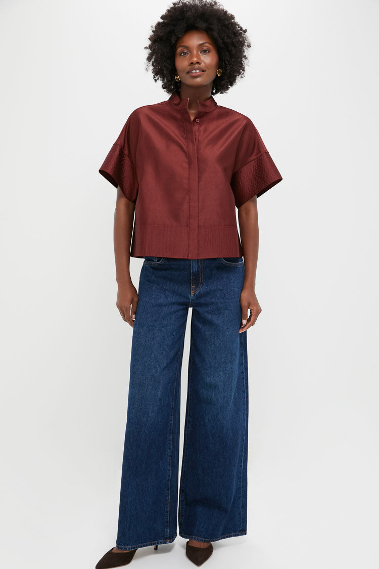 Oxblood Dupioni Trapunto Stitch Sofia Shirt