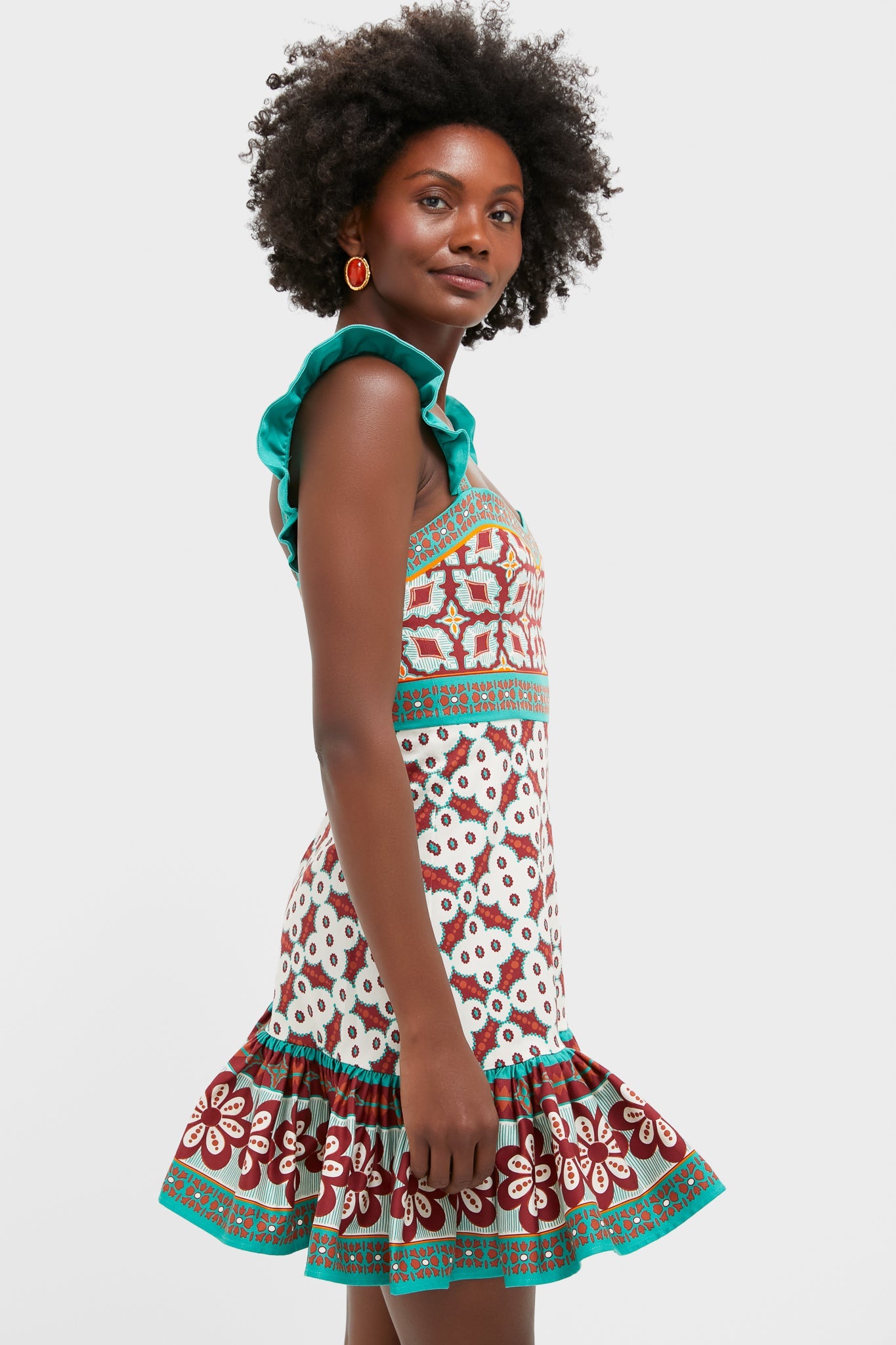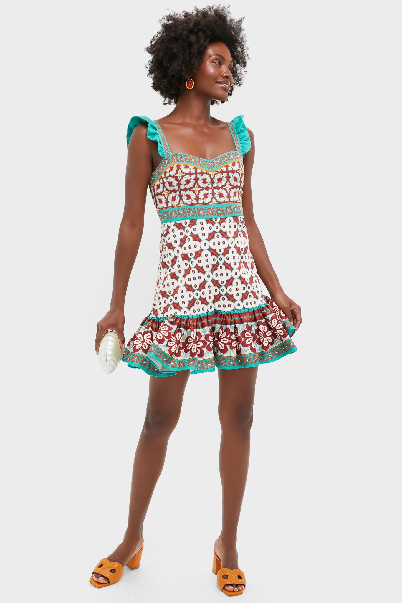 The Gingerbread Dress, this beauty was built for warm-weather celebrations. With a romantic ruche above the knee and along the straps that criss-cross across the back, just add heels, a clutch, and colorful earrings for a picture perfect look.
