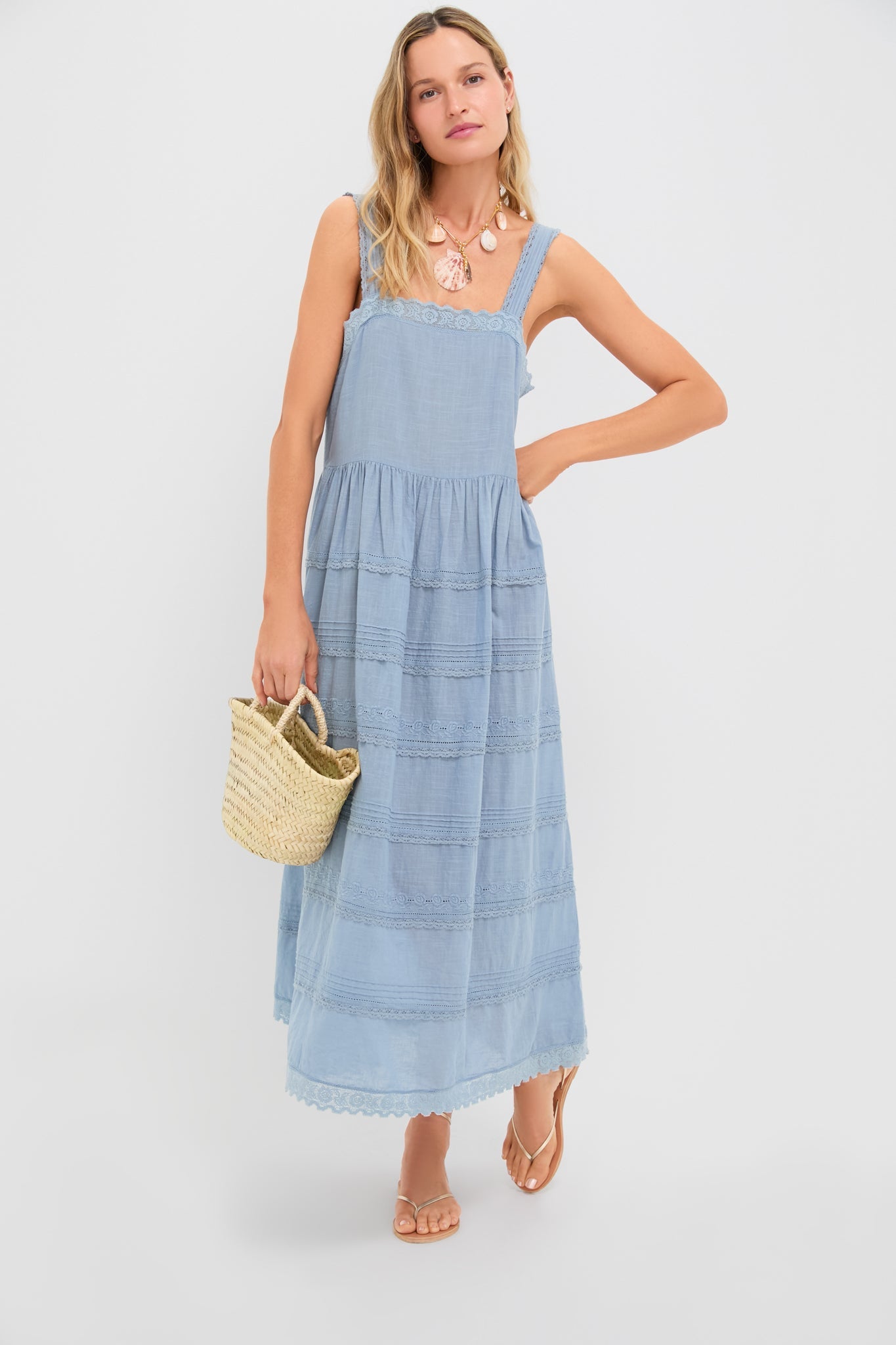 The Reverie Dress in pale blue is pure summer romance—with its lightweight fabric, delicate lace trim, and floaty tiered skirt, it’s the kind of dress you’ll reach for on repeat. The wide straps and relaxed fit make it perfect for sun-drenched days, whether you’re wandering markets or lounging seaside.