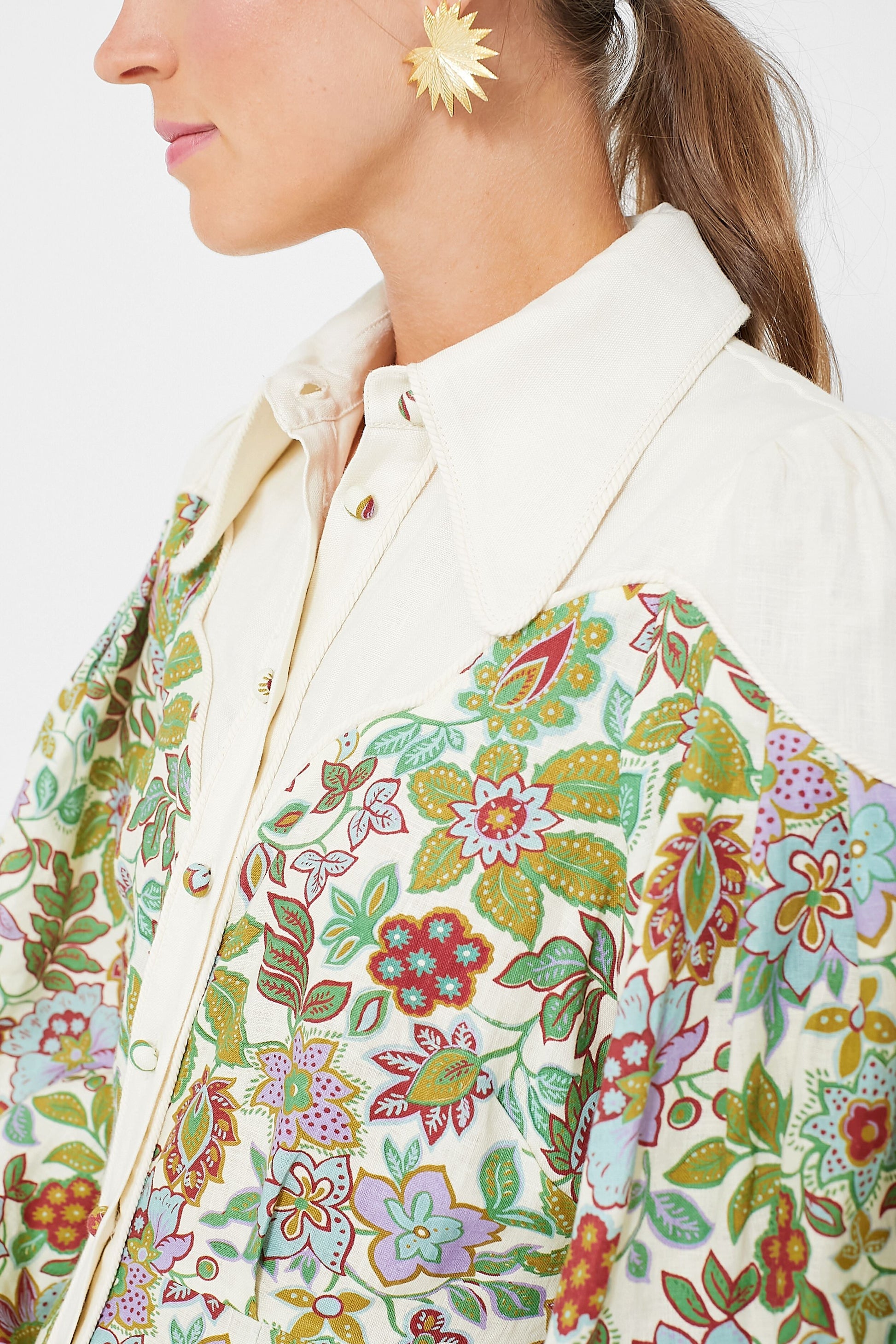 - Cord edge detailing at yoke and placket
