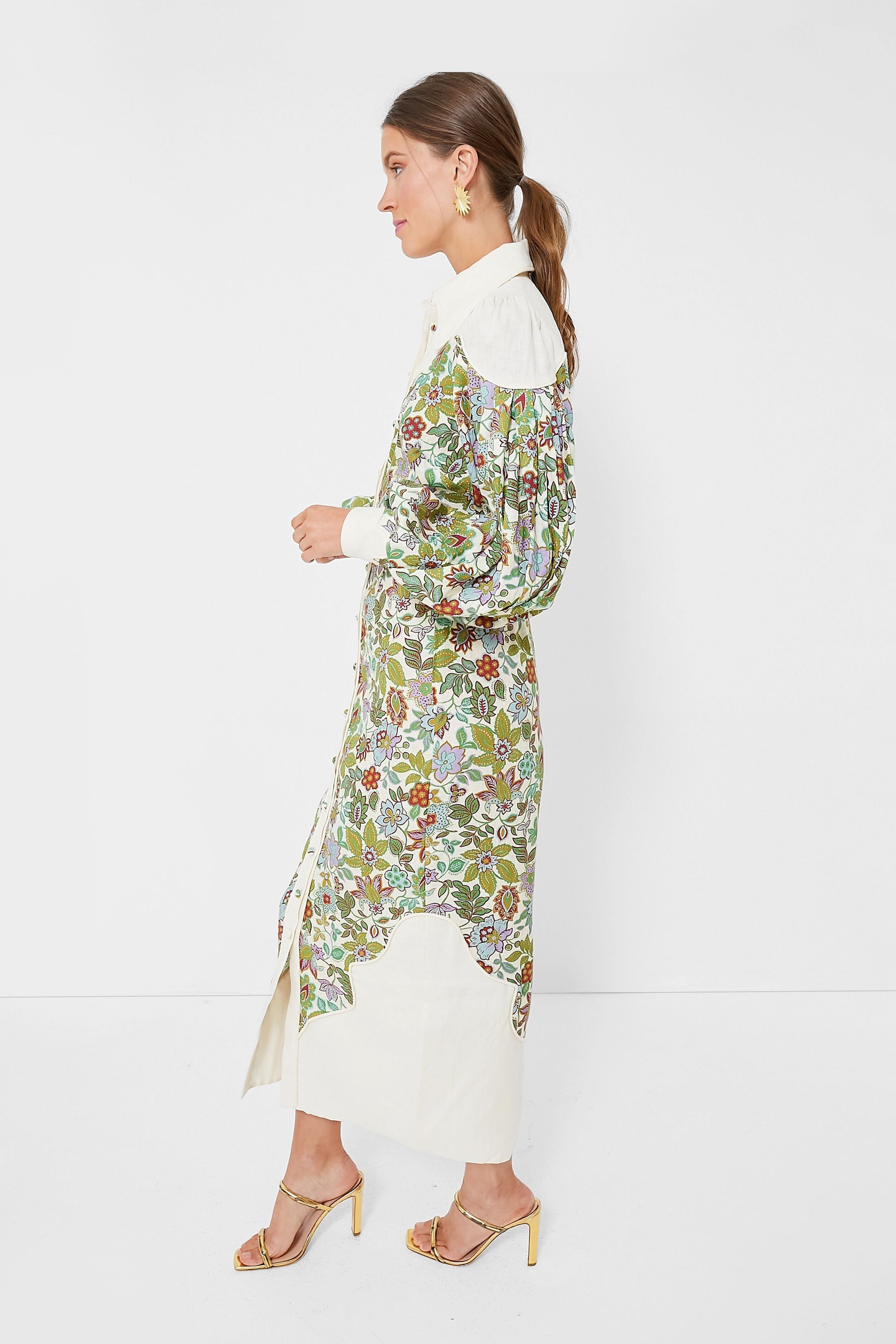With a modern, cool-girl take on Western style, we are loving the vibes of the Pearl Isabella Panel Dress. We could go on and on about the details here, but the biggest highlights are the elongated point collar, covered buttons at the cord-edged placket, scalloped paneling, and a flattering fitted waist that falls into a straight skirt. So good you'll want to wear it in every season, this midi can be paired with sandals, sneakers, heels, boots, you name it!