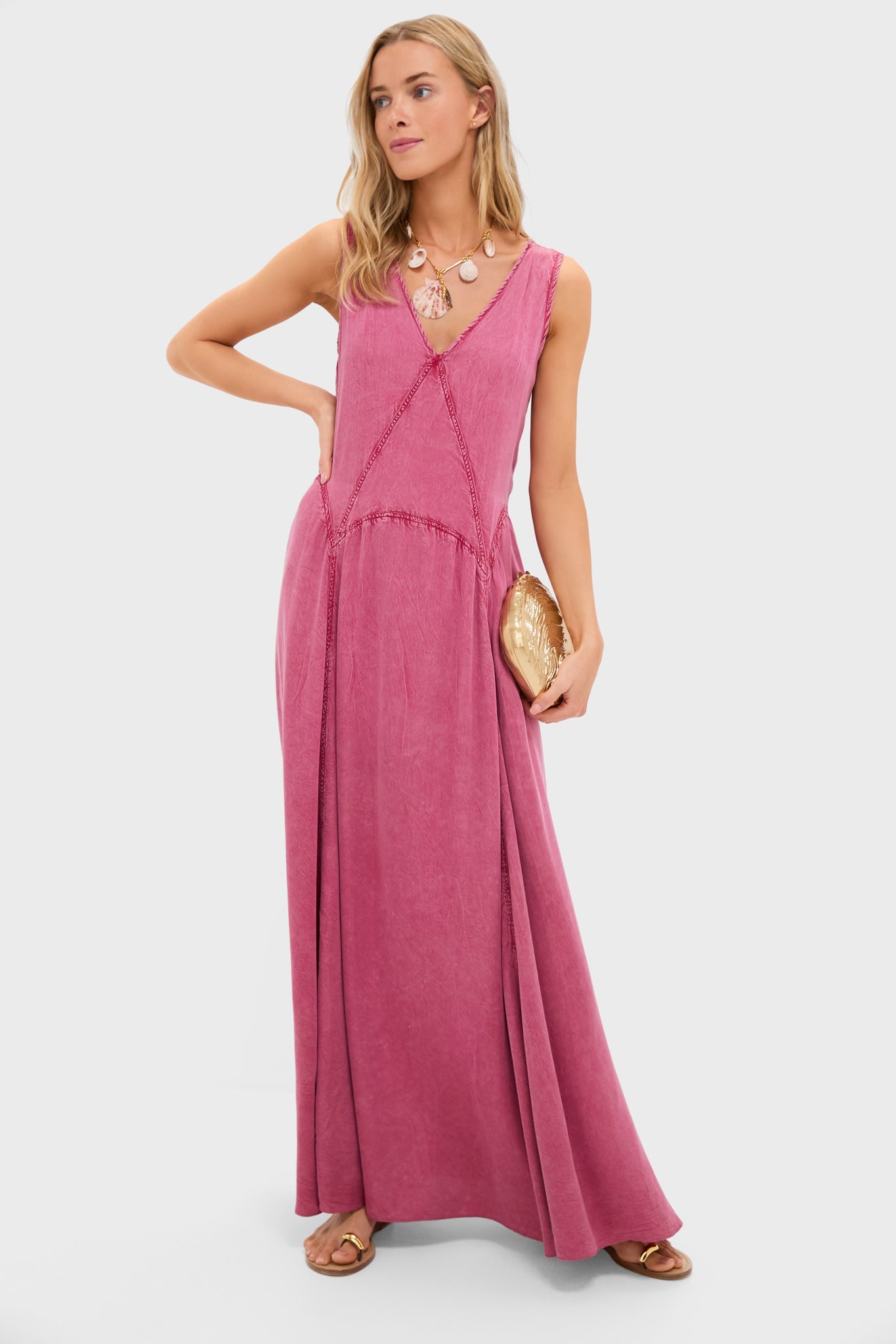 Cut from a sun-washed flowy fabric, persimmon hue, the Persimmon Rosemary Maxi Dress is all about effortless charm—with soft pleats, raw-edge detailing, and a beautifully flowy silhouette. Just add simple sandals, your favorite clutch, and let the dress do the talking.