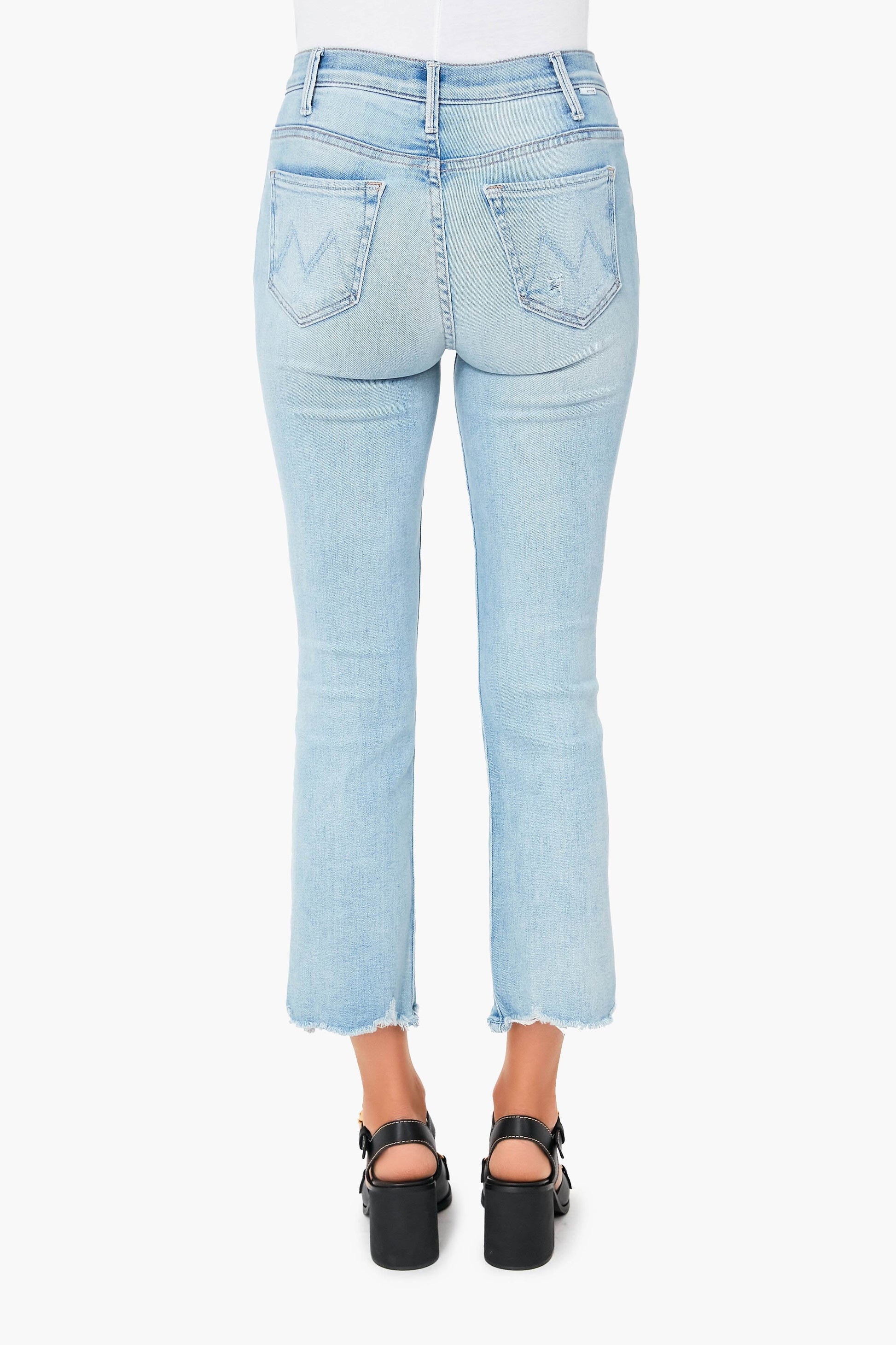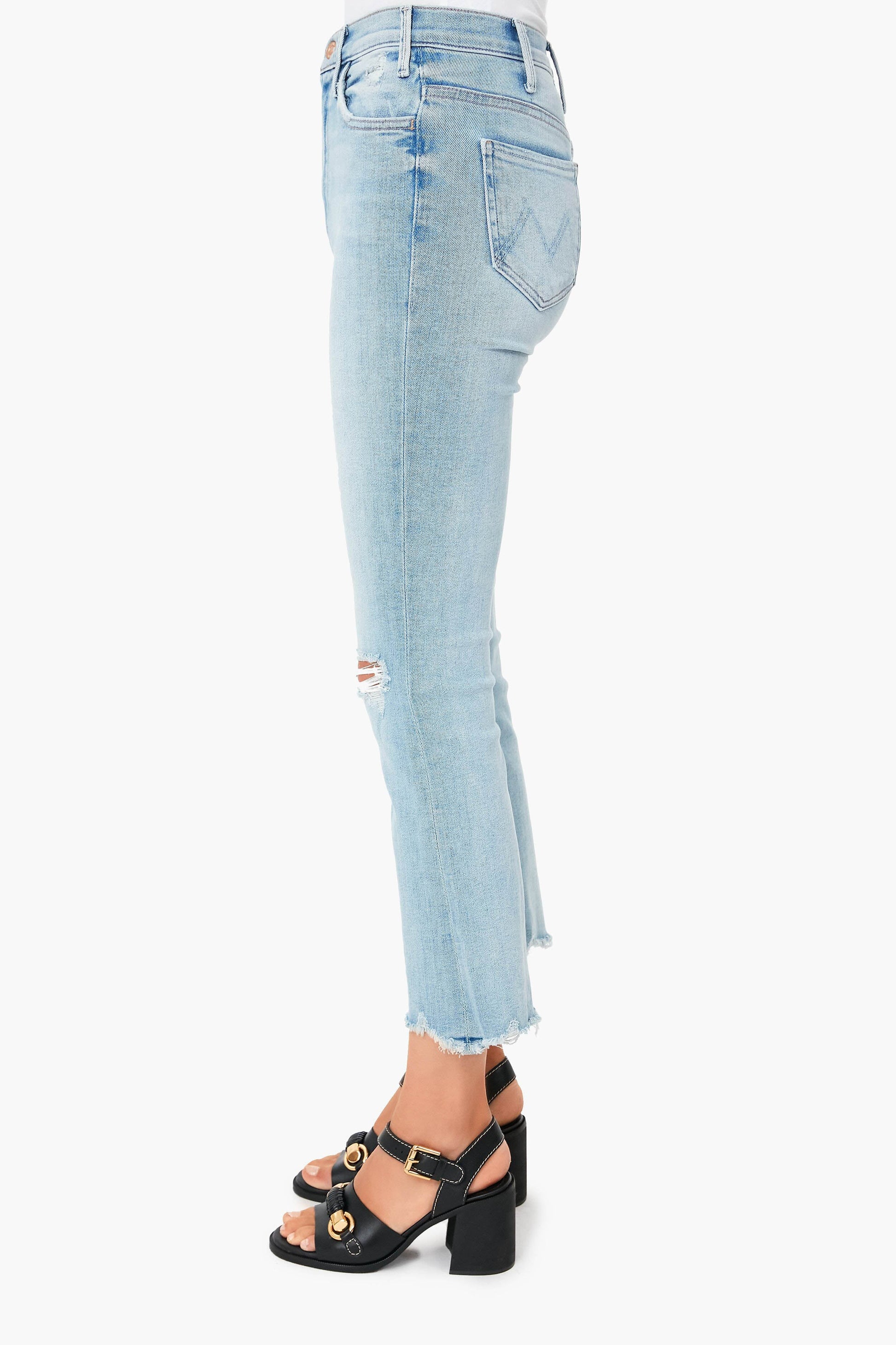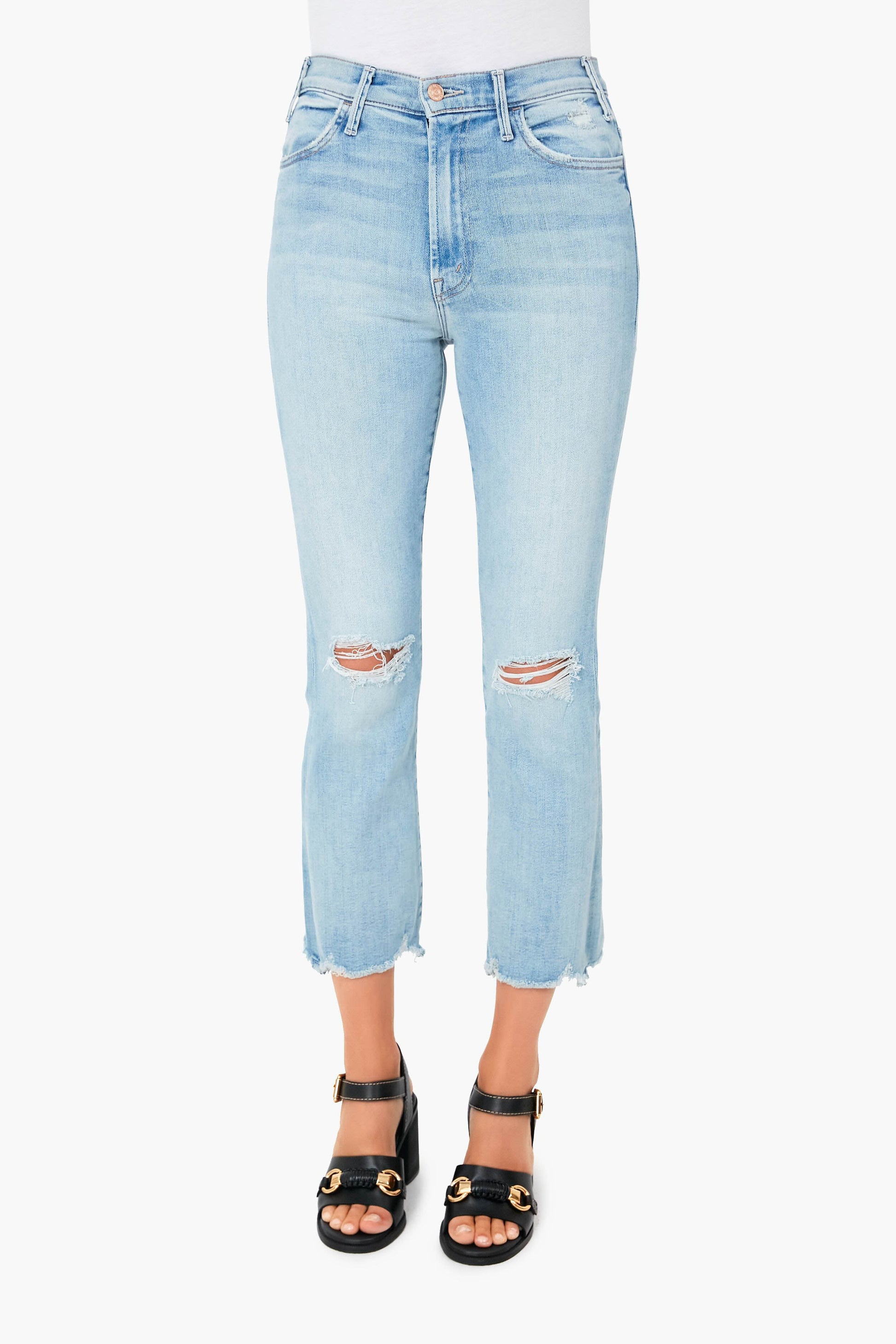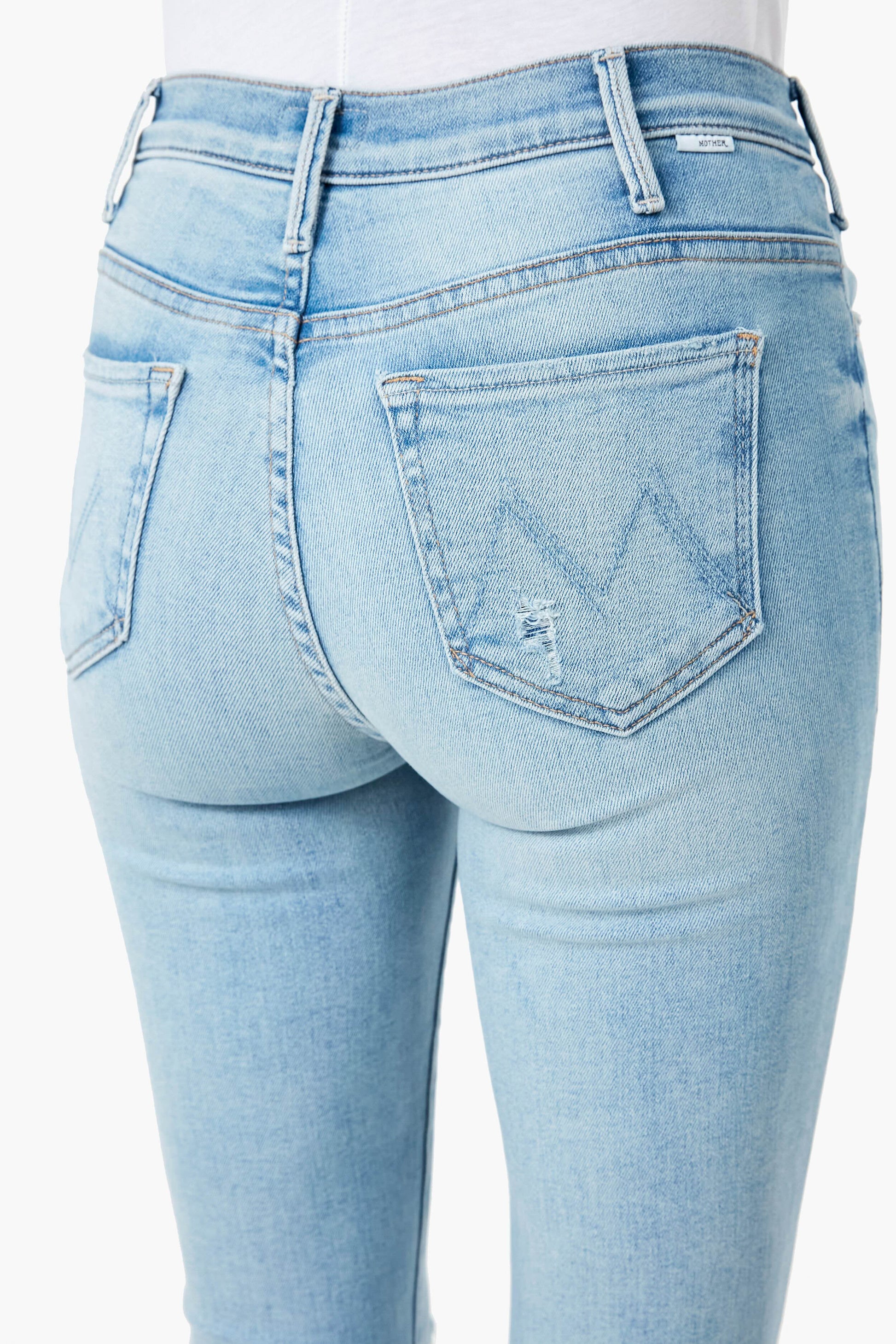 The Petal Plucker The Hustler features a high-rise flare with an ankle-length inseam and chewed hem. This jean is crafted from stretch denim in a light blue wash with fading, whiskering, and distressing at the knees. Pair it with sandals for warmer days and a chunky sweater with booties as the temperature cools off.