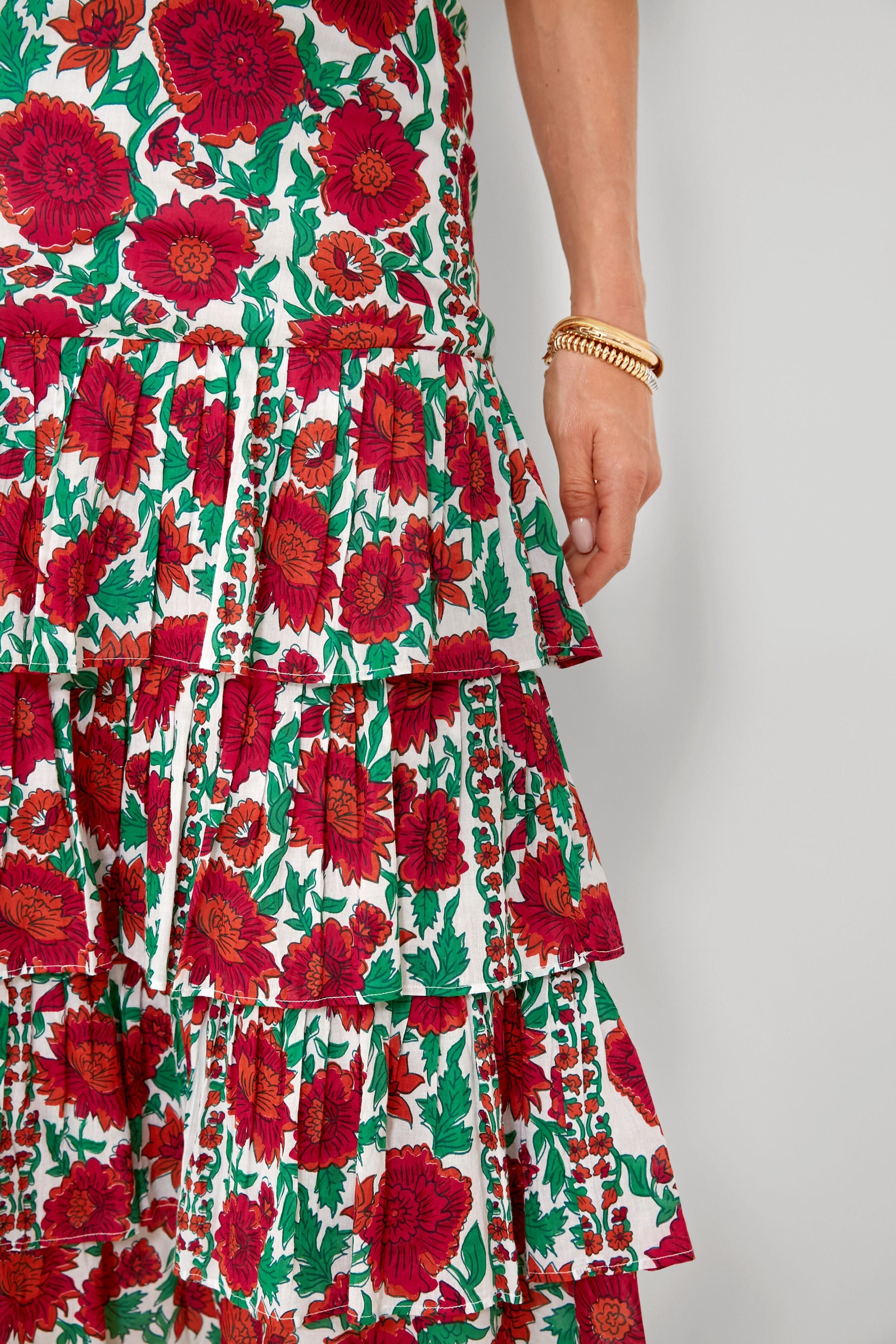 Just in– an easy yet dramatic summer skirt that goes anywhere, with anything, meet the Pink Dijon Honduras Maxi. Designed with a high rise silhouette and cascading pleated ruffles that are just begging to be twirled, this romantic style is ready to make an entrance. From afternoon happy hours to dinner out followed by dancing, we love the striking effect of this stunner.
