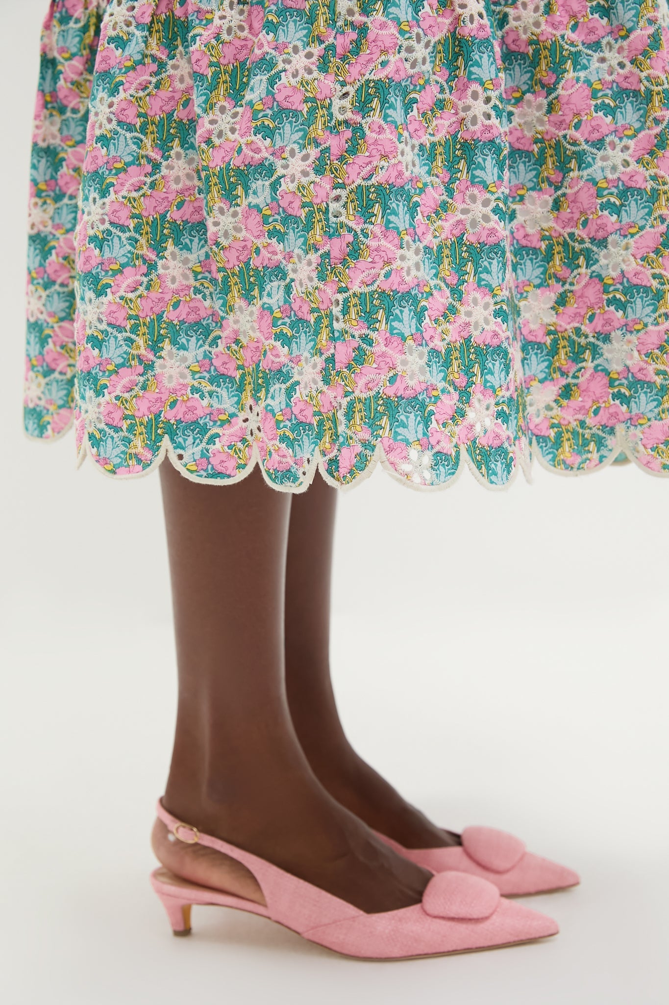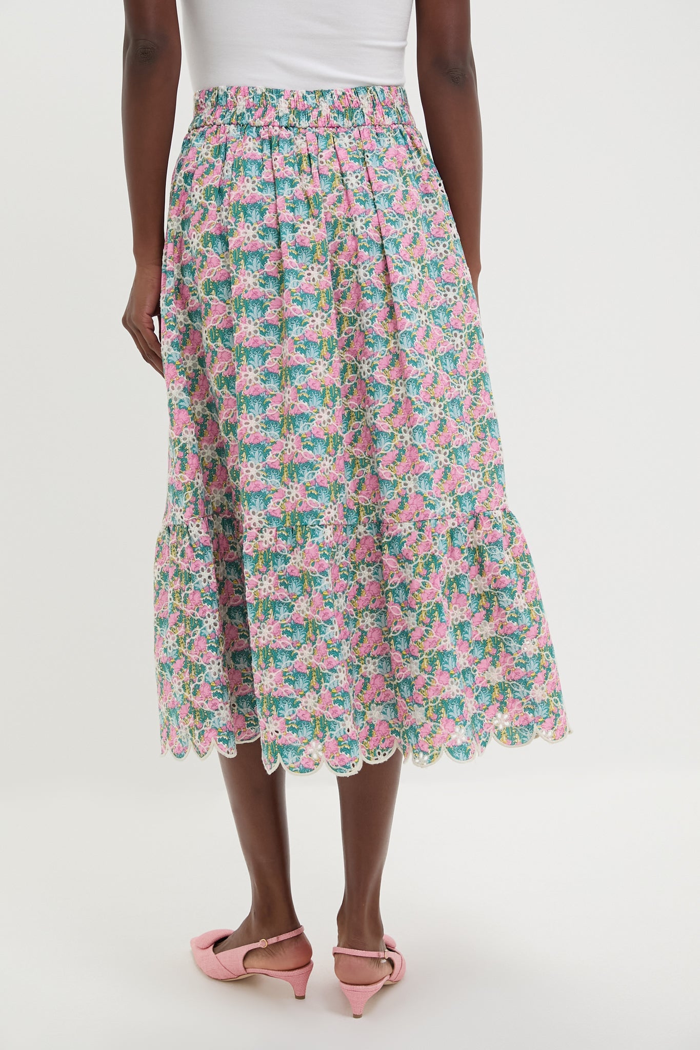 Pink Multi Floral Scalloped Eyelet Carter Midi Skirt