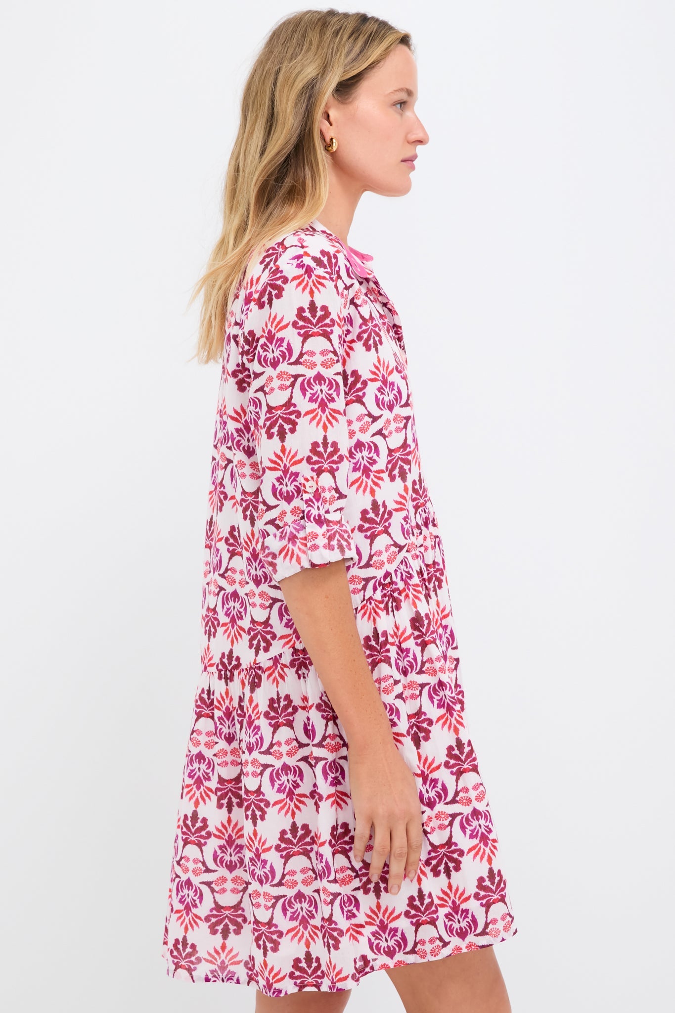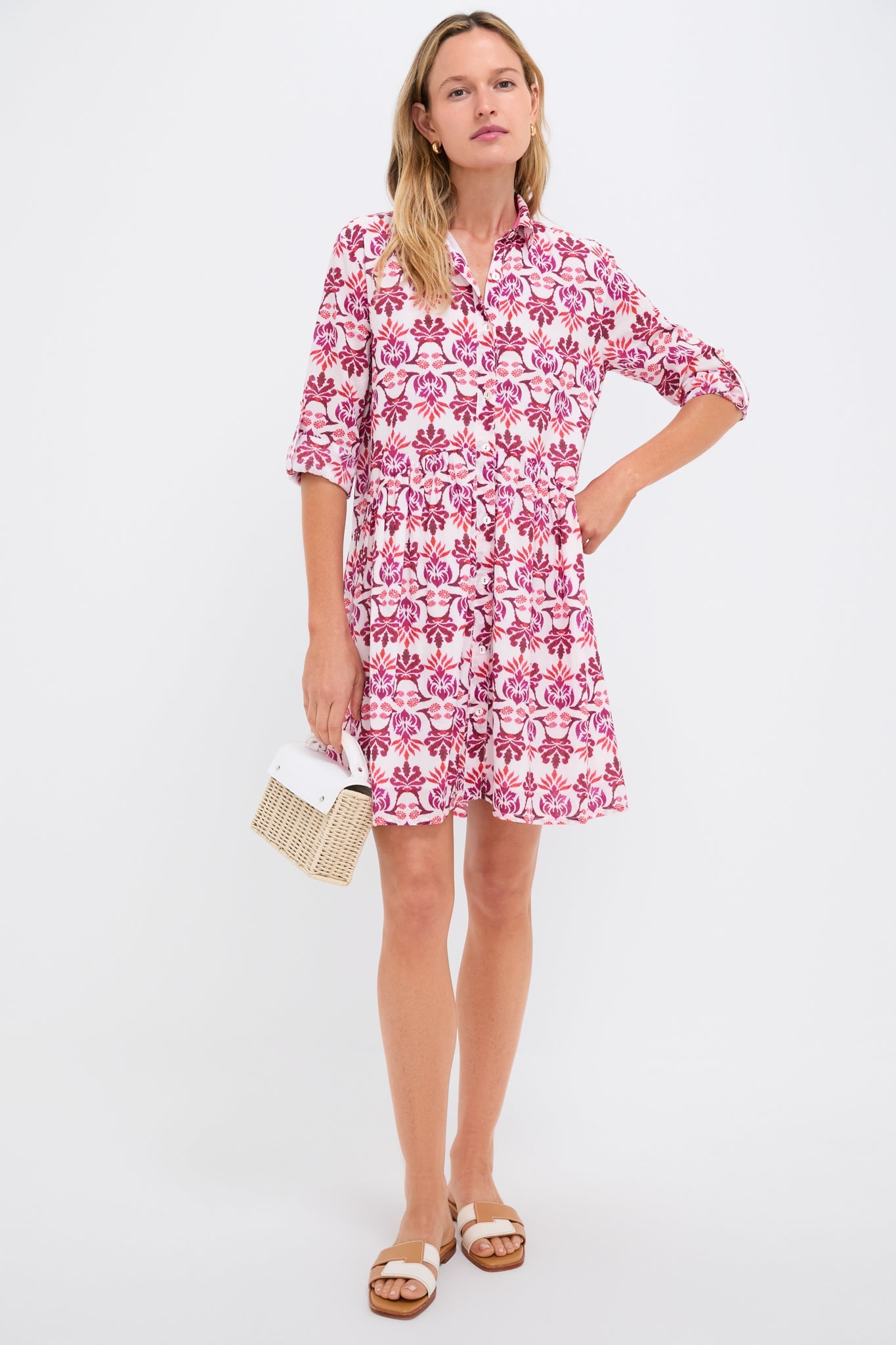 Handcrafted from 100% cotton, this dress features a spread collar, button placket, and drop waist detail. Its flirty silhouette and intricate style create a sense of whimsy, perfect for summer adventures with sandals and a tote.