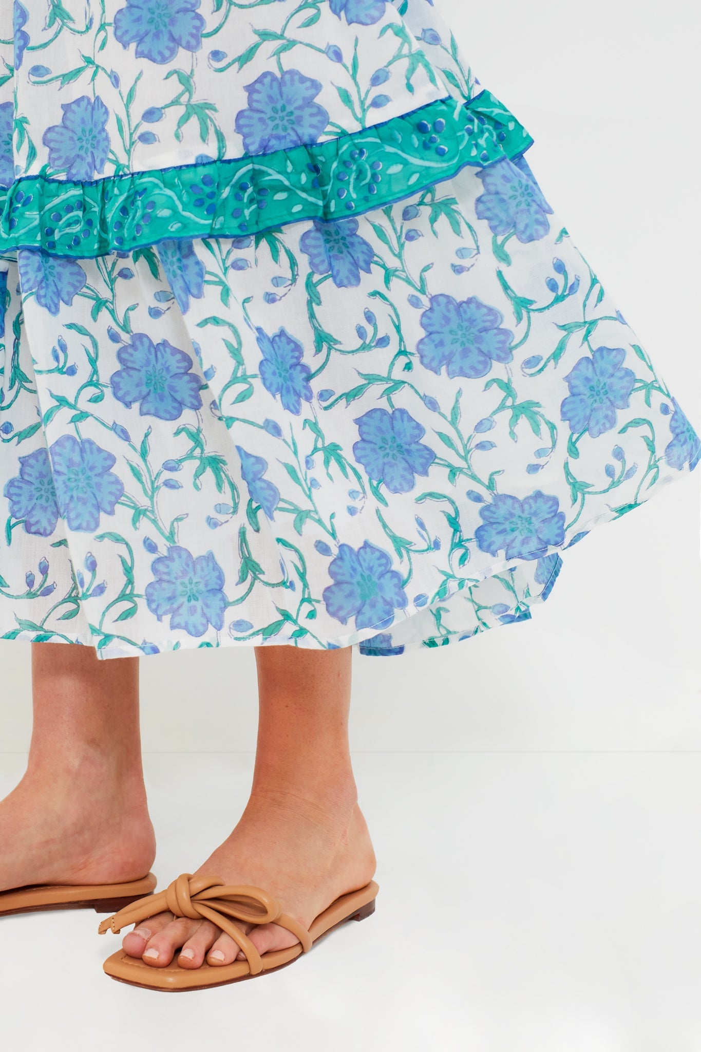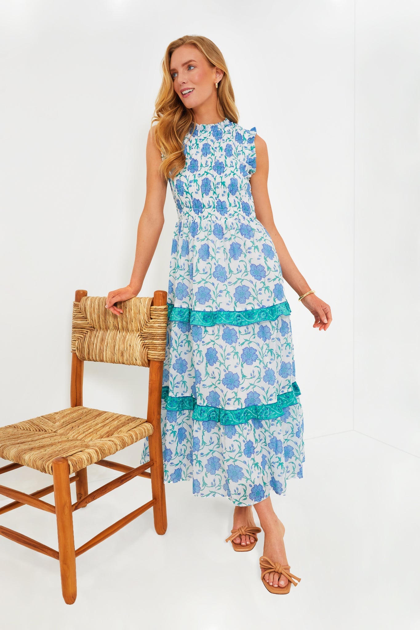 Made from lightweight cotton voile with a loose and breezy skirt, the Poppy Blue Sleeveless Dress is a masterclass in warm-weather dressing. The ruffled round neckline gives a special touch to this romantic maxi, while a smocked bodice and a contrast ruffle trim on skirt complete this timeless silhouette. Perfect for wearing to sunny celebrations this season, we love to pair this easy yet elegant style with espadrilles and statement earrings.