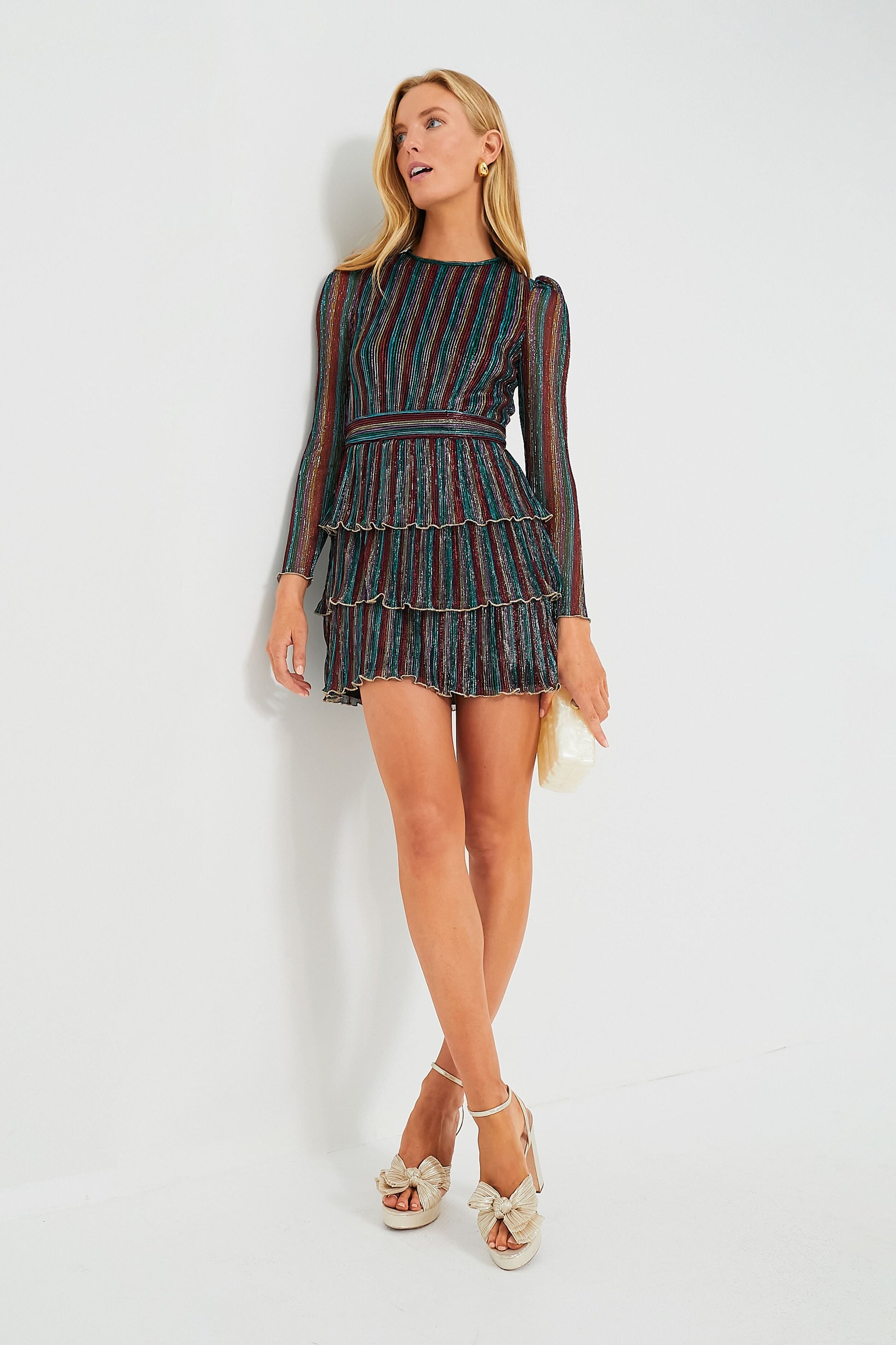 We are ready to party in the Zariah Dress! Beautifully crafted with rainbow striped pleating, this flirty mini is complete with puffed shoulders, a diamond cutout at the back, and a banded waist for a cinched, figure- flattering fit — but our favorite detail has to be that ruffle tiered skirt that delivers a swingy movement! Perfect for an evening event or a cocktail party, we are styling this piece with heels, glitzy earrings, and a handbag for a glamorous look.