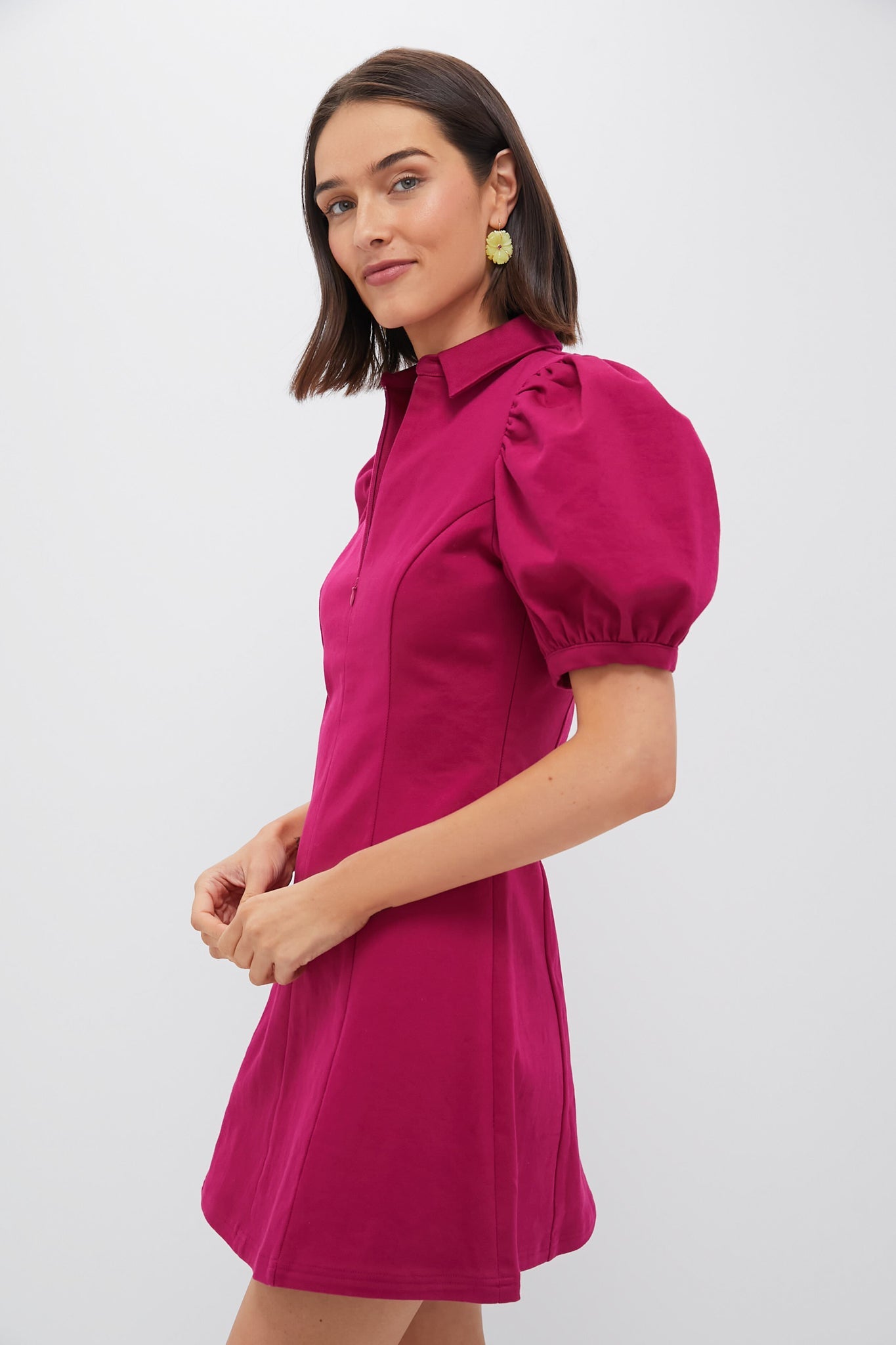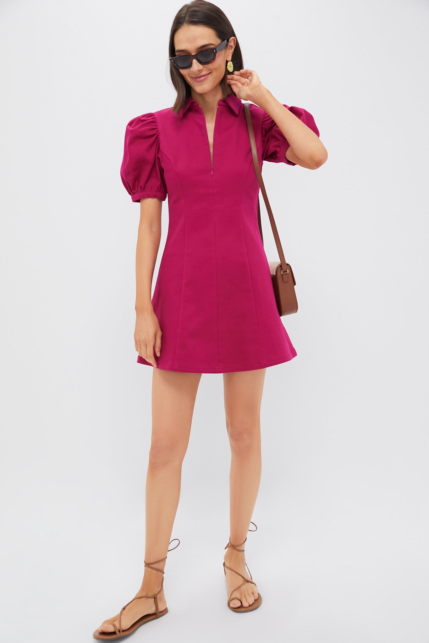 The Raspberry Front Zip Denim Dress is a flattering mini that can be styled a countless number of ways. Made from a stretch denim for a soft, mid-weight feel, this style includes short puff sleeves, a collared neckline, and a front zip closure. The seasonless A-line silhouette is sure to be a closet favorite- pair with cowgirl boots and a crossbody for game day, or with sneakers and gold hoops for lunch with friends.