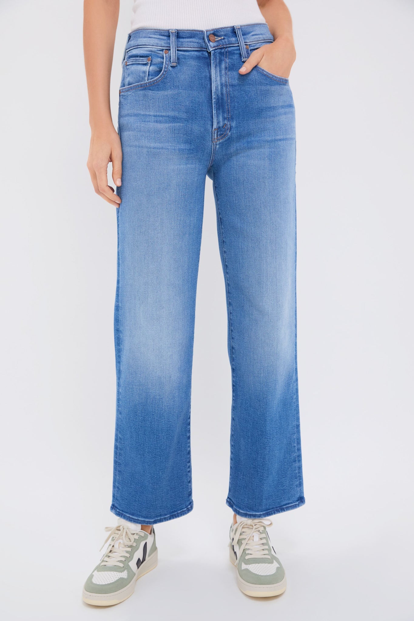 The Read Between the Lines The Rambler Zip Flood features a high waist, straight leg, and clean hem. Crafted from soft stretch denim, this medium blue wash with subtle fading this classic fit is perfect to wear with sweaters, casual tees and flats or sneakers!