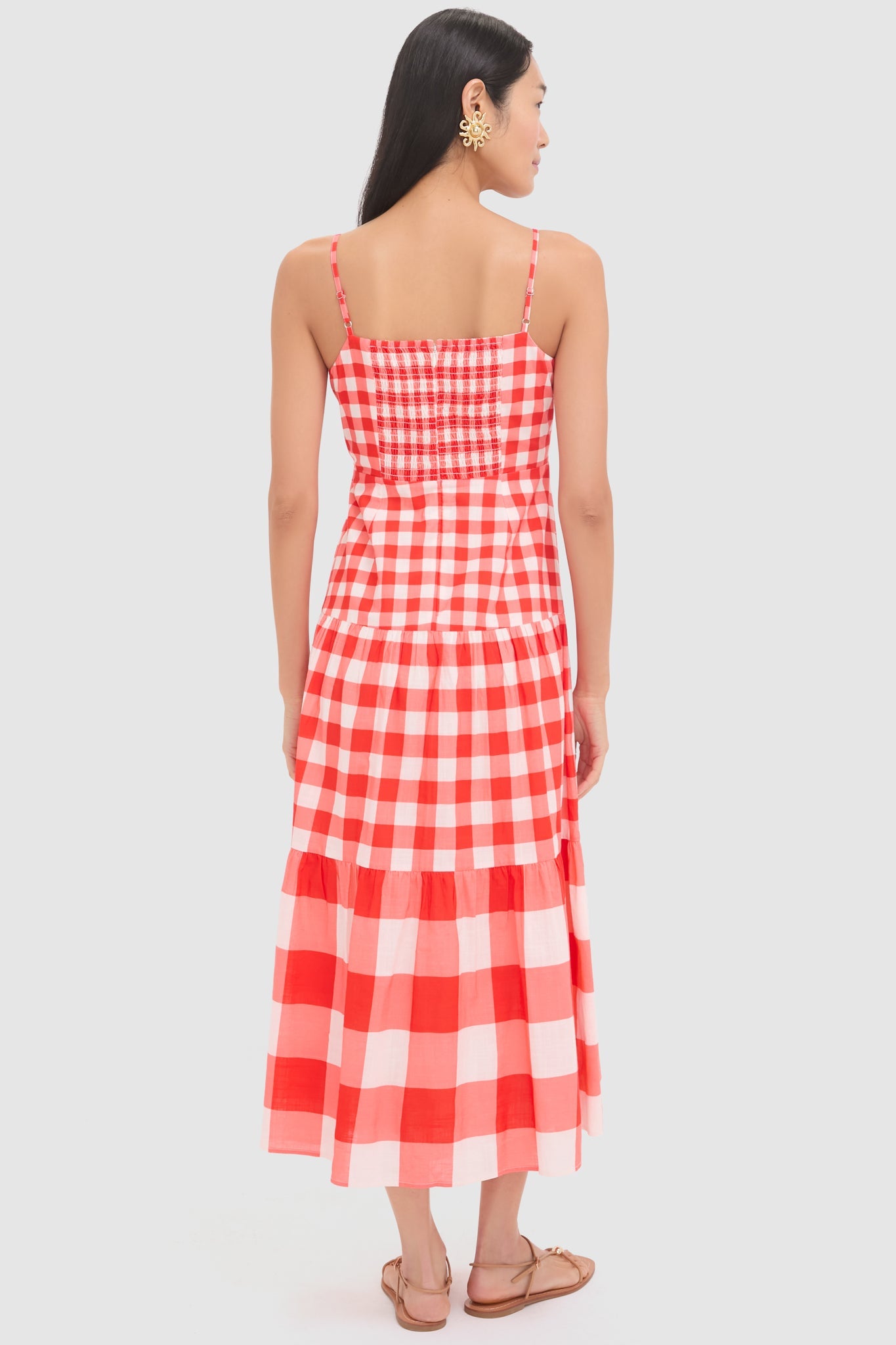 The Taylor Midi Dress is picnic-ready perfection with its red gingham print, delicate shell embroidery, and easy smocked back. Adjustable thin straps keep things comfy, while the breezy midi length makes it ideal for everything from farmers' markets to beachside dinners. Just add sandals and sun-kissed shoulders.