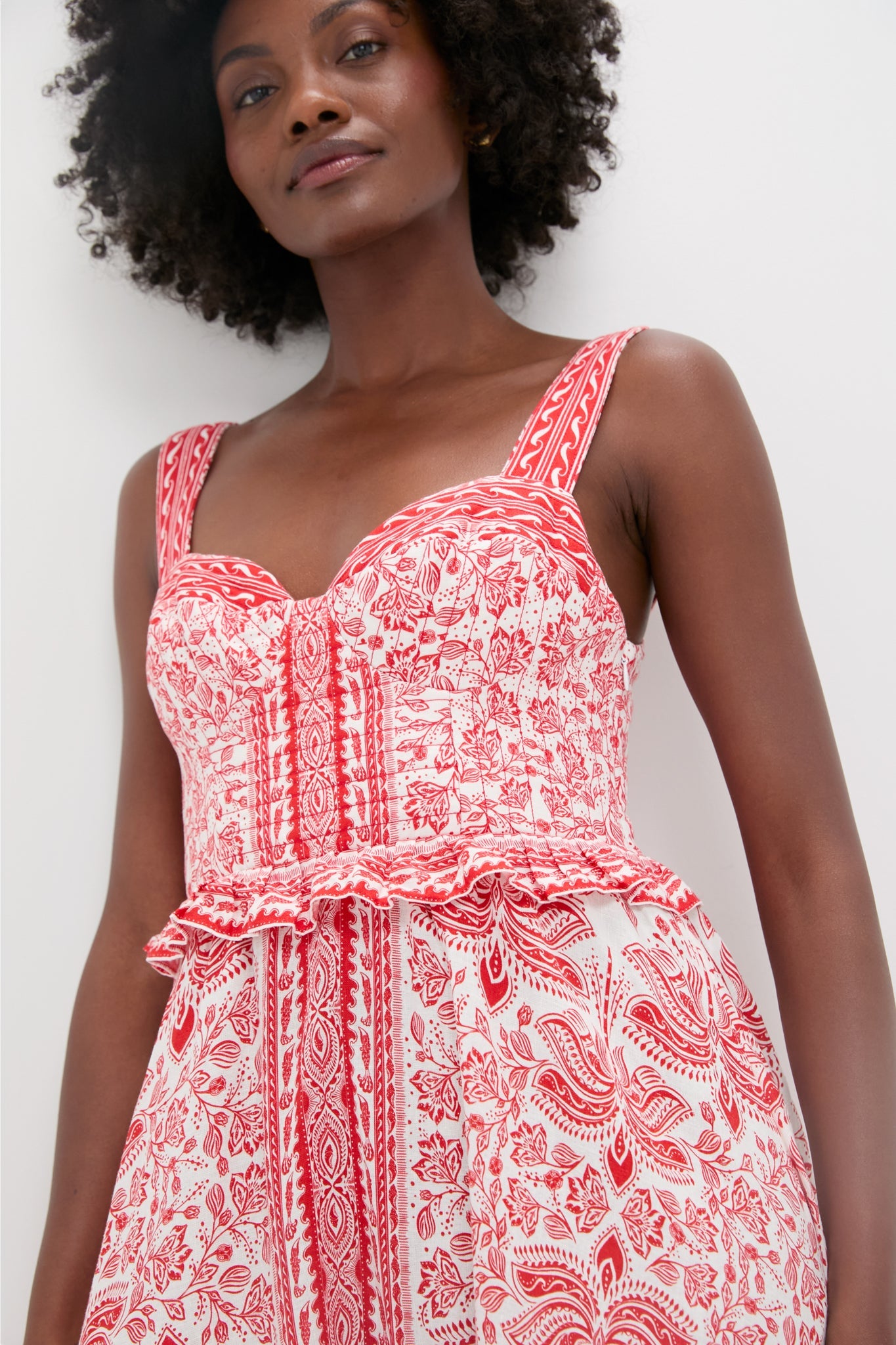 With its bold red-and-white print, corset-style bodice, and flouncy peplum detail, this midi brings all the feel-good vibes. Perfect for everything from market strolls to summer dinners, pair it with wedges or strappy flats and a straw clutch for a chic look.